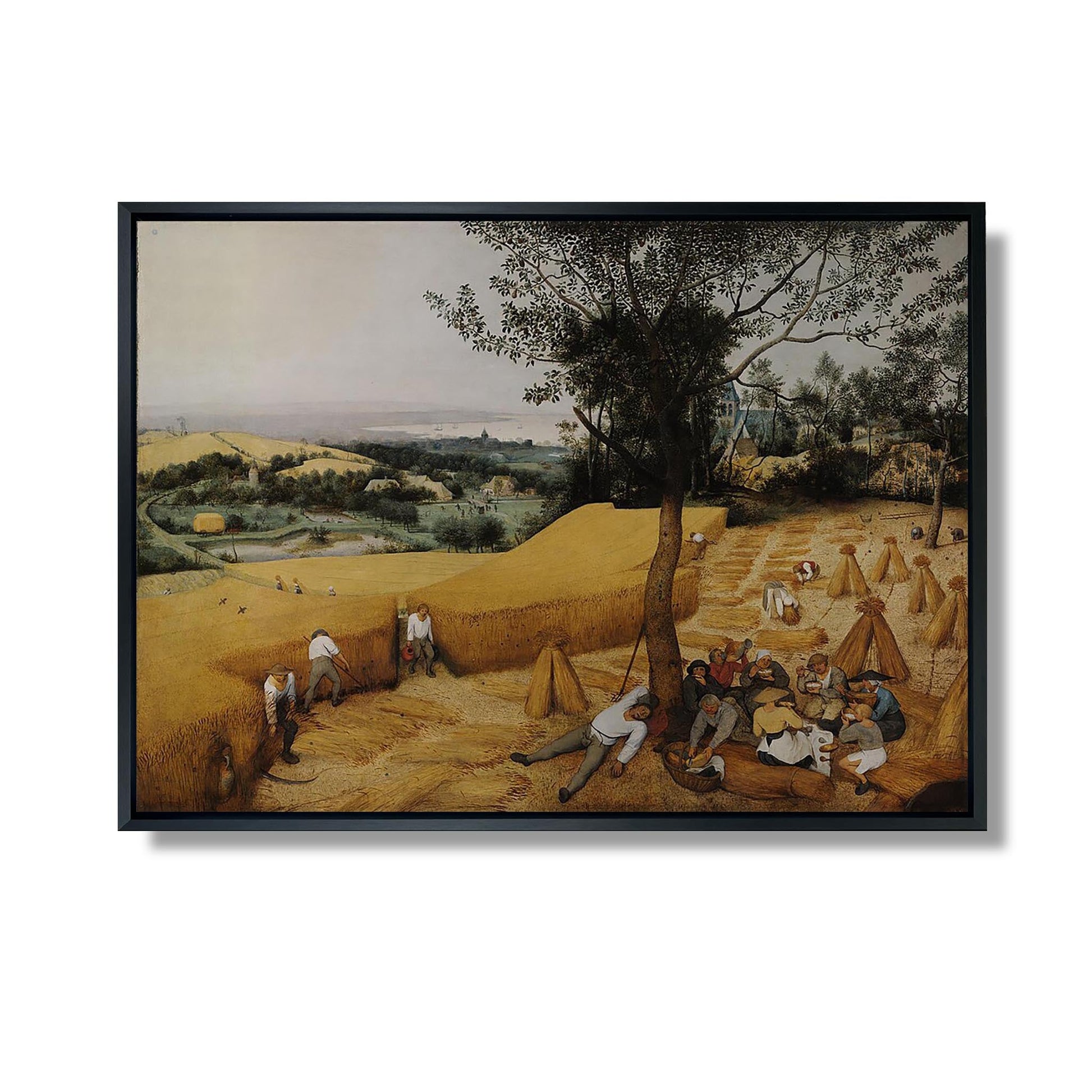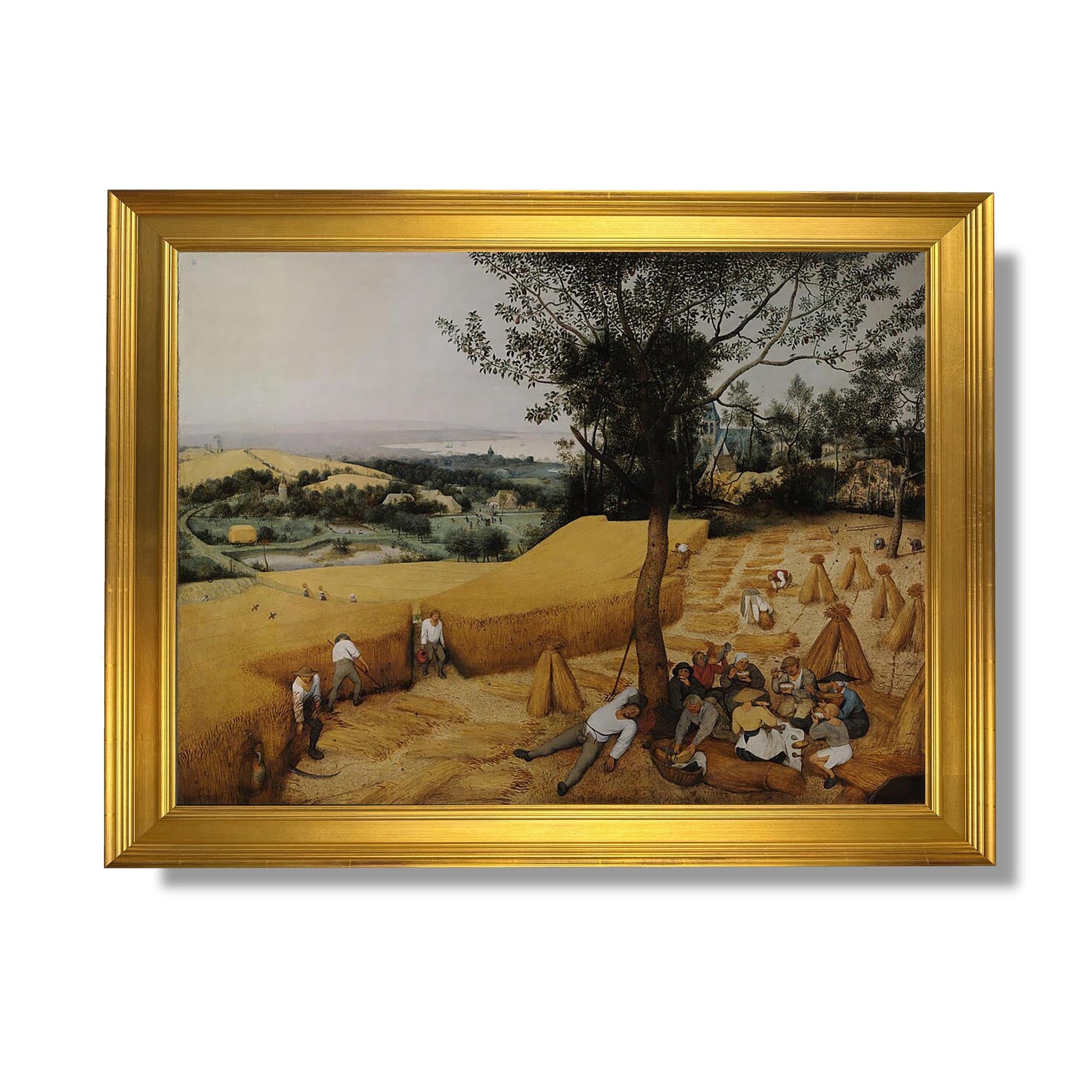 „Die Schnitterinnen“ von Pieter Bruegel dem Älteren aus dem Jahr 1565 ist ein ikonisches Werk der flämischen Renaissance. Dieses Gemälde zeigt eine ländliche Sommerszene, in der Bauern mit der Weizenernte beschäftigt sind. Mit akribischer Liebe zum Detail fängt Bruegel das alltägliche Leben ein und illustriert die Schönheit der landwirtschaftlichen Arbeit. Die in ihrer Haltung und Ausdrucksweise unterschiedlichen Charaktere evozieren eine Harmonie zwischen Mensch und Natur. Die an Farben und Texturen reiche Komposition reflektiert das goldene Licht der Sonne. Dieses Werk zelebriert die Einfachheit und Würde der bäuerlichen Welt und bietet zugleich eine Reflexion über den Kreislauf des Lebens.