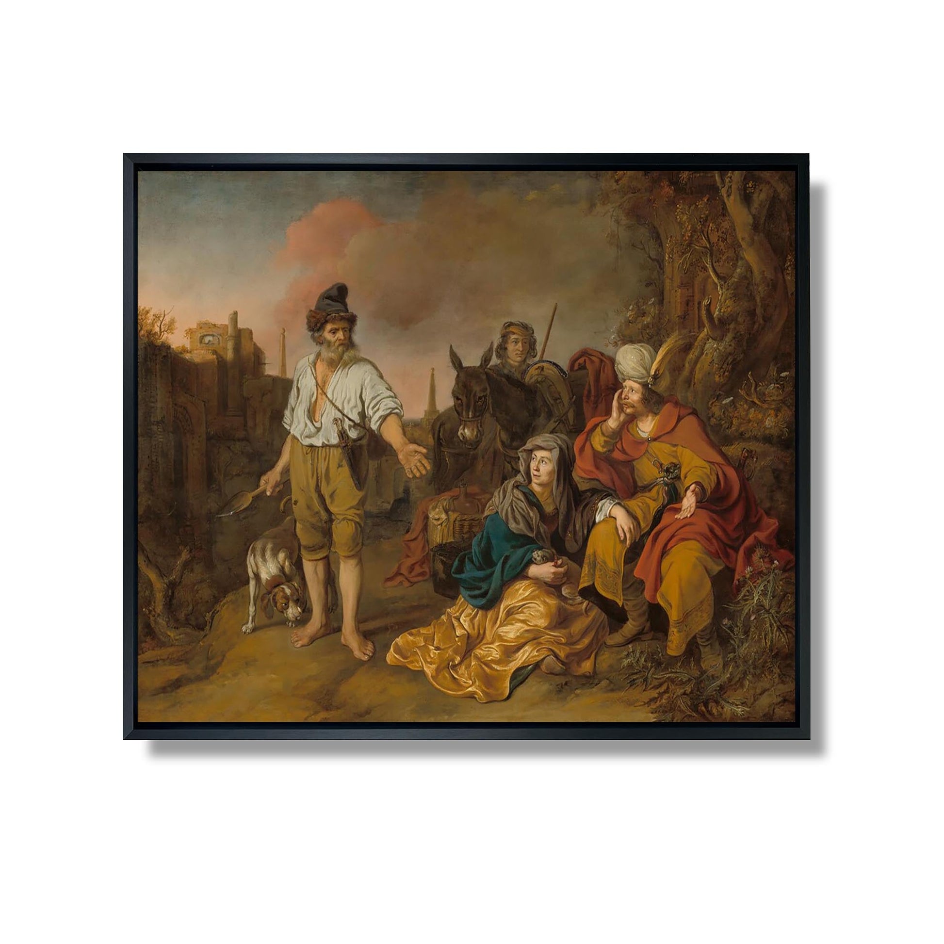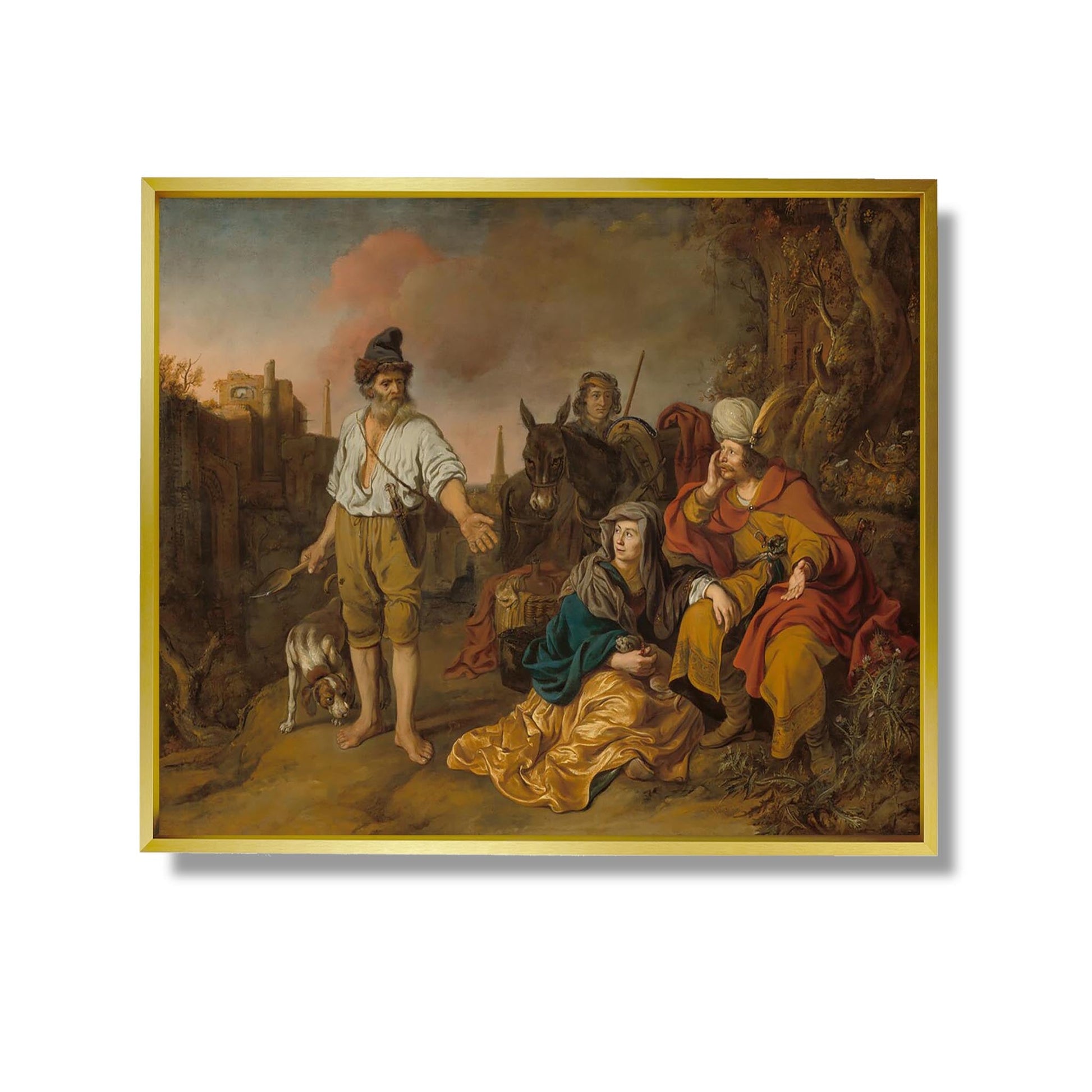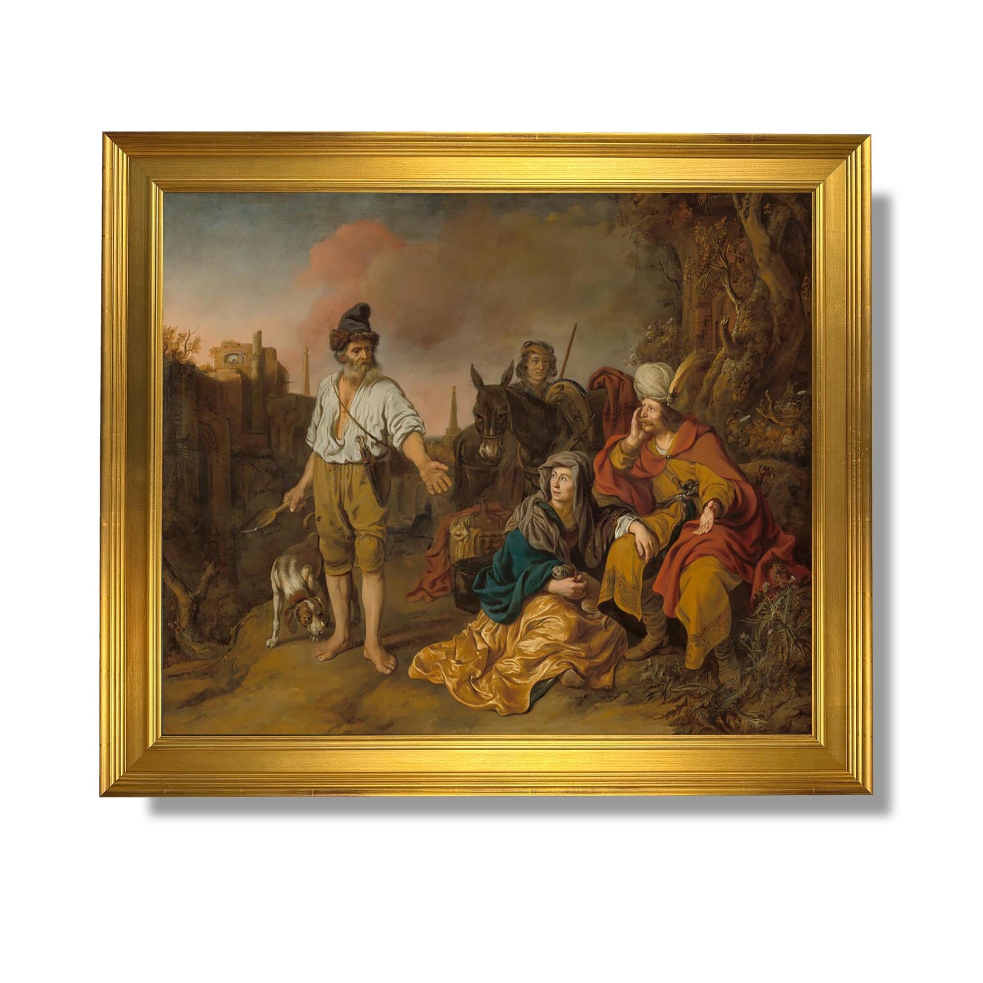 „Der Levit von Gibea“ von Gerbrand van den Eeckhout ist ein ikonisches Werk aus dem 17. Jahrhundert, das eine tragische Episode aus dem Buch der Richter illustriert. Dieses Gemälde zeigt einen Leviten und seine Konkubine, die in der Stadt Gibea mit Gewalt und Ungerechtigkeit konfrontiert werden. Van den Eeckhout verwendet in seinem Barockstil kräftige Farben und kleinste Details, um die Emotion und Spannung der Szene zu steigern. Das Werk wirft moralische Fragen über die Gesellschaft und die menschliche Natur auf und demonstriert zugleich die technische Meisterschaft des Künstlers bei der Darstellung von Figuren und Ausdrücken.