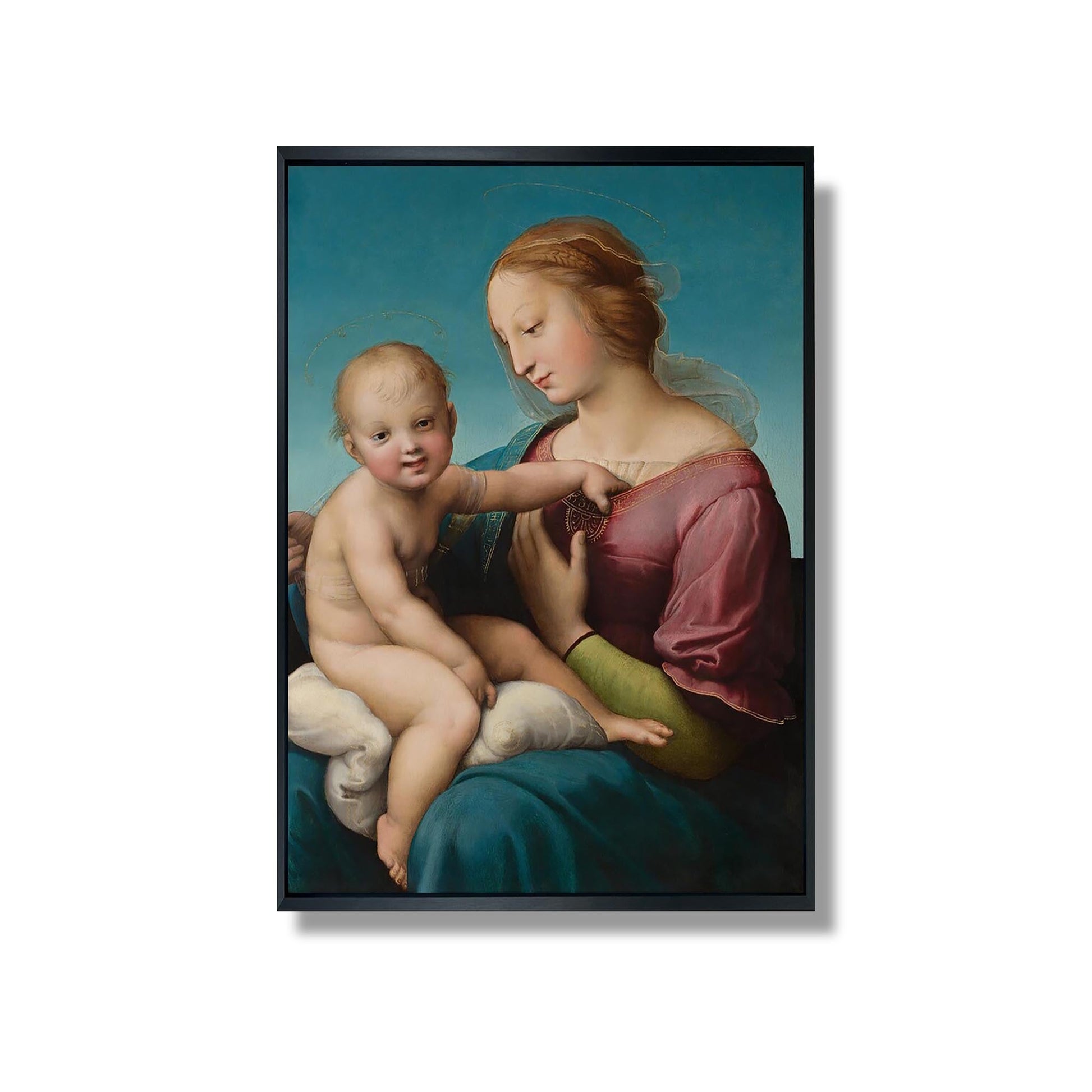 Die „Niccolini-Cowper-Madonna“, von Raffael um 1505 gemalt, ist ein emblematisches Werk der italienischen Renaissance. Dieses Gemälde zeigt die Jungfrau Maria, die das Jesuskind hält, umgeben von einer Atmosphäre der Gelassenheit und Zärtlichkeit. Das Spiel von Licht und Schatten sowie die harmonische Komposition zeugen von Raffaels Genialität bei der Schaffung idealisierter Figuren. Die fließenden Faltenwürfe und zarten Ausdrücke der Figuren spiegeln eine tiefe Menschlichkeit wider. Dieses Werk veranschaulicht perfekt das Gleichgewicht zwischen Spiritualität und Schönheit, die für Raffaels Stil charakteristisch sind.
