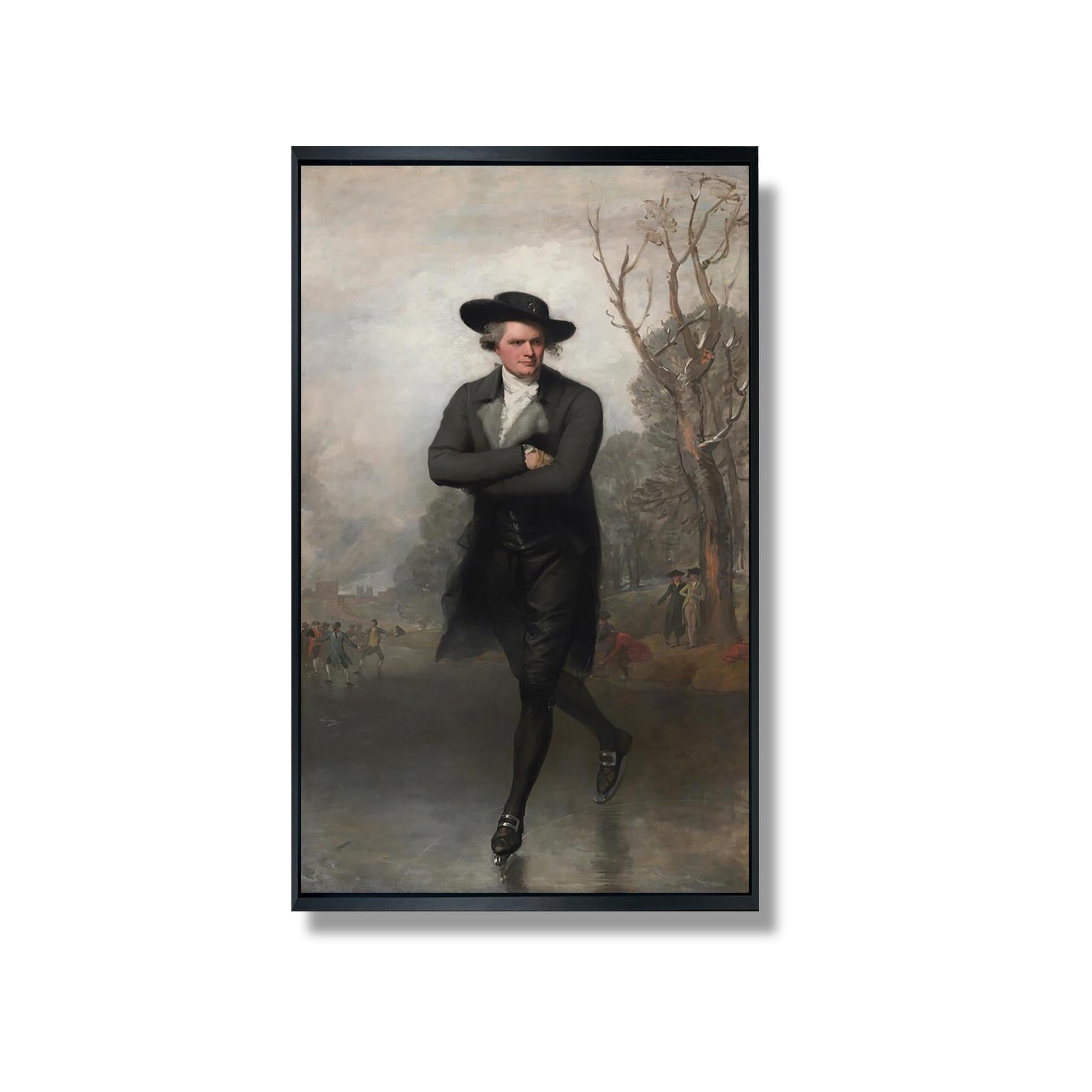„Der Schlittschuhläufer“ (Porträt von William Grant) ist ein ikonisches Werk von Gilbert Stuart, gemalt im Jahr 1782. Dieses Gemälde zeigt William Grant, einen begeisterten Schlittschuhläufer, in einer dynamischen Pose, die Energie und Bewegung einfängt. Stuart, ein Meister der Porträtmalerei, verwendet Licht- und Schattentechniken, um sein Motiv zum Leben zu erwecken und gleichzeitig die Details seines eleganten Kostüms hervorzuheben. Das Werk veranschaulicht nicht nur Stuarts Talent zur realistischen Darstellung, sondern auch sein Geschick, die Persönlichkeit und den Charakter seiner Modelle zu vermitteln. Dieses Porträt ist ein eindrucksvolles Beispiel amerikanischer Kunst des 18. Jahrhunderts.