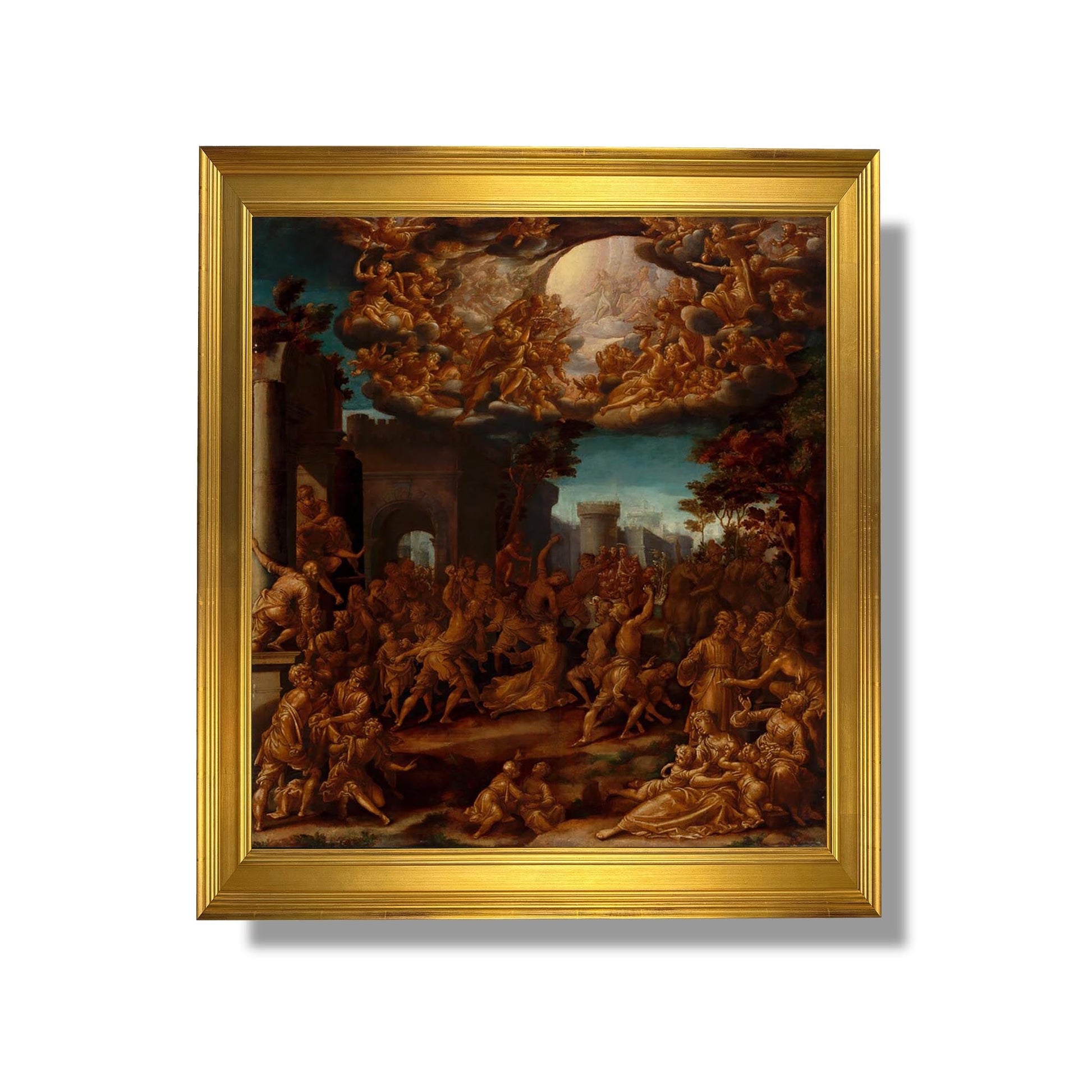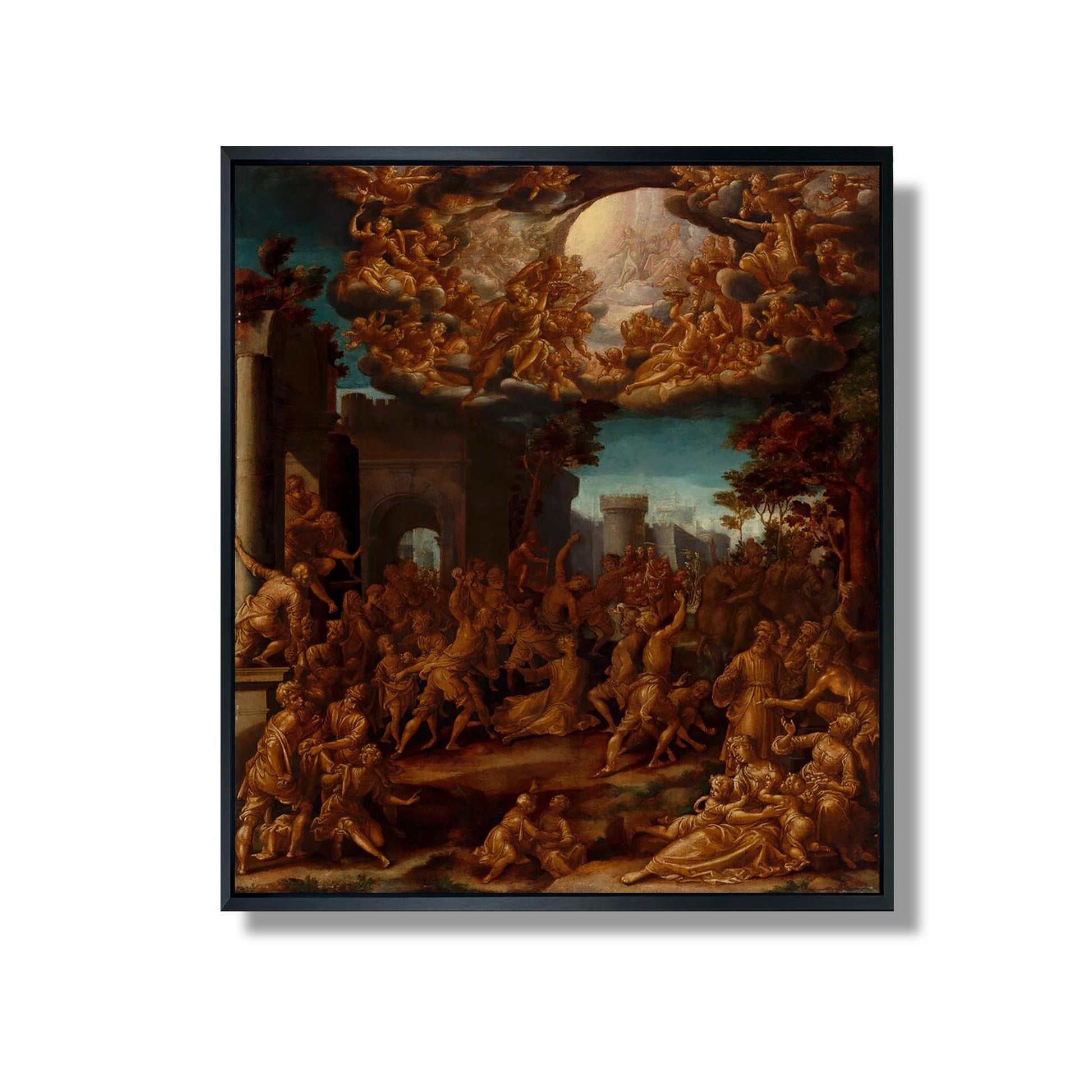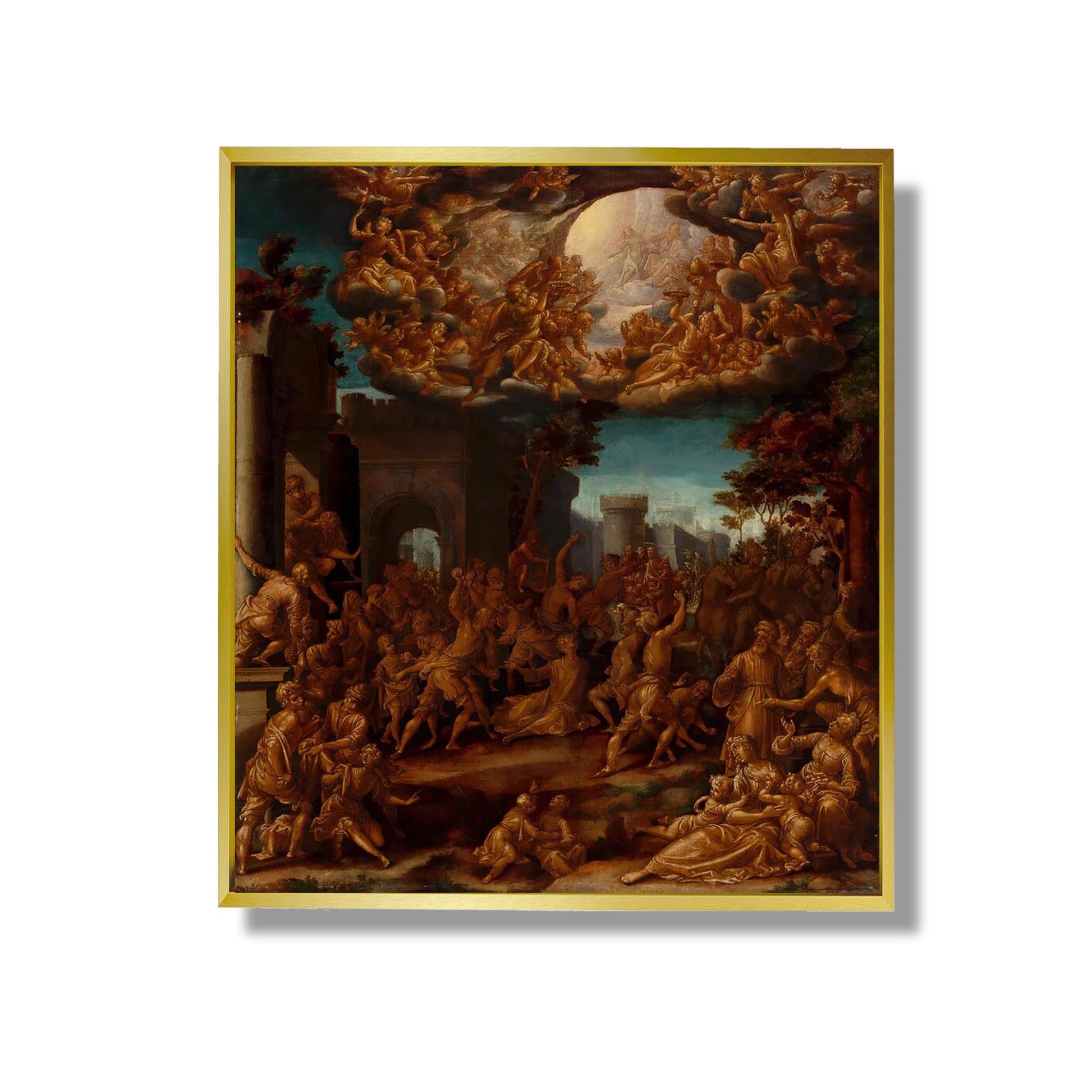 „Die Steinigung des Heiligen Stephanus“ von Aurelio Lomi ist ein emblematisches Werk des Barock, entstanden im 17. Jahrhundert. Es illustriert das Martyrium des Heiligen Stephanus, des ersten christlichen Märtyrers, dessen Tod mit dramatischer Intensität geschildert wird. Lomi verwendet leuchtende Farben und starke Kontraste, um die Emotionen der Szene zu verstärken. Die Figuren sind dynamisch und fangen die Bewegungen und die Angst der Protagonisten ein. Die detailreiche Komposition lädt den Betrachter ein, den Schmerz und das Leiden des Heiligen Stephanus nachzuempfinden und betont zugleich die Inbrunst seines Glaubens. Dieses Werk zeigt Lomis Talent, Spiritualität und Realismus zu verbinden.