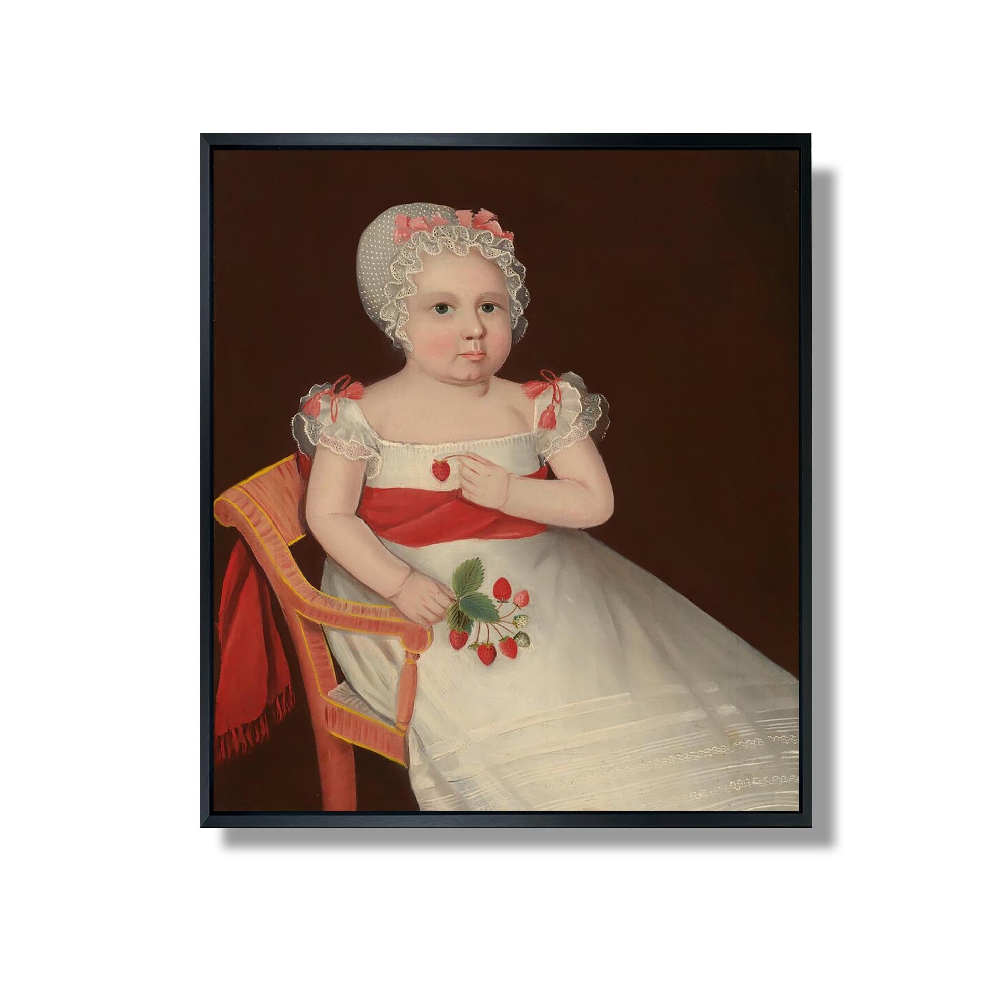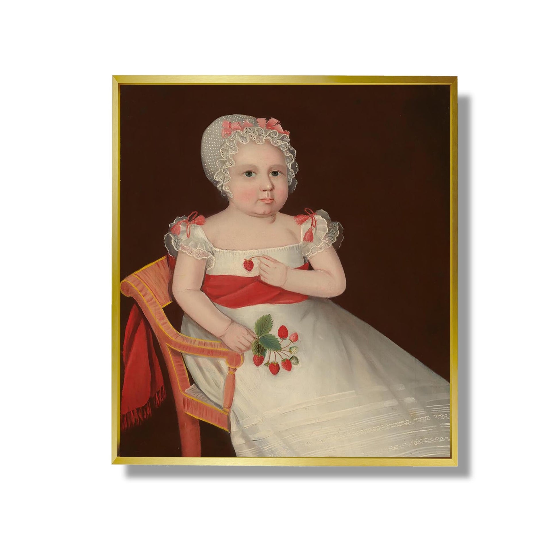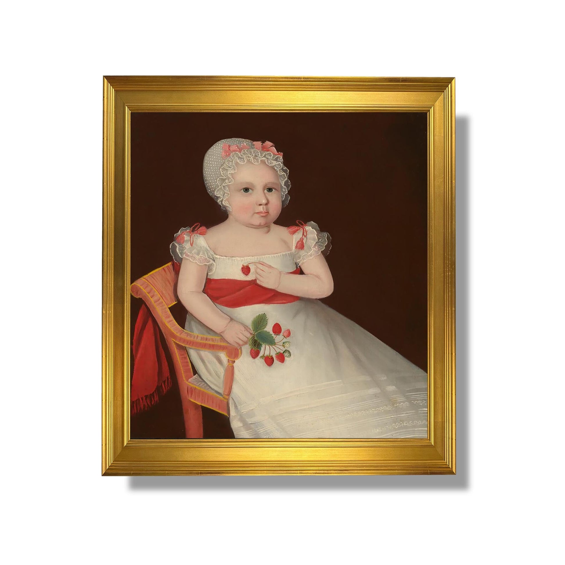 „Das Erdbeermädchen“ ist ein ikonisches Werk der amerikanischen Künstlerin Ammi Phillips, das um 1820 gemalt wurde. Dieses Porträt zeigt ein junges Mädchen, das einen Korb Erdbeeren hält, was die Unschuld und Schönheit der Jugend symbolisiert. Phillips, bekannt für seinen naiven Stil und seine lebendigen Porträts, fängt hier nicht nur das Erscheinungsbild seines Motivs ein, sondern auch eine Atmosphäre der Einfachheit und Freude. Die lebendigen Farben und kleinsten Details sind ein Beweis für sein Können, Momente des alltäglichen Lebens einzufangen. Dieses Werk illustriert perfekt die Ästhetik der amerikanischen Porträtmalerei vom Beginn des 19. Jahrhunderts.