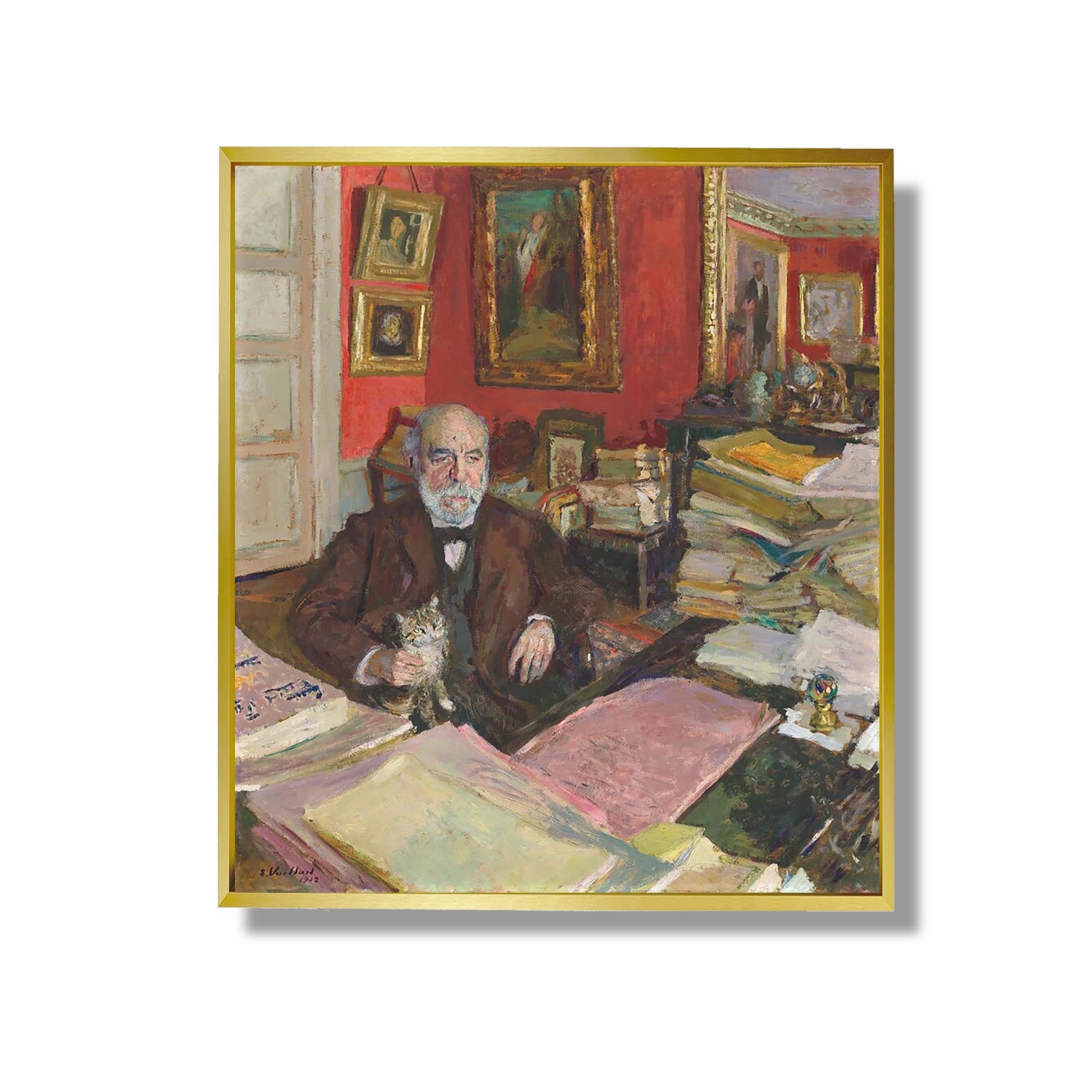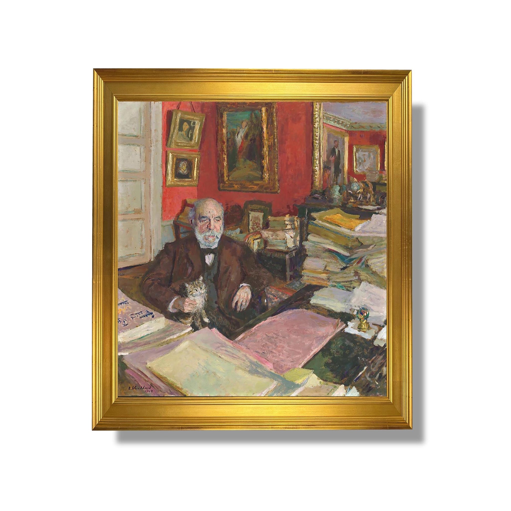 Théodore Duret, Kunstkritiker und Schriftsteller, spielte eine Schlüsselrolle bei der Anerkennung von Édouard Vuillard, einem der Meister des Postimpressionismus. Duret gelang es, die Originalität von Vuillards Werk hervorzuheben, das sich durch intime Kompositionen und zarte Farben auszeichnet. Der Künstler, ein Mitglied der Nabis-Gruppe, erkundete das alltägliche Leben und hielt häusliche Szenen mit einer einzigartigen Sensibilität fest. Seine oft von Melancholie durchdrungenen Gemälde offenbaren eine intime Atmosphäre, in der sich Licht und dekorative Motive miteinander verflechten und von einem tiefen Verständnis für Raum und menschliche Emotionen zeugen.