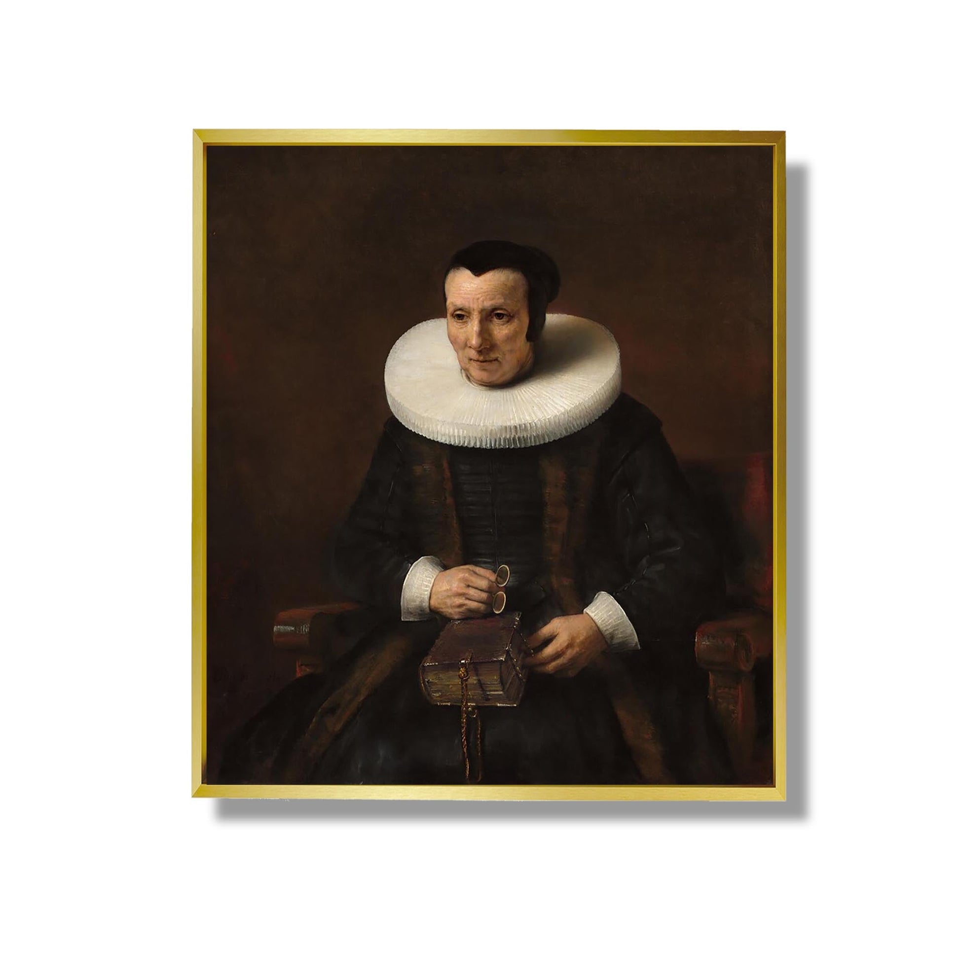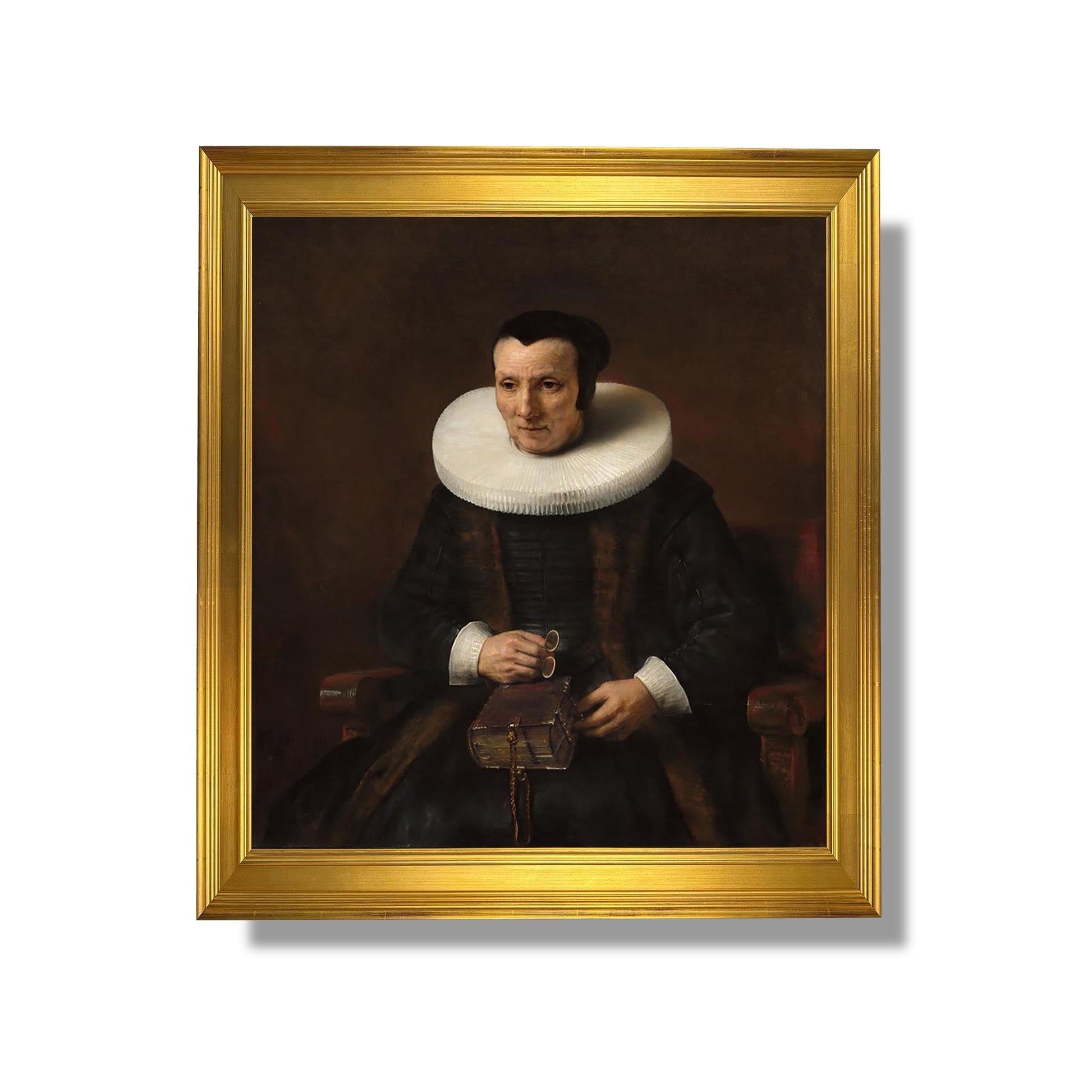„Eine alte Dame mit einem Buch“ ist ein ikonisches Werk von Rembrandt, das um 1655 gemalt wurde. Dieses Gemälde veranschaulicht die Meisterschaft des niederländischen Meisters im Umgang mit Licht und Schatten und schafft so eine intime Atmosphäre. Die in die Lektüre vertiefte alte Dame verkörpert Weisheit und Gelassenheit. Sein von der Zeit gezeichnetes Gesicht drückt tiefe Nachdenklichkeit aus, während das Buch als Symbol des Wissens eine intellektuelle Suche suggeriert. Durch seinen subtilen Einsatz von Farben und Texturen lädt Rembrandt den Betrachter ein, über die Schönheit des Lebens und den Reichtum menschlicher Erfahrung nachzudenken.