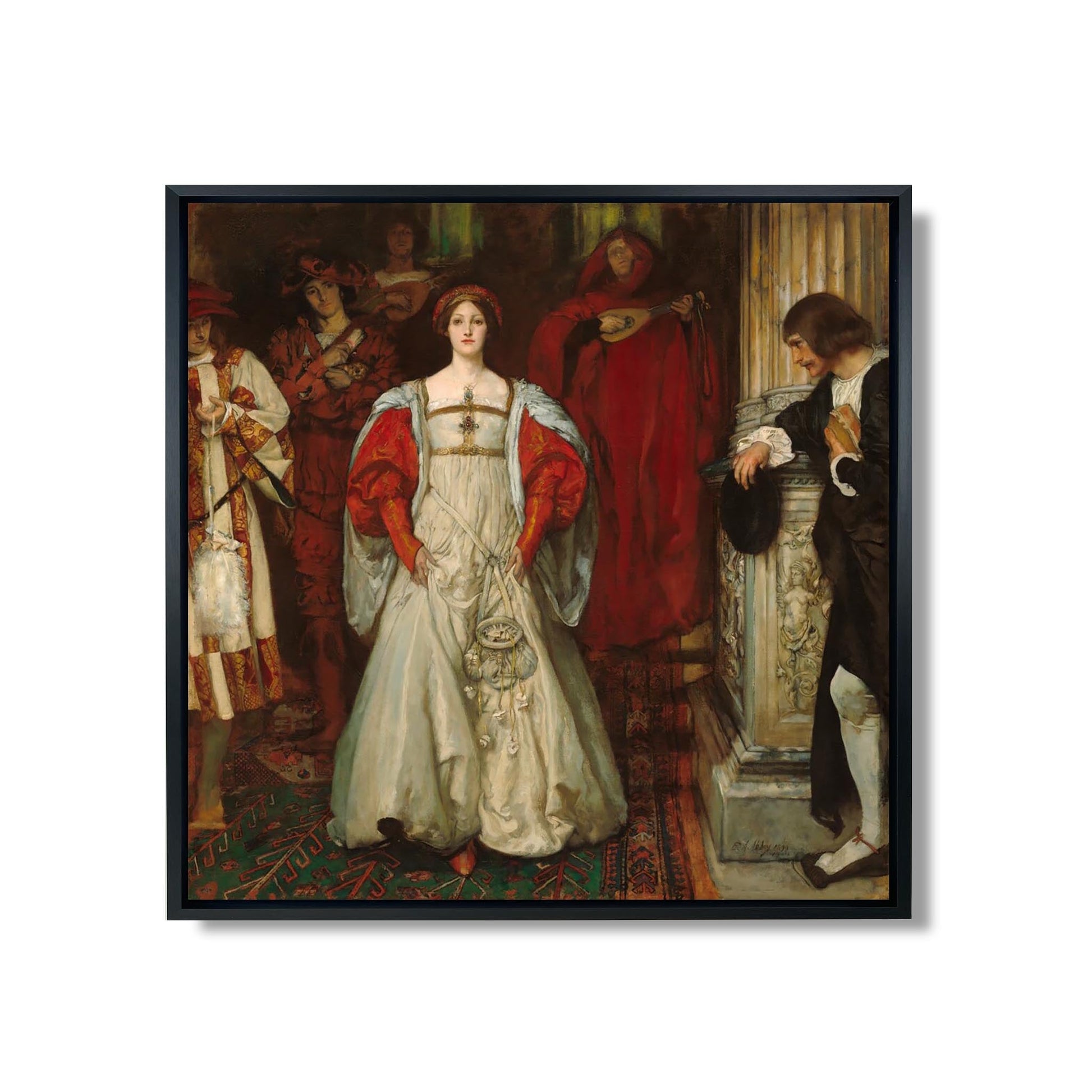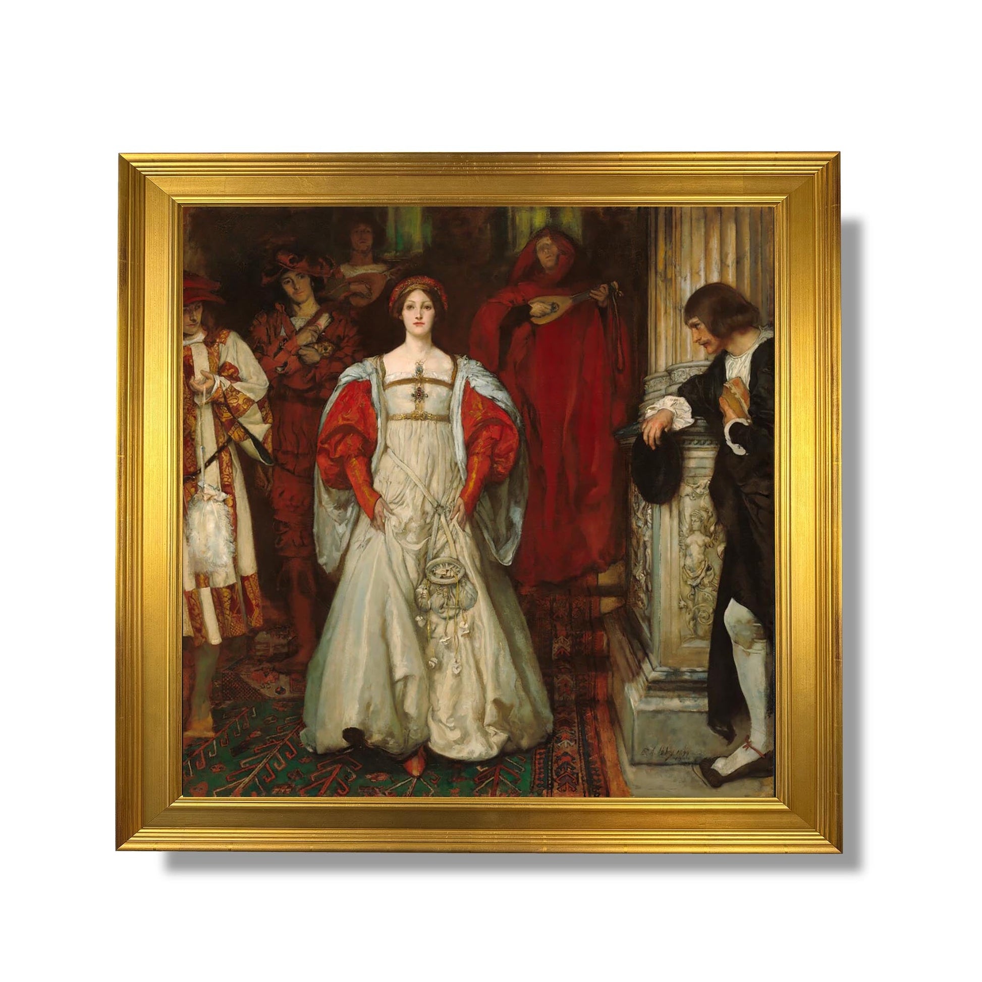 „Wer ist Sylvia? Was ist sie, dass alle Burschen sie loben?“ ist ein ikonisches Werk von Edwin Austin Abbey, einem amerikanischen Illustrator und Maler des 19. Jahrhunderts. Dieses von Shakespeares Komödie „Der Sturm“ inspirierte Stück fängt in einer romantischen Szene die Essenz von Schönheit und Liebe ein. Abbey verwendet leuchtende Farben und komplizierte Details, um eine verträumte Atmosphäre hervorzurufen. Die von üppiger Natur umgebenen Figuren drücken tiefe Emotionen aus, während die harmonische Komposition den Betrachter dazu einlädt, die Identität von Sylvia, dem Symbol des weiblichen Ideals, zu hinterfragen.