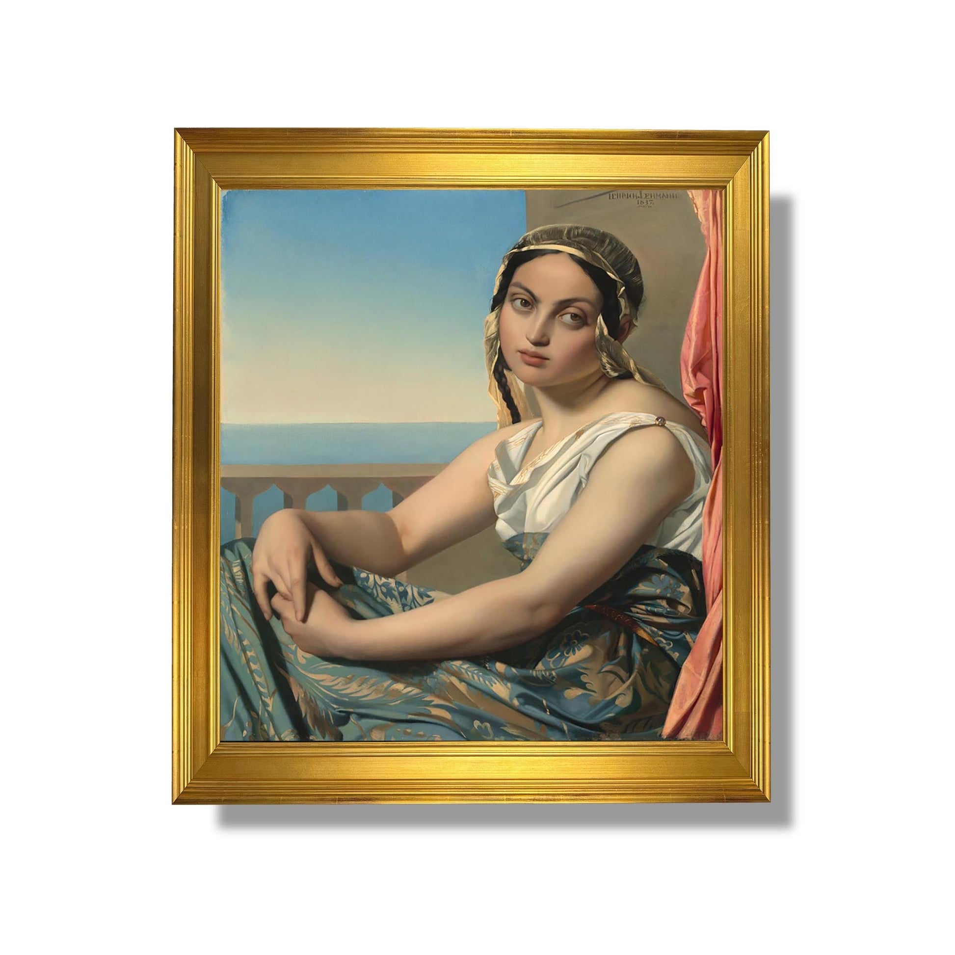 „Frau des ‚Orients‘“ ist ein ikonisches Werk von Henri Lehmann, einem französischen Maler des 19. Jahrhunderts, der für seinen romantischen Stil und seine raffinierten Porträts bekannt ist. Dieses Gemälde zeigt eine Frau orientalischer Herkunft und fängt Schönheit und Exotik durch lebendige Farben und kleinste Details ein. Lehmann spielt mit Licht und Schatten, um die zarten Merkmale seines Modells hervorzuheben, und integriert gleichzeitig kulturelle Elemente, die an eine ferne Welt erinnern. Das Werk spiegelt das wachsende Interesse der Zeit am Orientalismus wider, vermischt Faszination und Stereotypen und feiert gleichzeitig Weiblichkeit und Sinnlichkeit.