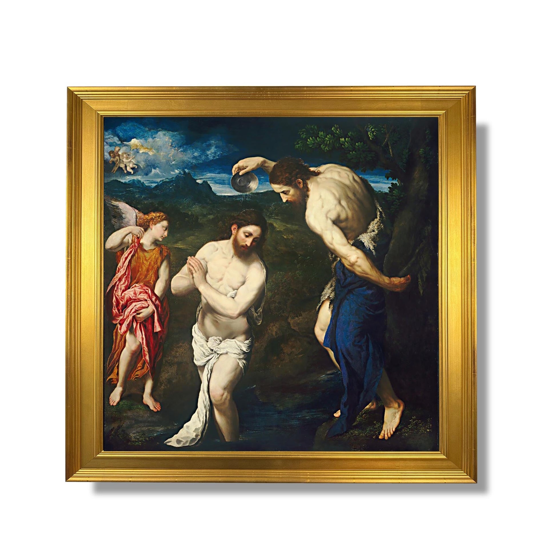 Die Taufe Christi, ein emblematisches Werk von Paris Bordone, veranschaulicht die Begegnung zwischen venezianischer Tradition und der künstlerischen Innovation des 16. Jahrhunderts. Dieses um 1540 gemalte Gemälde zeigt den heiligen Moment, als Johannes der Täufer Jesus im Jordan tauft. Bordone verwendet eine helle Palette und sorgfältige Details, um die spirituelle Emotion der Szene einzufangen. Die Figuren sind dynamisch angeordnet, so dass eine harmonische Balance entsteht. Der landschaftsreiche Hintergrund verstärkt die Tiefe der Komposition. Dieses Werk demonstriert Bordones Meisterschaft in der Erzählkunst und religiösen Darstellung.