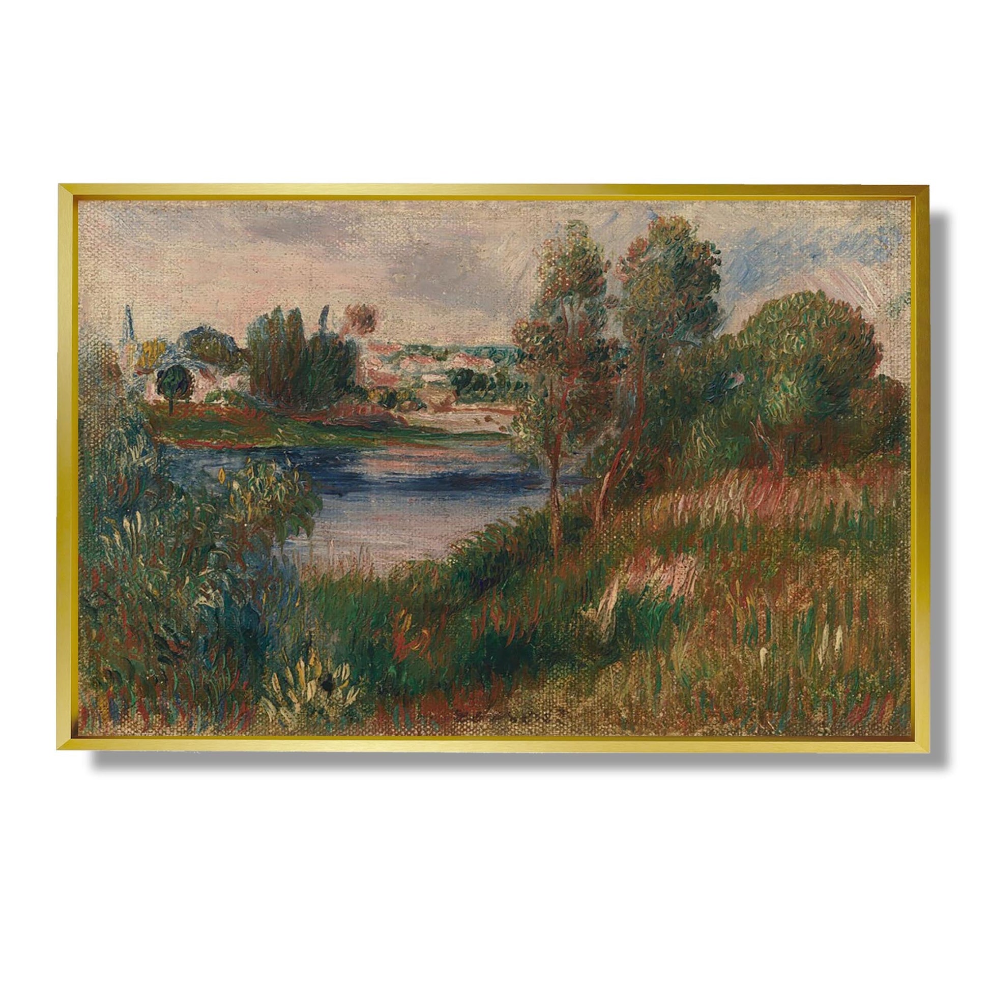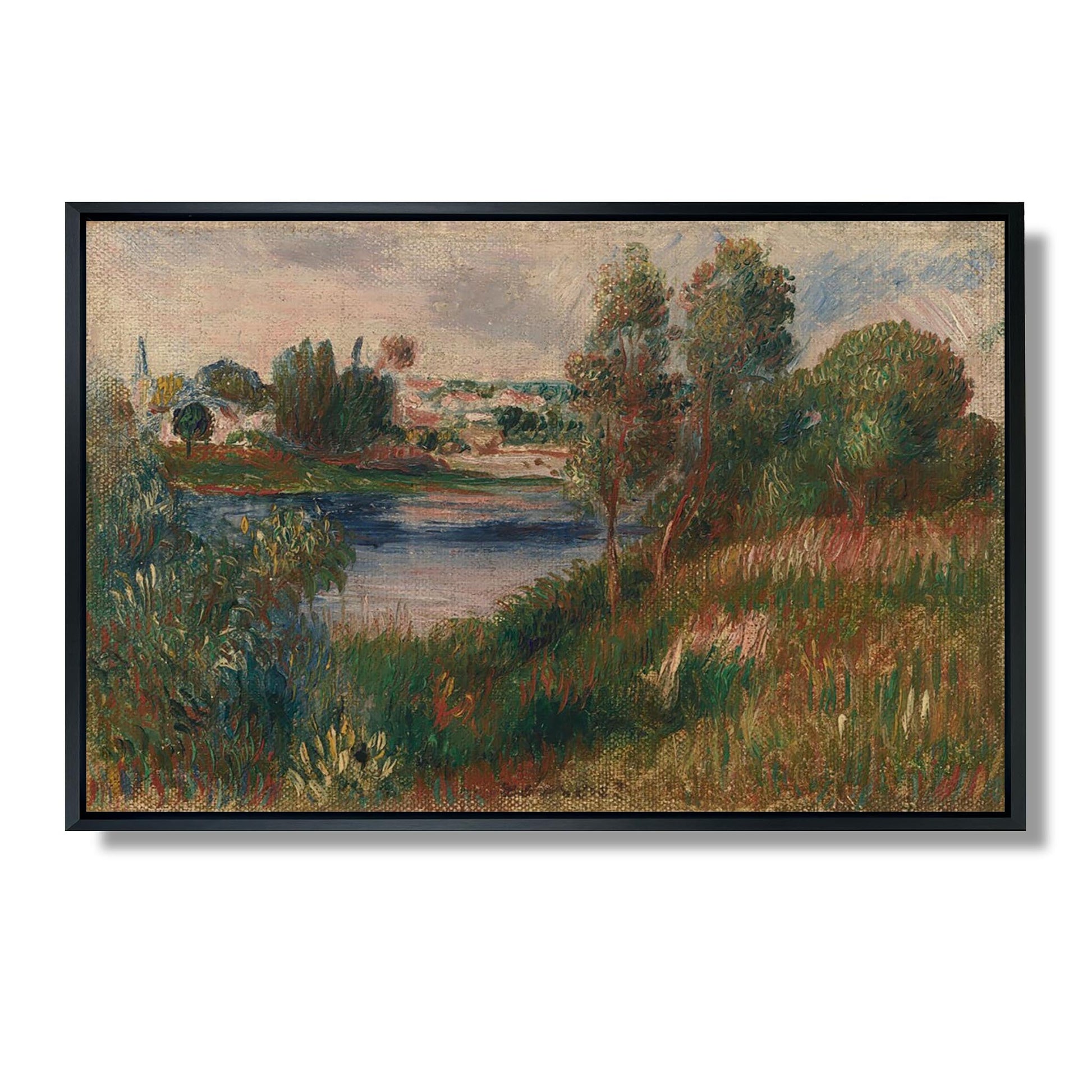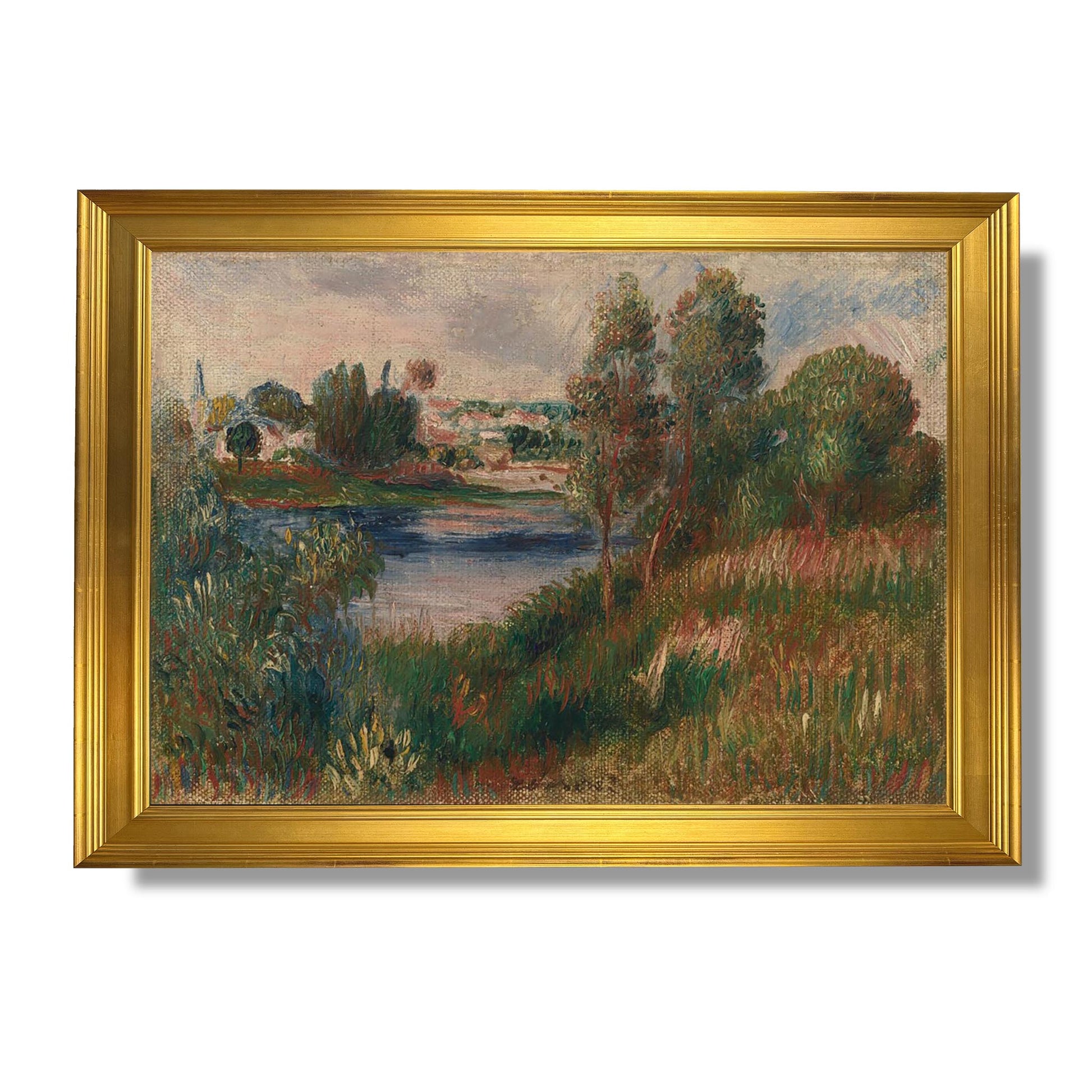 „Landschaft bei Vétheuil“ ist ein ikonisches Werk von Auguste Renoir, gemalt im Jahr 1880. Dieses Gemälde illustriert die friedliche Schönheit der französischen Landschaft und fängt das lebendige Licht und die Farben einer Landschaft entlang der Seine ein. Renoir, bekannt für seinen impressionistischen Stil, verwendet fließende Pinselstriche, um üppige Vegetation und wechselnde Himmel darzustellen. Das Werk ruft eine Atmosphäre der Gelassenheit und Kontemplation hervor und zeugt von der Liebe des Künstlers zur Natur. Dieses Gemälde spiegelt auch Renoirs Entwicklung hin zu leuchtenderen und harmonischeren Kompositionen wider und markiert einen wichtigen Schritt in seiner Karriere.