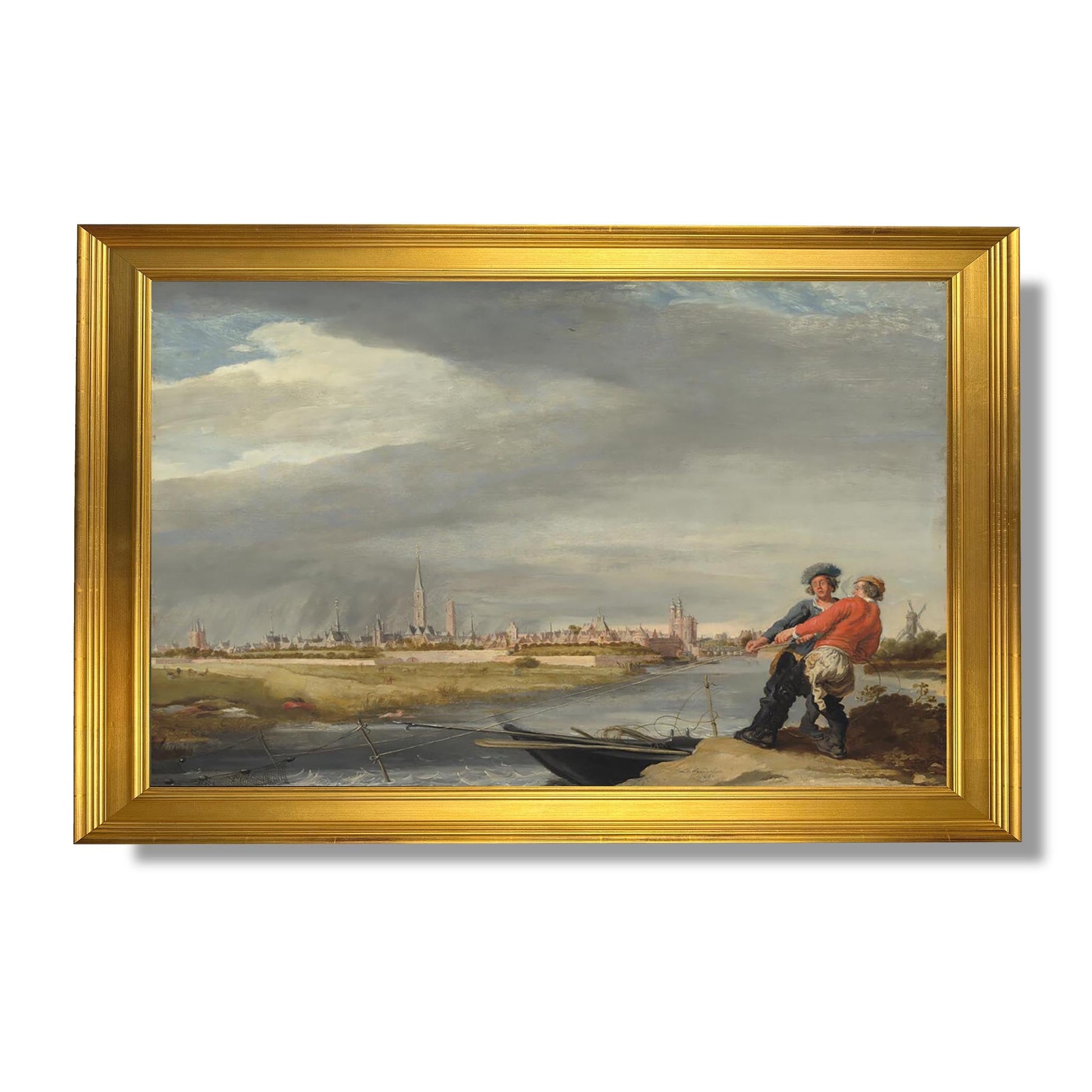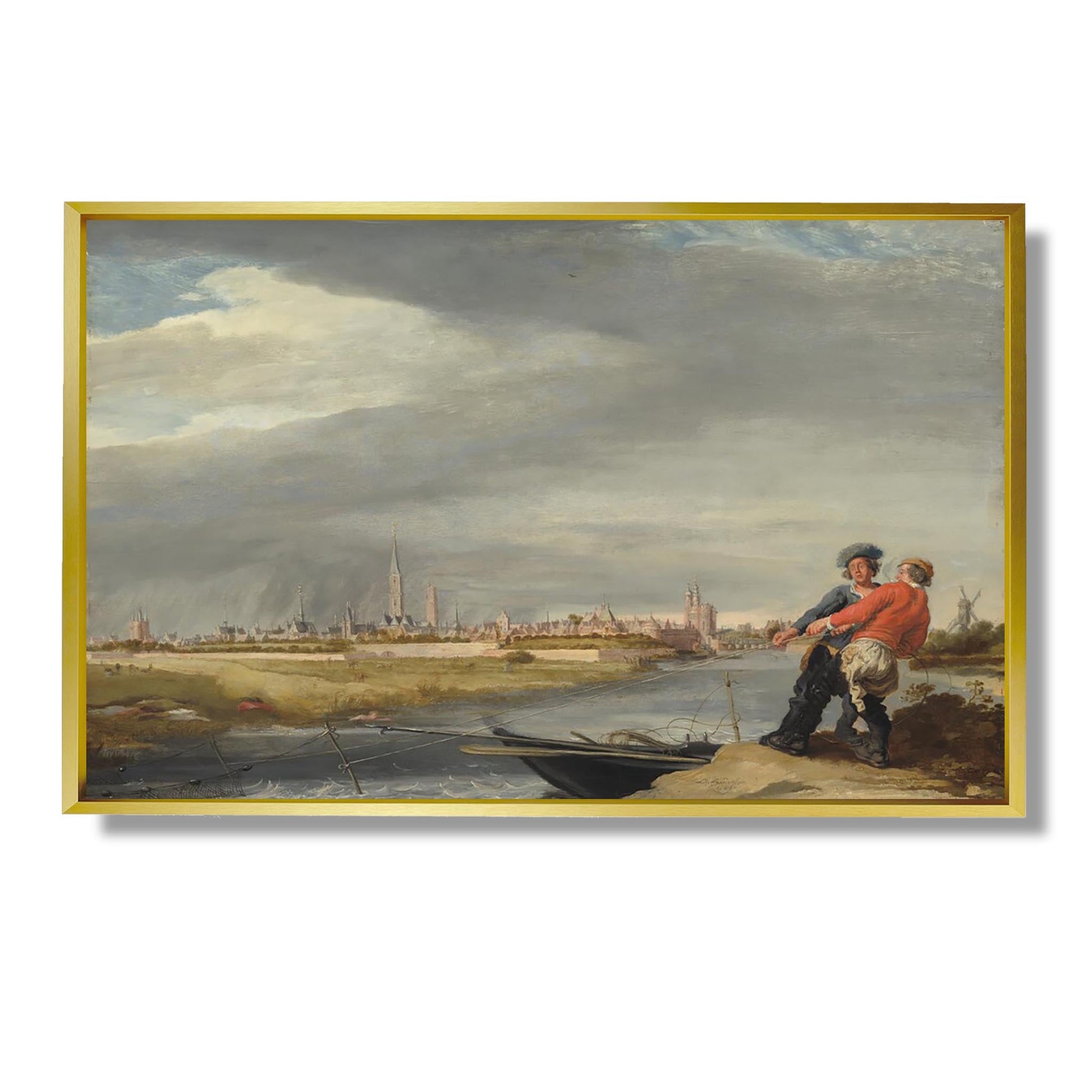 Dirk Hardenstein’s “Hauling the Net” is a captivating work that explores the relationship between man and nature through the metaphor of fishing. The artist uses bright colors and dynamic shapes to represent the movement and effort of fishermen pulling in their nets. This scene evokes both struggle and communion with the marine environment. Hardenstein’s distinctive style invites the viewer to reflect on the sustainability of natural resources and the impact of human activity on ecosystems. The work is intended to pay homage to tradition while questioning our responsibility towards nature.