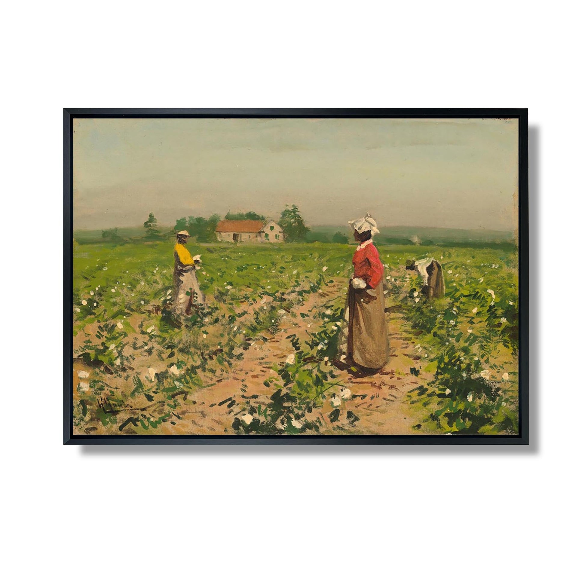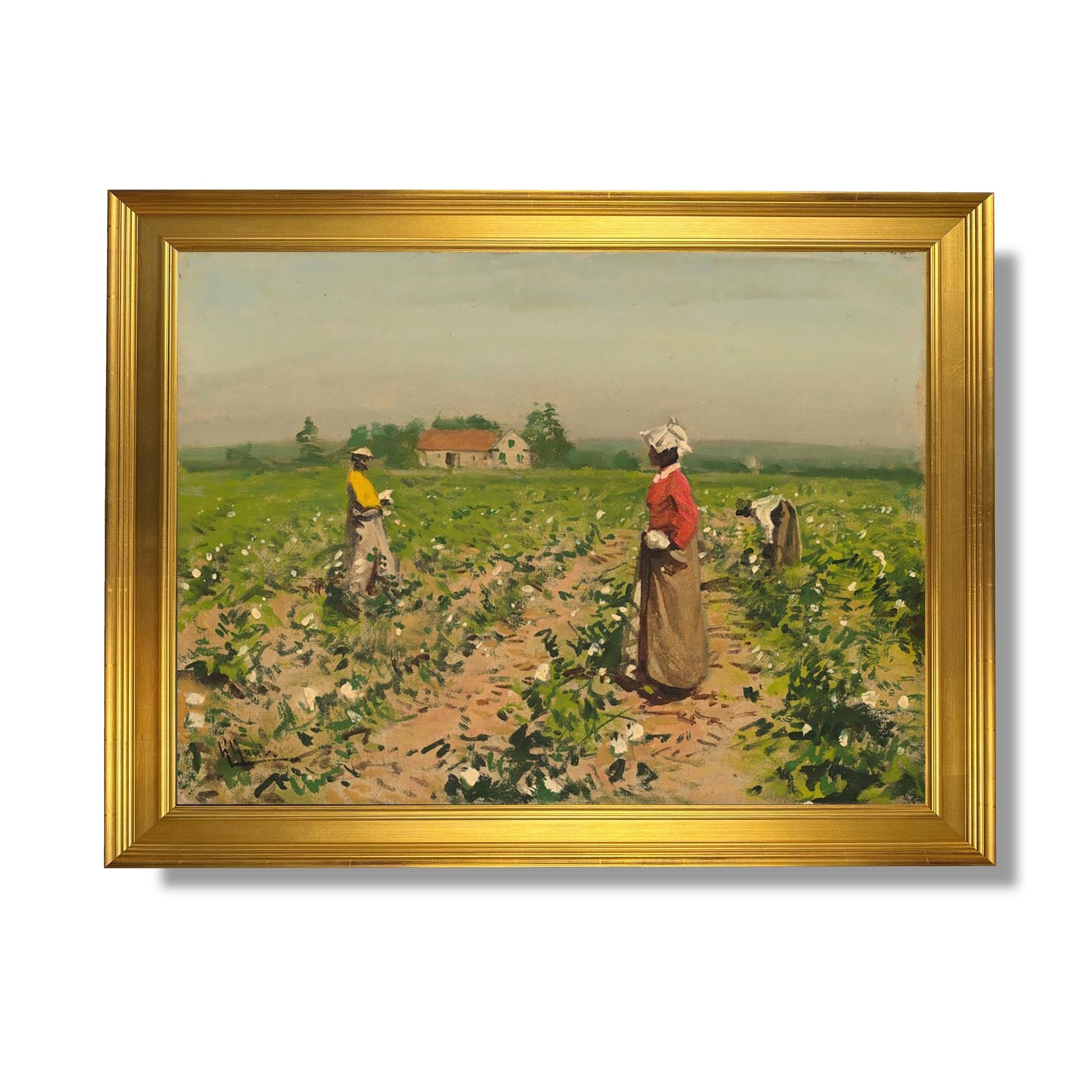 William Gilbert Gaul’s “Picking Cotton” is an iconic work that captures rural life in the American South in the late 19th century. Painted in 1890, the canvas depicts African-American workers in a cotton field, illustrating both the harshness of their labor and the beauty of the Southern landscape. Gaul, known for his realism, uses vivid colors and minute details to convey the intensity of human endeavor. The work evokes themes of resilience and dignity, while offering poignant insight into the socio-economic realities of the time.