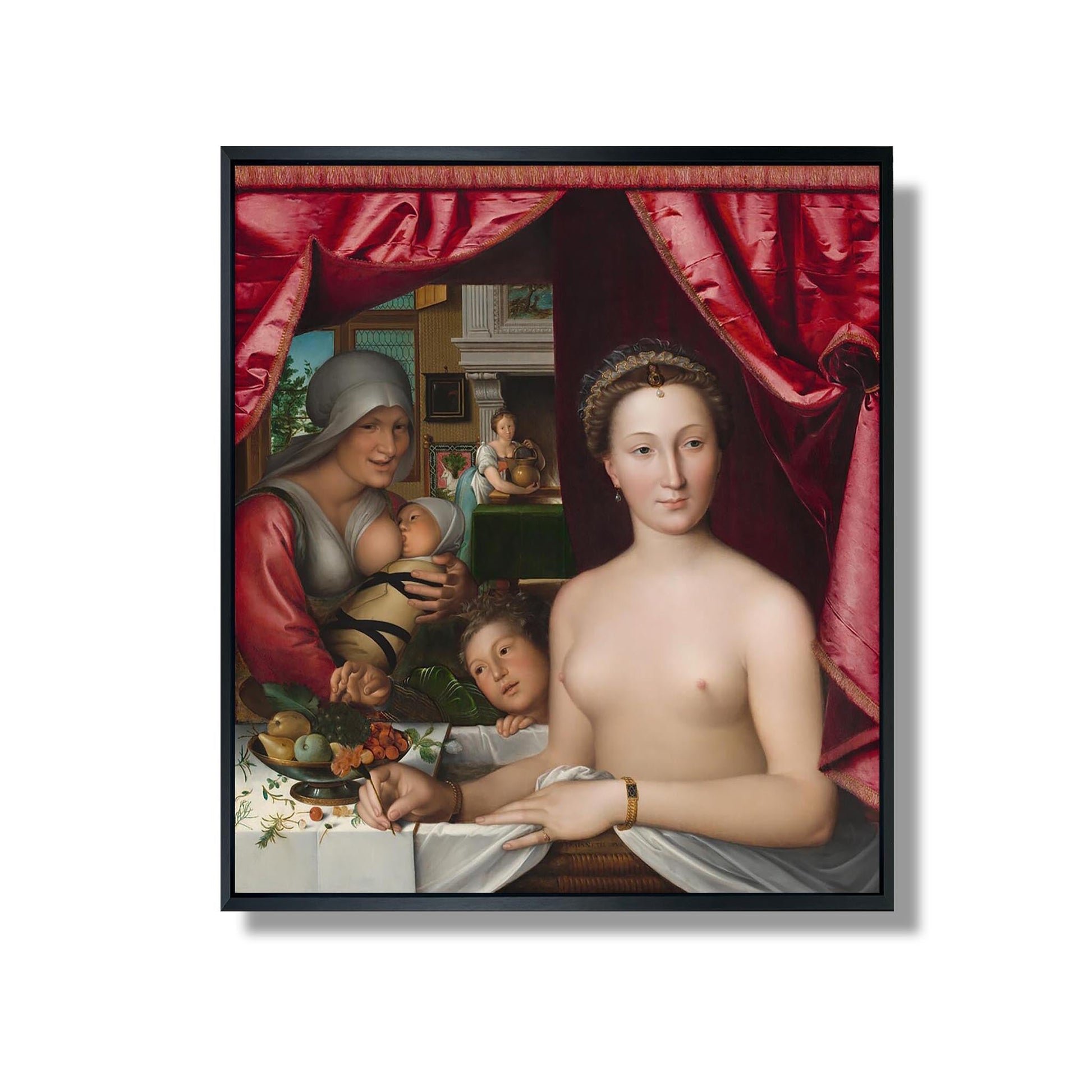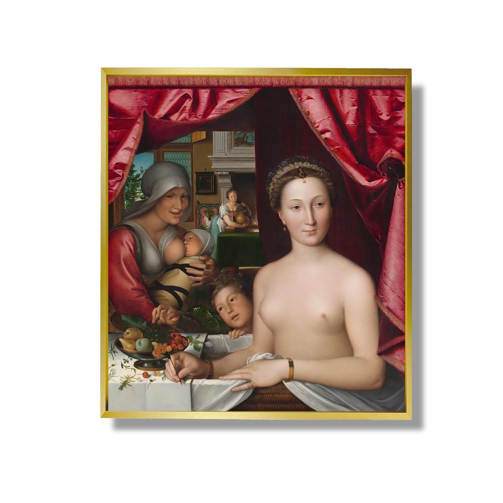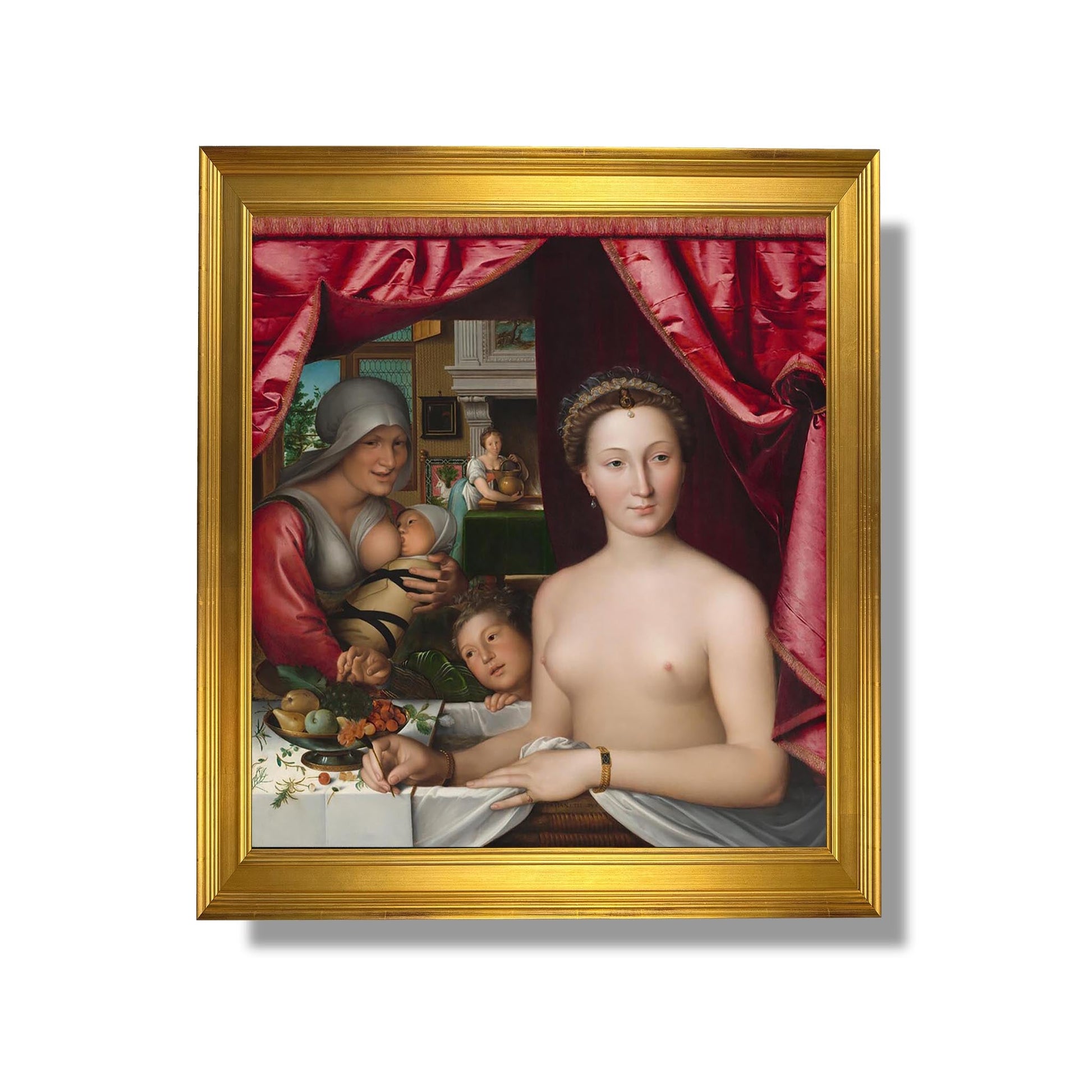 "A Woman in her Bath" is an iconic work by François Clouet, a 16th-century French painter and portraitist. Painted around 1570, this painting depicts the beauty and intimacy of a nude woman immersed in a bath. Clouet, known for his attention to detail and realistic style, captures light and textures with finesse, highlighting the model's delicate skin and the reflections of the water. This work is a testament to the Renaissance aesthetic, blending sensuality and elegance, while reflecting the social norms and beauty ideals of his time.