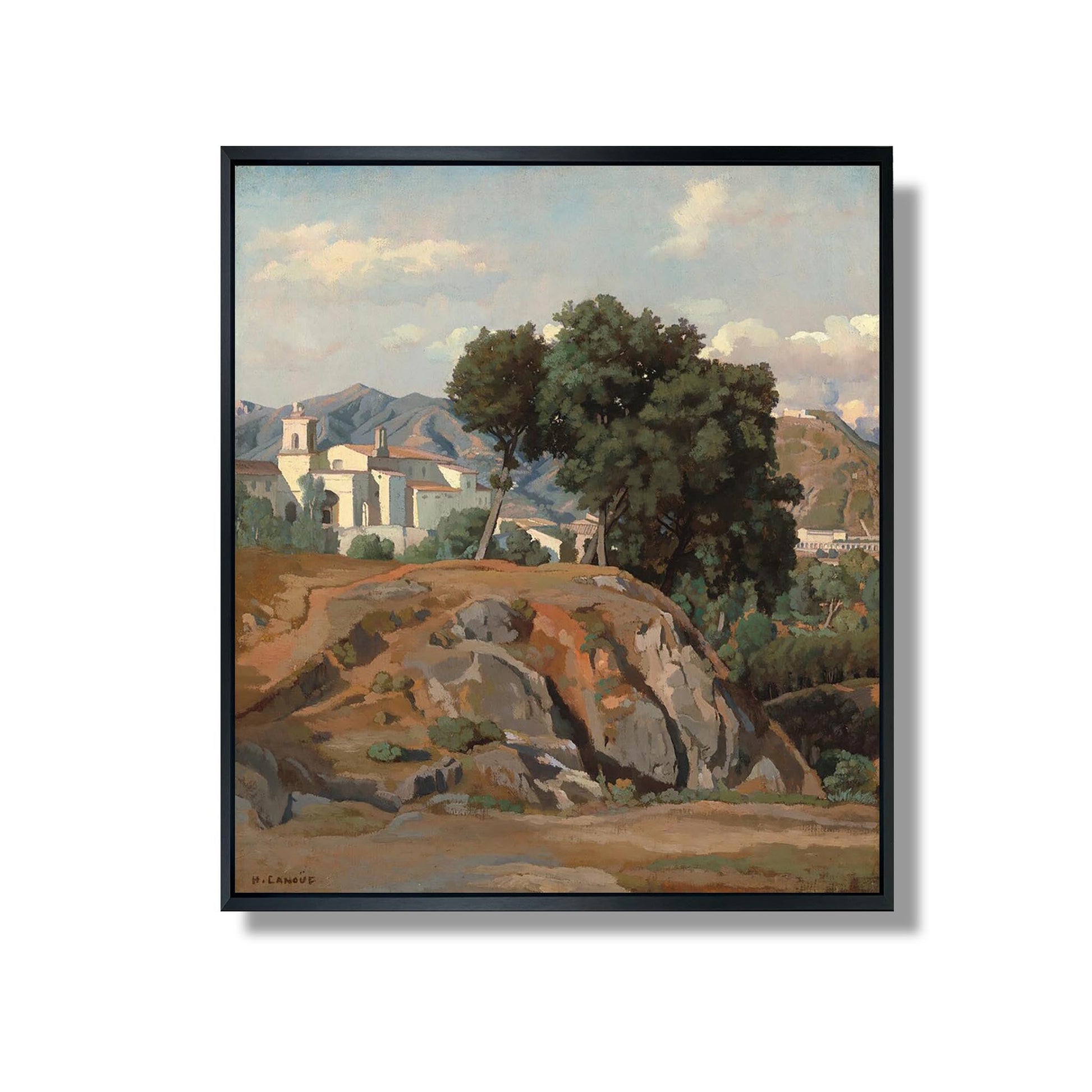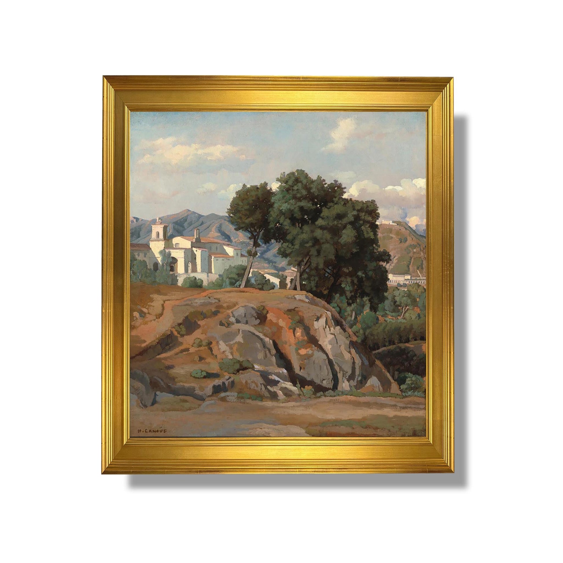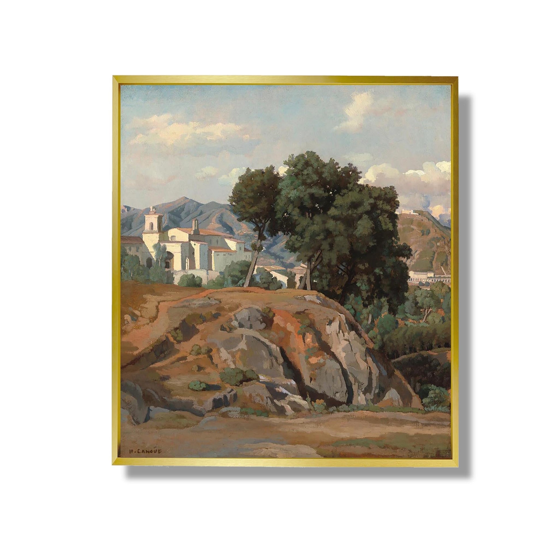 "View of La Cava" is an iconic work by Félix-Hippolyte Lanoue, a 19th-century French painter. Painted in 1860, this canvas captures the picturesque beauty of the Mediterranean landscape, highlighting the light and vibrant colors typical of the region. Lanoue, influenced by the Impressionist movement, uses dynamic brushstrokes to evoke life and movement in nature. The harmonious composition, with its green hills and azure sky, invites the viewer to immerse themselves in this serene scene, demonstrating the artist's love of the beauty of the natural world.