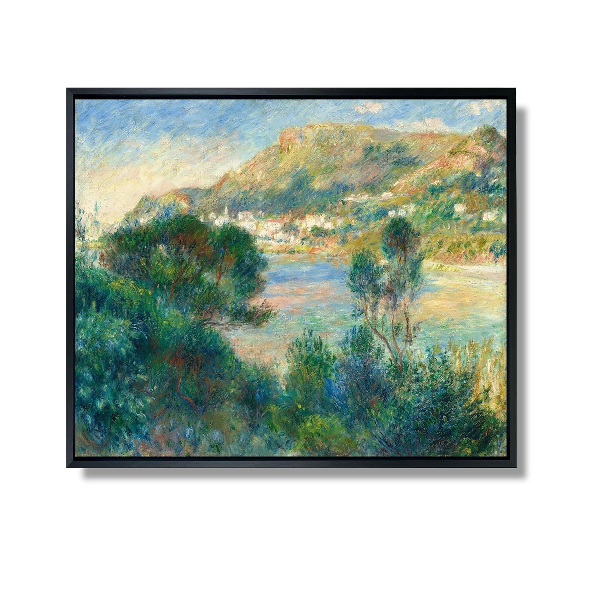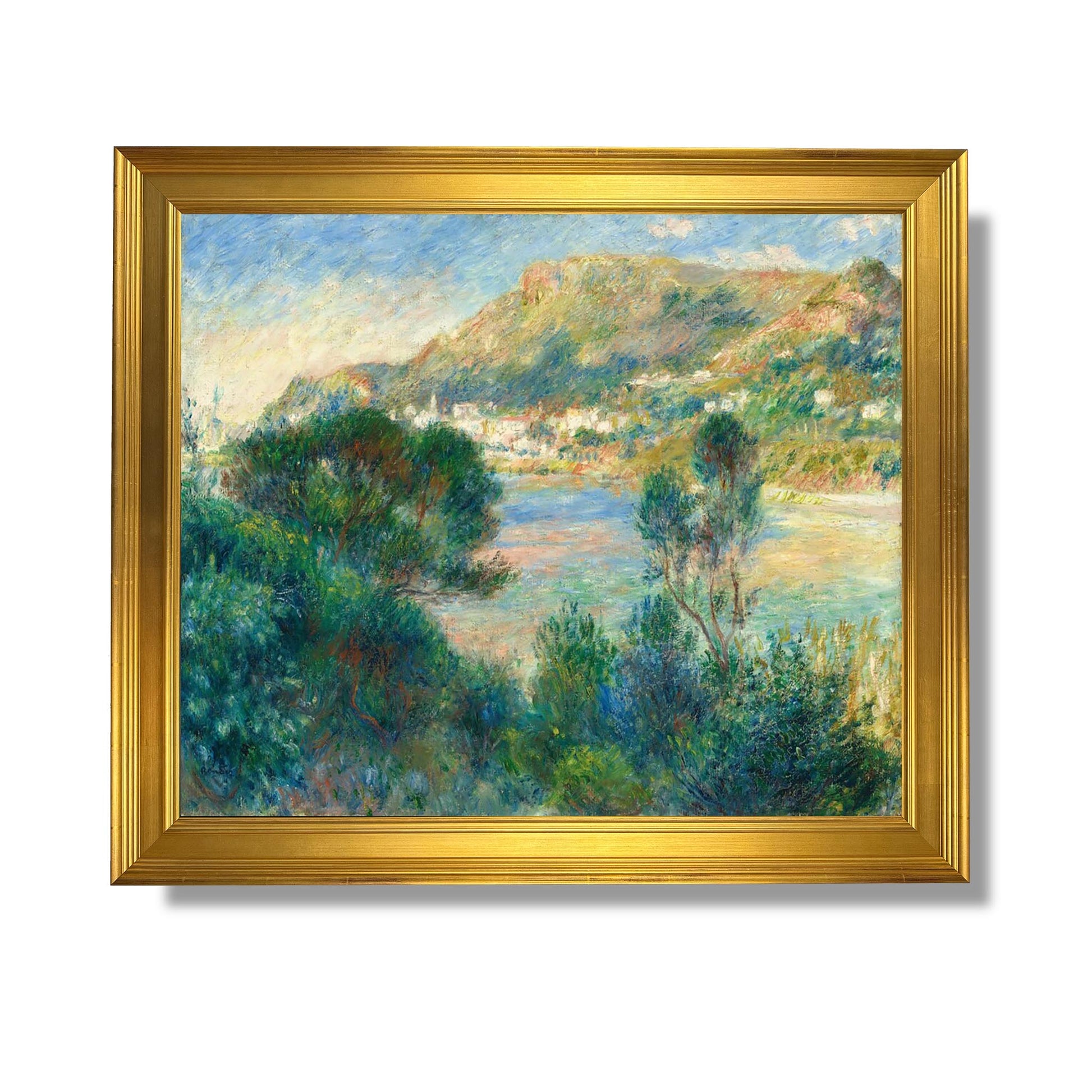 "View of Monte Carlo from Cap Martin" is an iconic work by Auguste Renoir, painted in 1883. This painting exemplifies Renoir's mastery of light and vivid colors, typical of Impressionism. The scene depicts a sunlit panorama of Monte Carlo, with its elegant buildings and the shimmering Mediterranean Sea. The fluid brushstrokes and shades of blue and green create an atmosphere of serenity and beauty. This work is a testament to Renoir's love of nature and his talent for capturing fleeting moments, inviting the viewer to appreciate the splendor of the landscape.