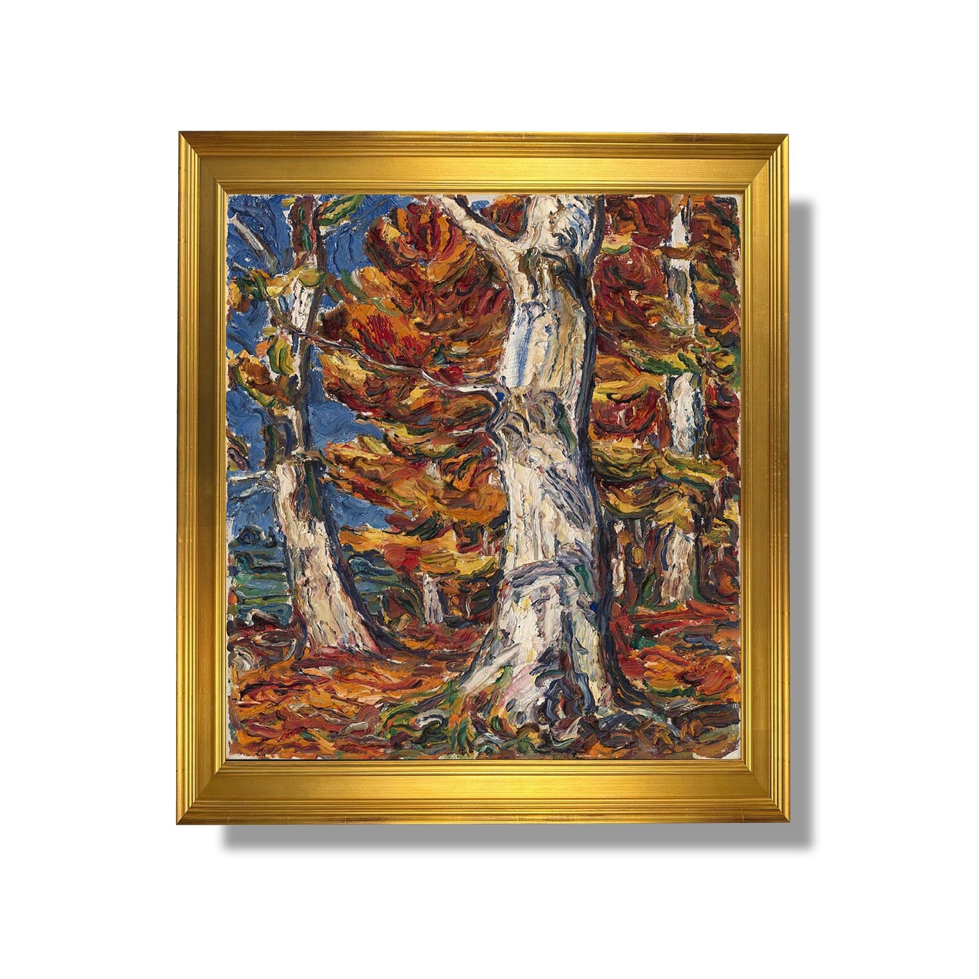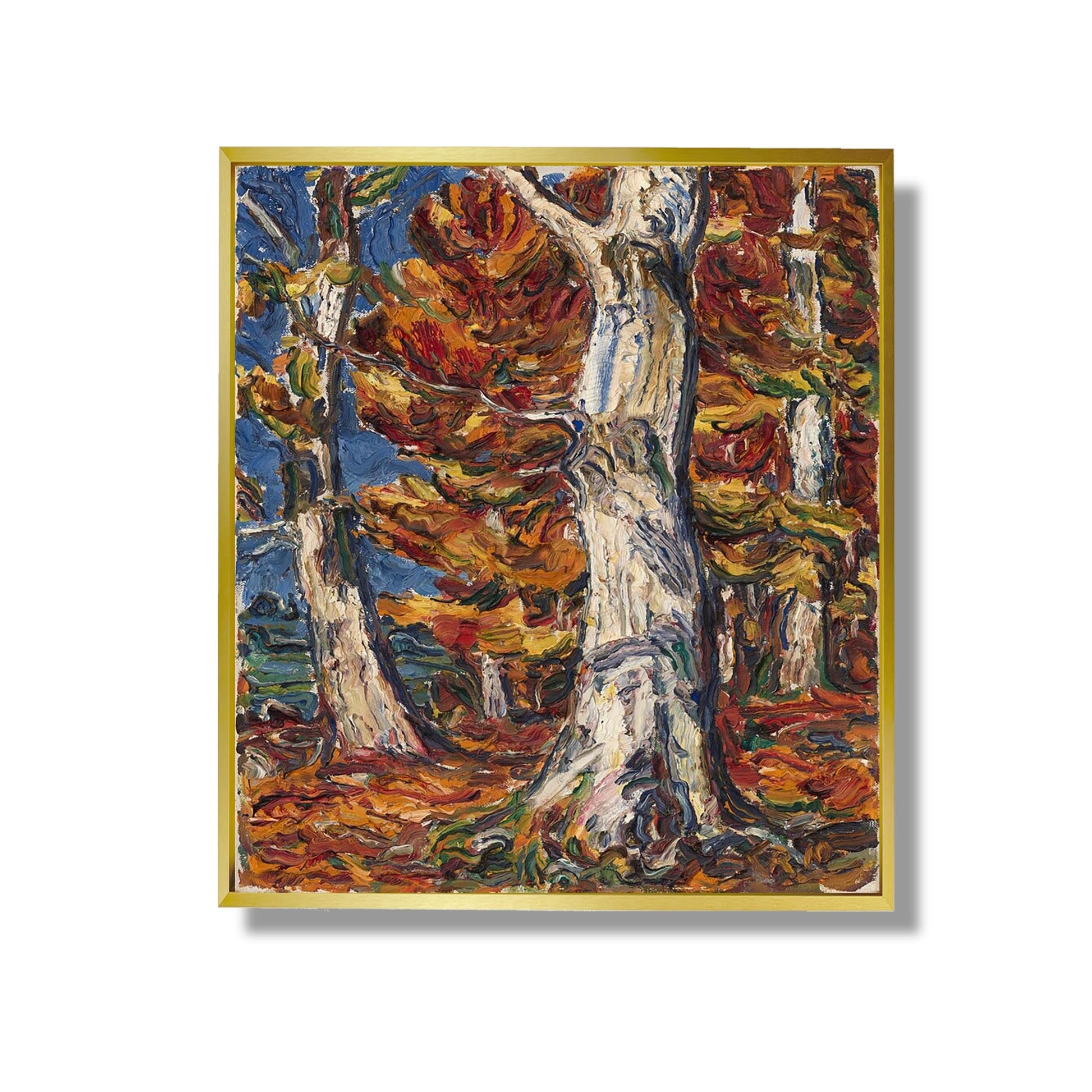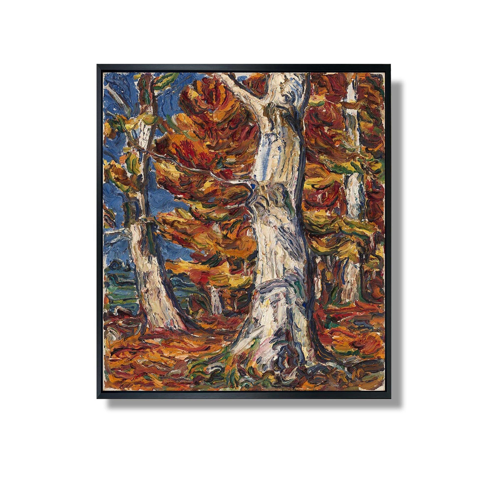 "White Beeches in Fall" is an iconic work by Christian Rohlfs, a German painter from the early 20th century known for his expressionist style. In this painting, Rohlfs captures the beauty of birch trees in autumn, using bright colors and stylized shapes to evoke the intensity of the season. The white trunks of the trees contrast with the warm hues of the leaves, creating an atmosphere that is both serene and vibrant. The work reflects the artist's love of nature and his desire to convey deep emotions through color and light, characterizing his unique approach to art.