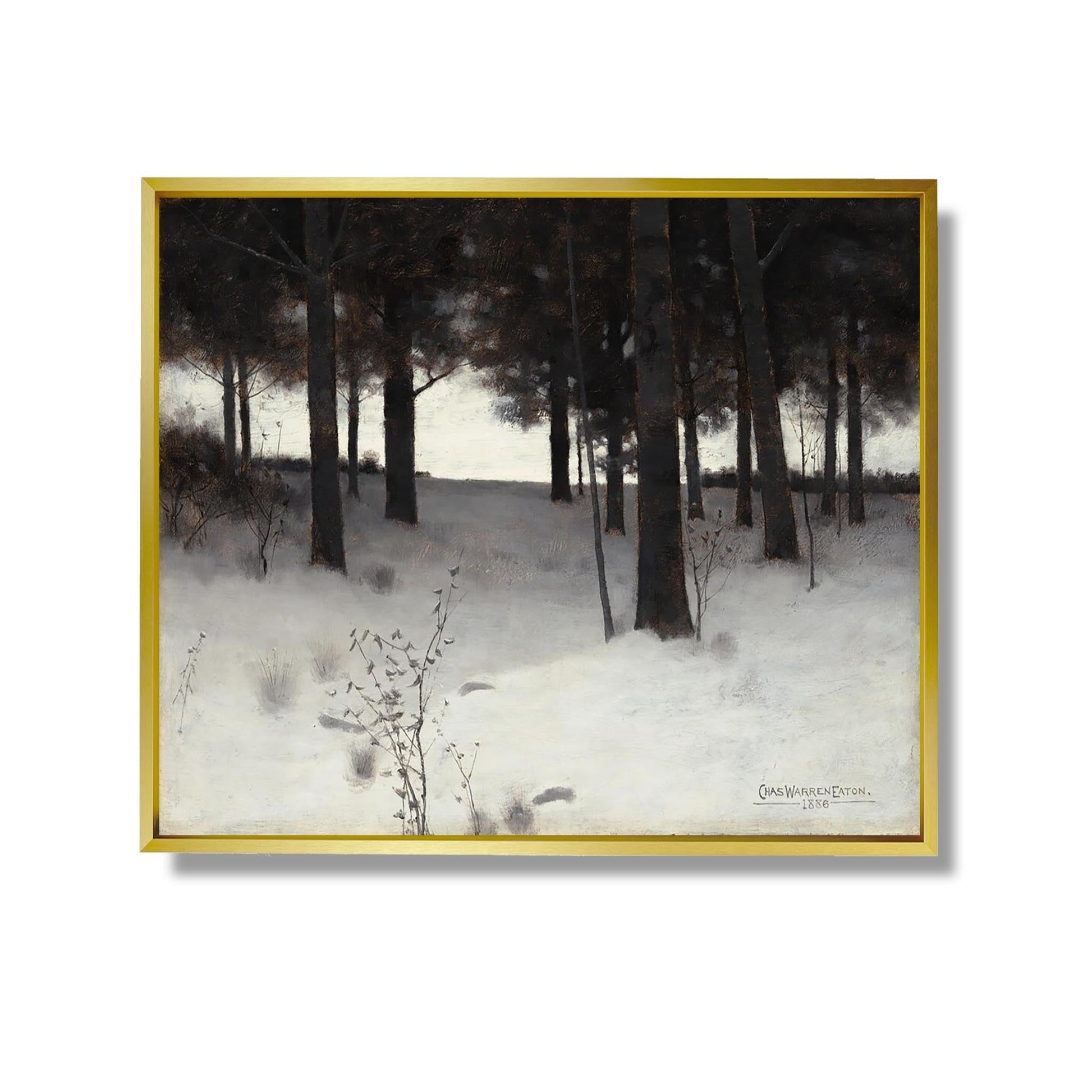 Charles Warren Eaton's "Woods in Winter" is an iconic work that captures the serenity and beauty of winter landscapes. Painted in 1900, this painting depicts a snowy forest, with soft sunlight filtering through the bare branches of the trees. Eaton, known for his impressionist style, uses shades of blue and white to evoke the tranquility of winter. The intricate details of the trees and the texture of the snow create a peaceful atmosphere, inviting the viewer to contemplate the fleeting beauty of nature. This work perfectly illustrates Eaton's ability to convey emotion through landscapes.