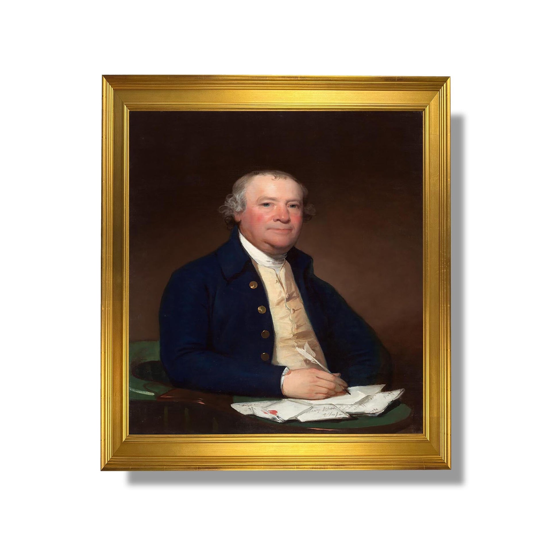 "Captain Joseph Anthony" is an iconic portrait painted by Gilbert Stuart in 1798. This American artist, known for his mastery of portraiture, captures the essence of the character with great finesse. The painting depicts Captain Joseph Anthony, a man of sea, in a confident pose, dressed in a military uniform. Stuart uses light and shadow techniques to accentuate facial features and the texture of clothing, creating a sense of depth and realism. This portrait illustrates not not only Stuart's talent, but also the importance of military figures in American history.