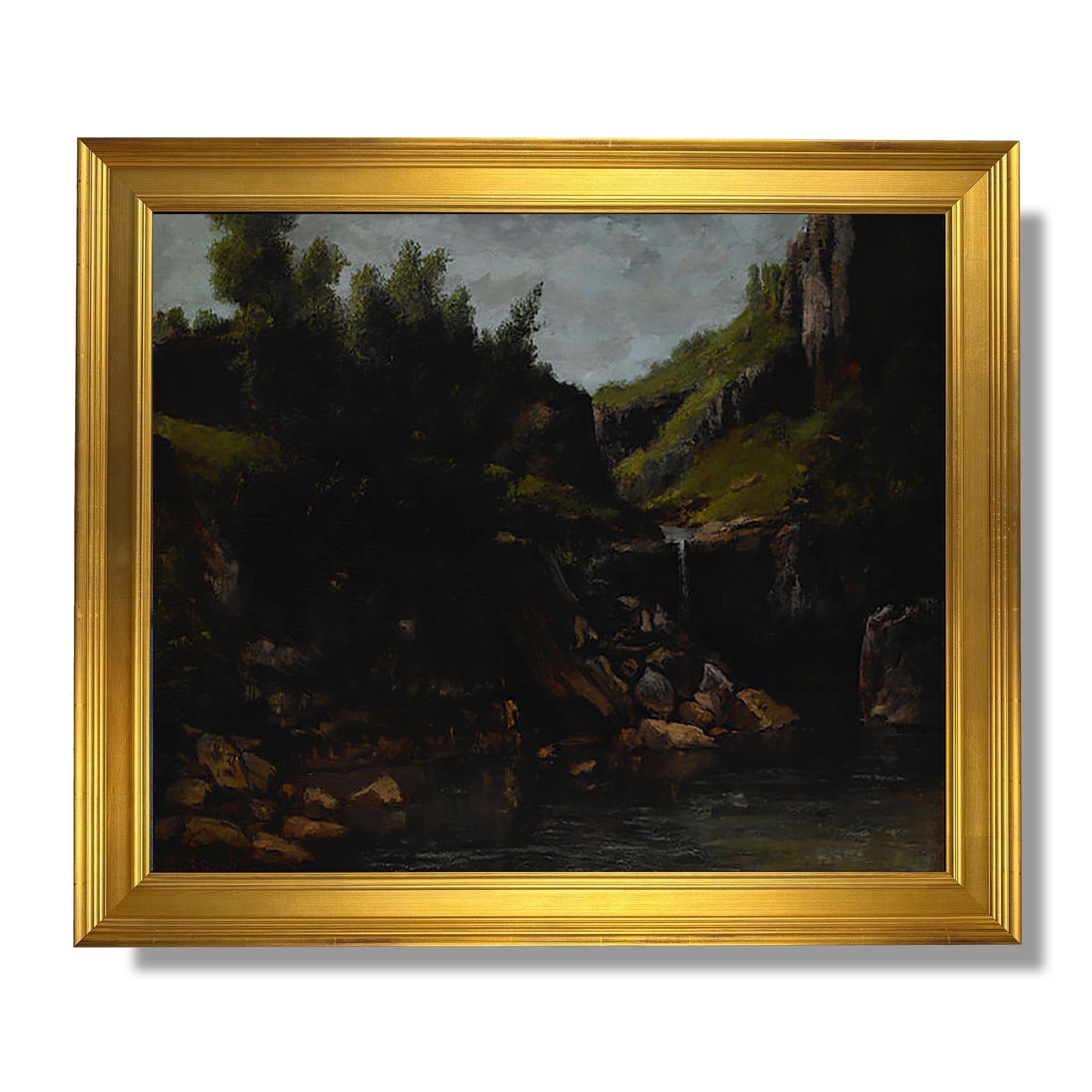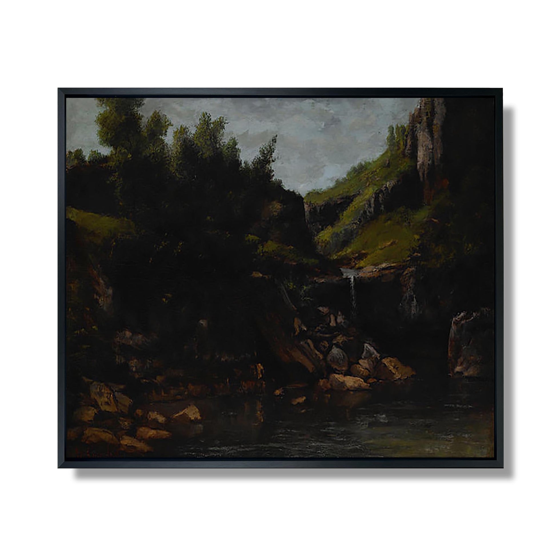 "Waterfall in a Rocky Landscape" is an iconic work by Gustave Courbet, created in 1866. This painting illustrates the realism dear to the artist, who sought to capture nature in all its splendor. The composition highlights a tumultuous waterfall, surrounded by imposing rocks and lush vegetation. Courbet uses bright colors and striking contrasts to bring this landscape to life. The work reflects his admiration for nature and his desire to represent reality without idealization, thus marking a break with the academic conventions of his time.