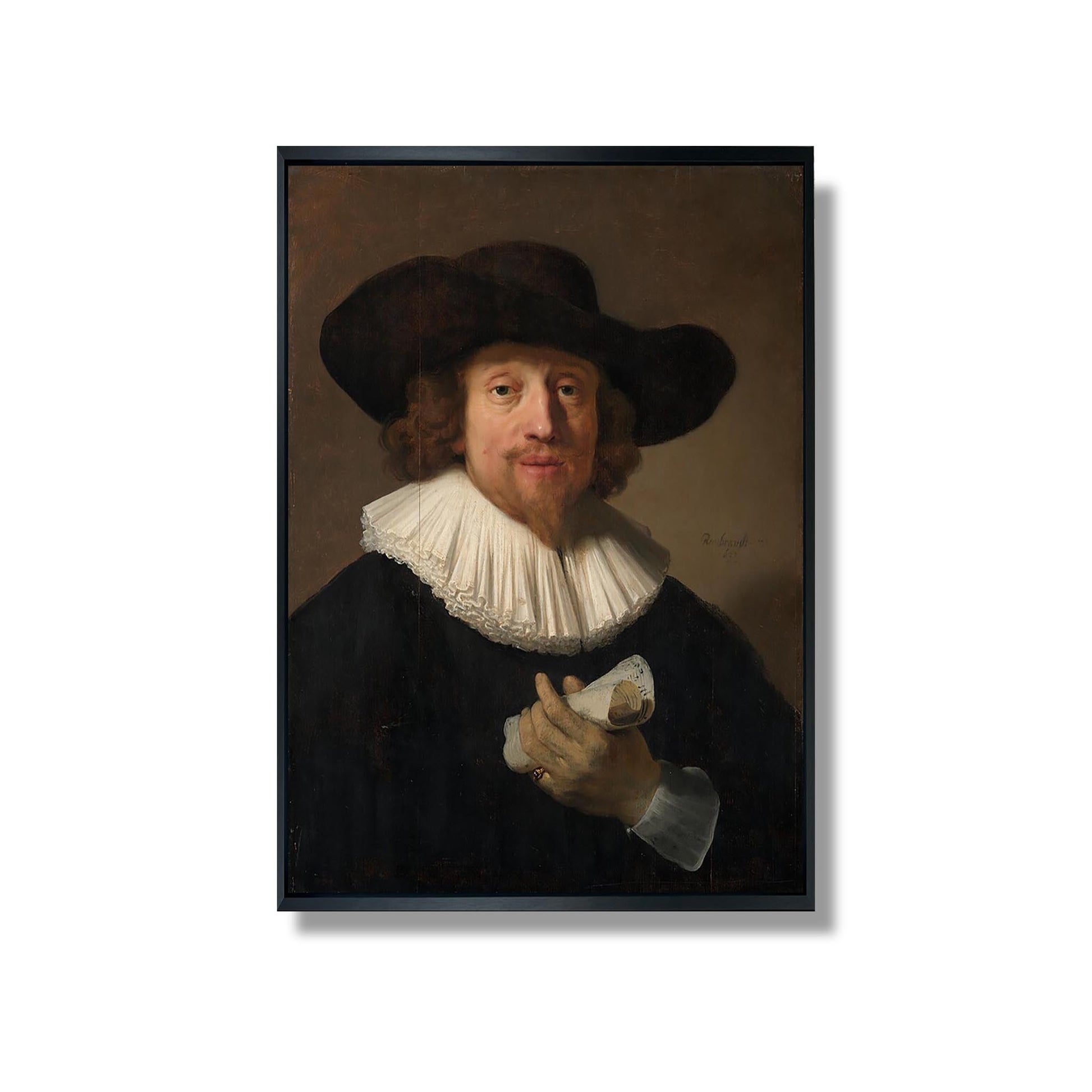 "Man with a Sheet Music" is an iconic work by Rembrandt, painted around 1627. This painting depicts a man, probably a musician, contemplating a sheet of music. The light, typical of Rembrandt's style, subtly illuminates the figure's face and hands, creating a striking contrast with the dark background. This work highlights the artist's mastery of light and shadow, as well as his talent for capturing human emotion. It demonstrates Rembrandt's interest in music and the inner lives of his subjects.