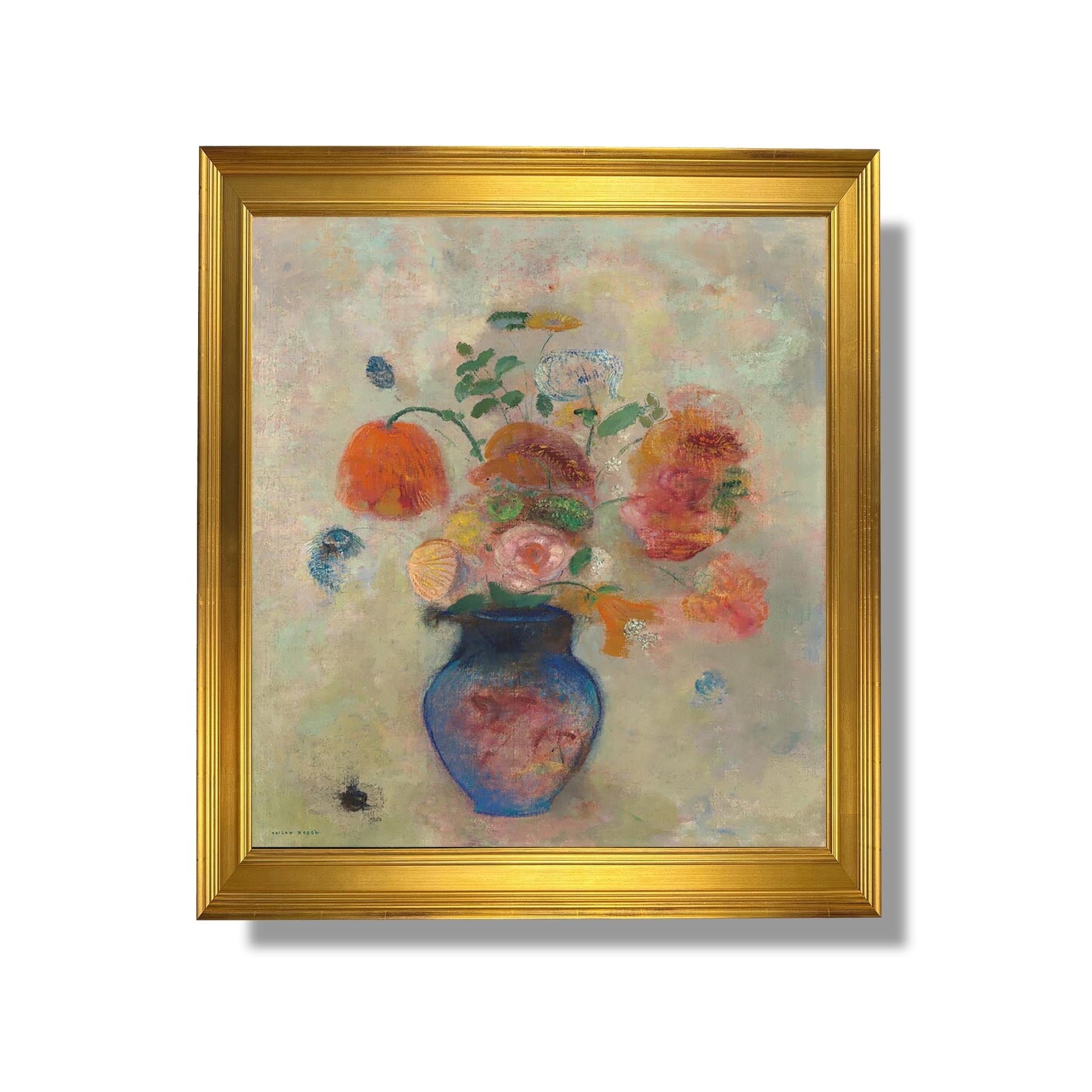 Odilon Redon, a 19th-century French painter and lithographer, is famous for his exploration of the themes of dreams and imagination. In his work "Large Vase with Flowers", he captures the ephemeral beauty of nature through a vibrant and colorful composition. The flowers, with their delicate shapes and bright hues, almost seem to float in an indefinite space, evoking an atmosphere of mystery and contemplation. Redon uses blur and light techniques to create a dreamlike atmosphere, inviting the viewer to dive into a world where reality and dreams meet. This work perfectly illustrates his unique style, combining symbolism and sensitivity.