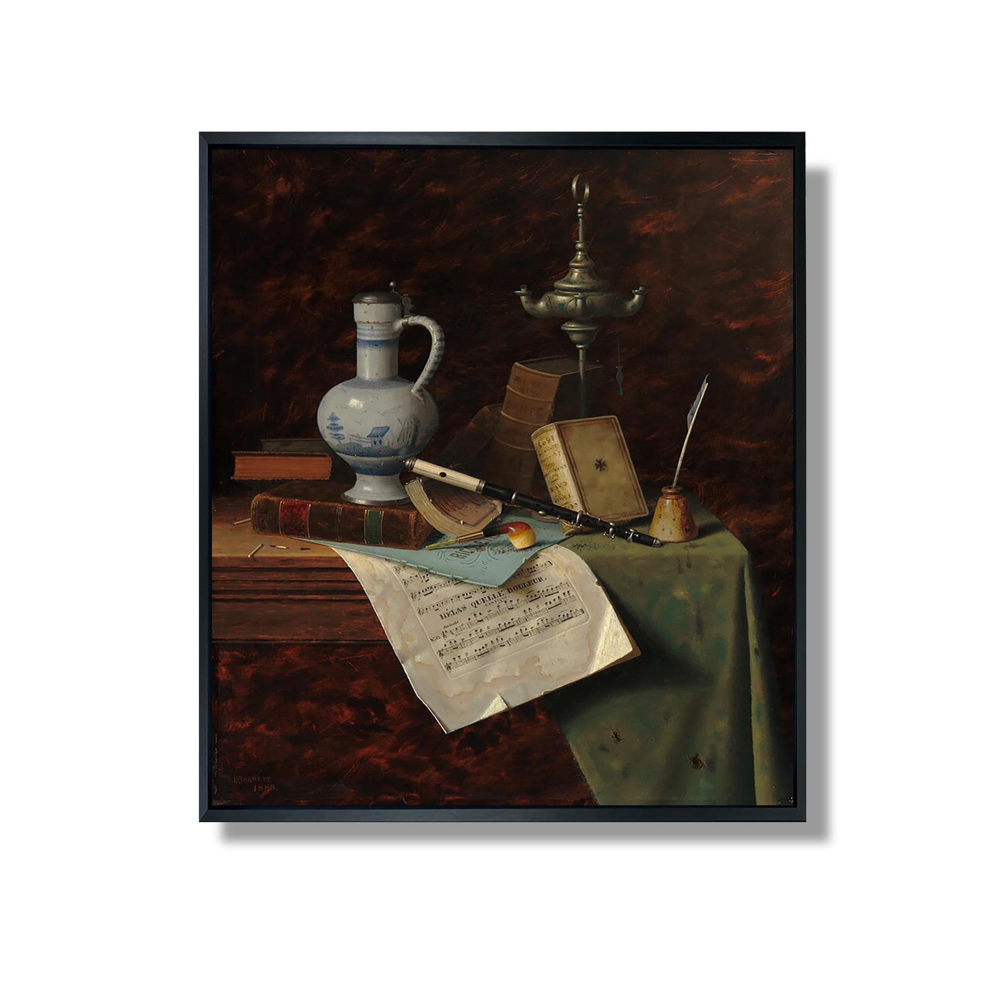 William Michael Harnett, a 19th-century American painter, is famous for his hyperrealistic still lifes. In his work "My Gems", he explores the beauty of everyday objects, highlighting precious gems carefully arranged. Harnett uses a trompe-l'oeil technique, creating an illusion of depth and texture that captivates the eye. The reflections and play of light on the stones reveal his skill in capturing reality. Through "My Gems", Harnett invites the viewer to appreciate the richness of detail and the poetry of the objects, transforming the mundane into the sublime.