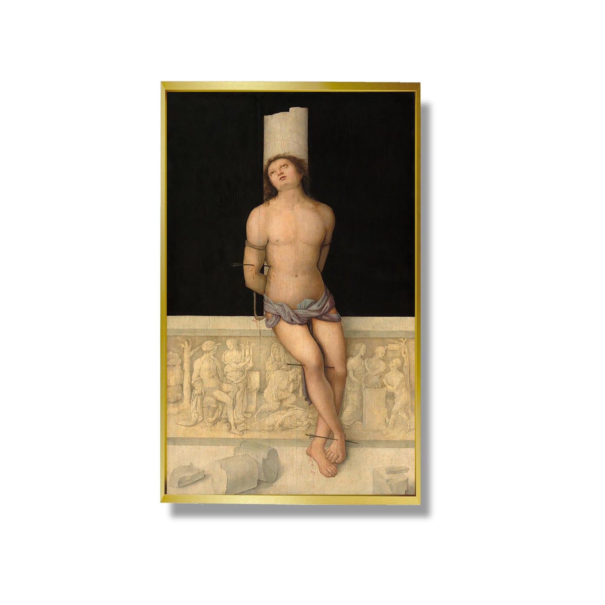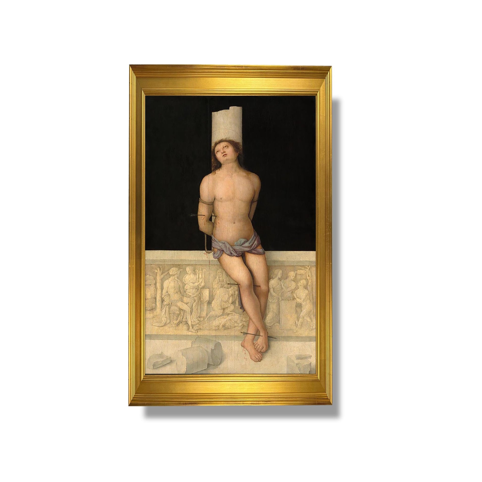 Amico Aspertini's "Saint Sebastian", painted in the early 16th century, illustrates the artist's mastery of Mannerism. This painting depicts the Christian martyr, often symbolized by arrows, in a posture that is both tragic and contemplative. Aspertini uses bright colors and meticulous details to accentuate the emotion and suffering of the saint. The background, rich in architectural elements, creates a dramatic atmosphere. This work demonstrates the influence of the Italian Renaissance and Aspertini's originality, which combines tradition and innovation in his artistic approach.