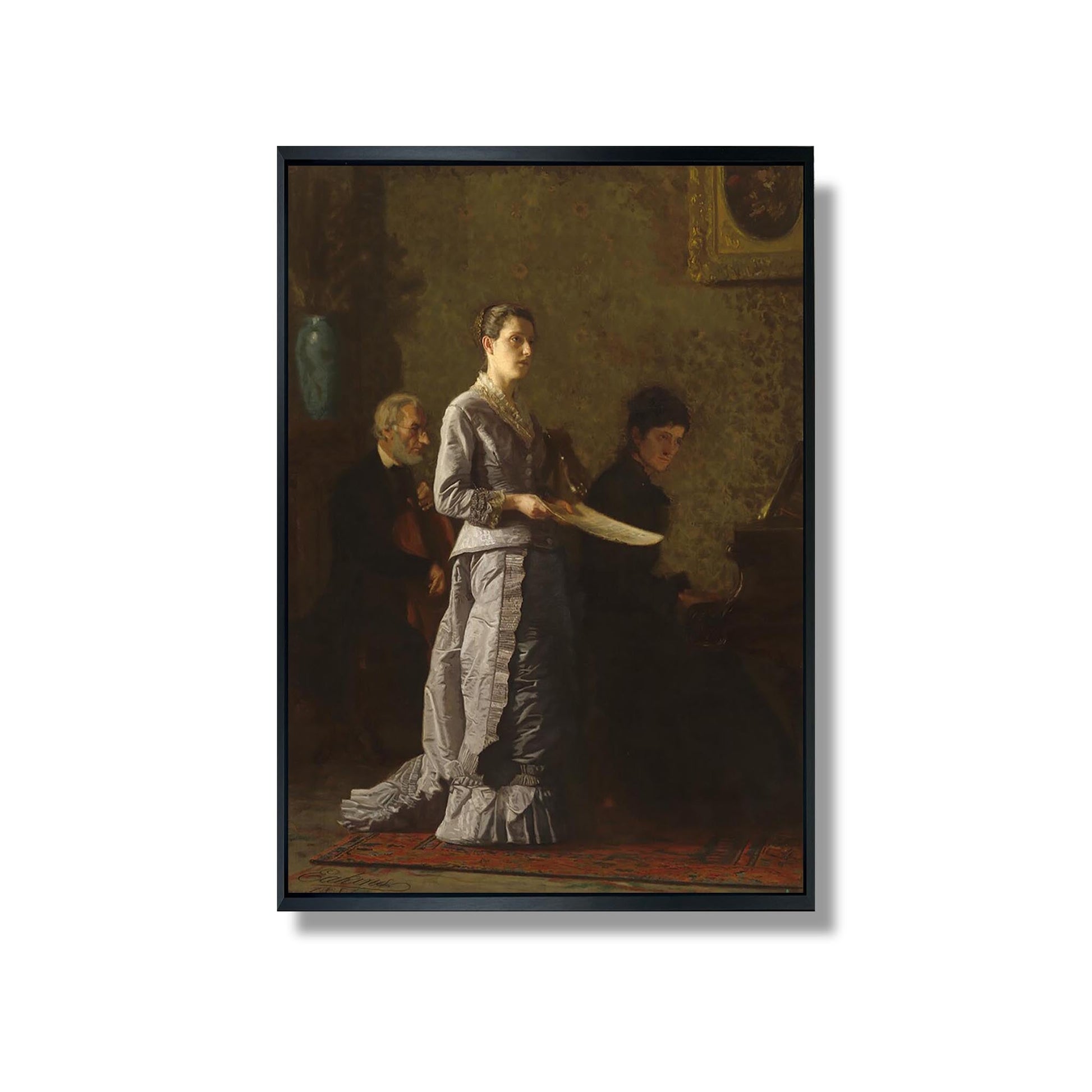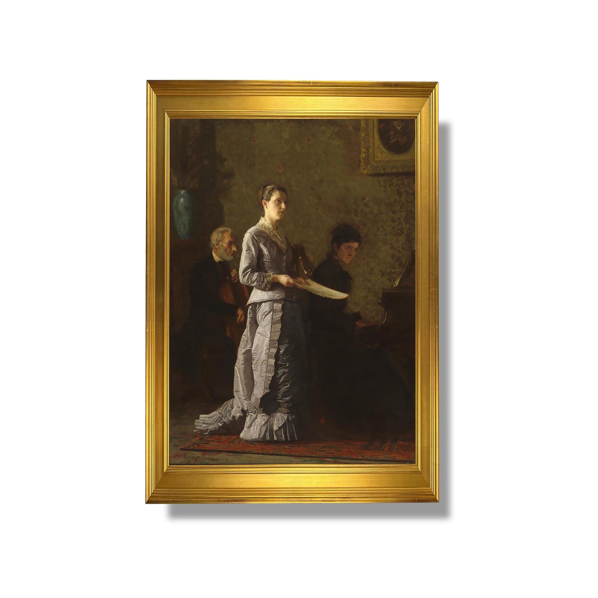 "Singing a Pathetic Song" is an iconic work by Thomas Eakins, created in 1890. This painting depicts an intimate and poignant moment, where a man sings with deep emotion, capturing human vulnerability. Eakins, known for his realism and attention to detail, uses light and shadow to accentuate the singer's expression. The composition highlights the connection between art and emotion, while reflecting the artist's interest in the psychology of the characters. This work is a testament to Eakins' ability to explore the human condition through art.