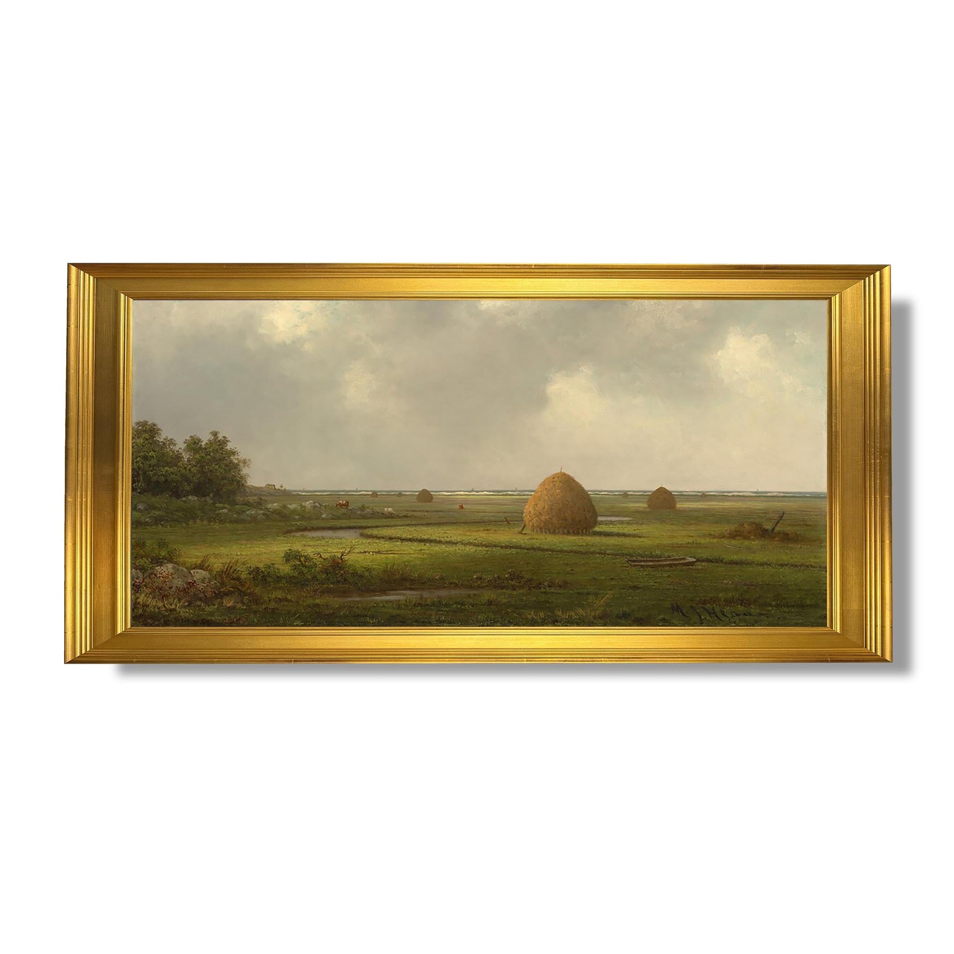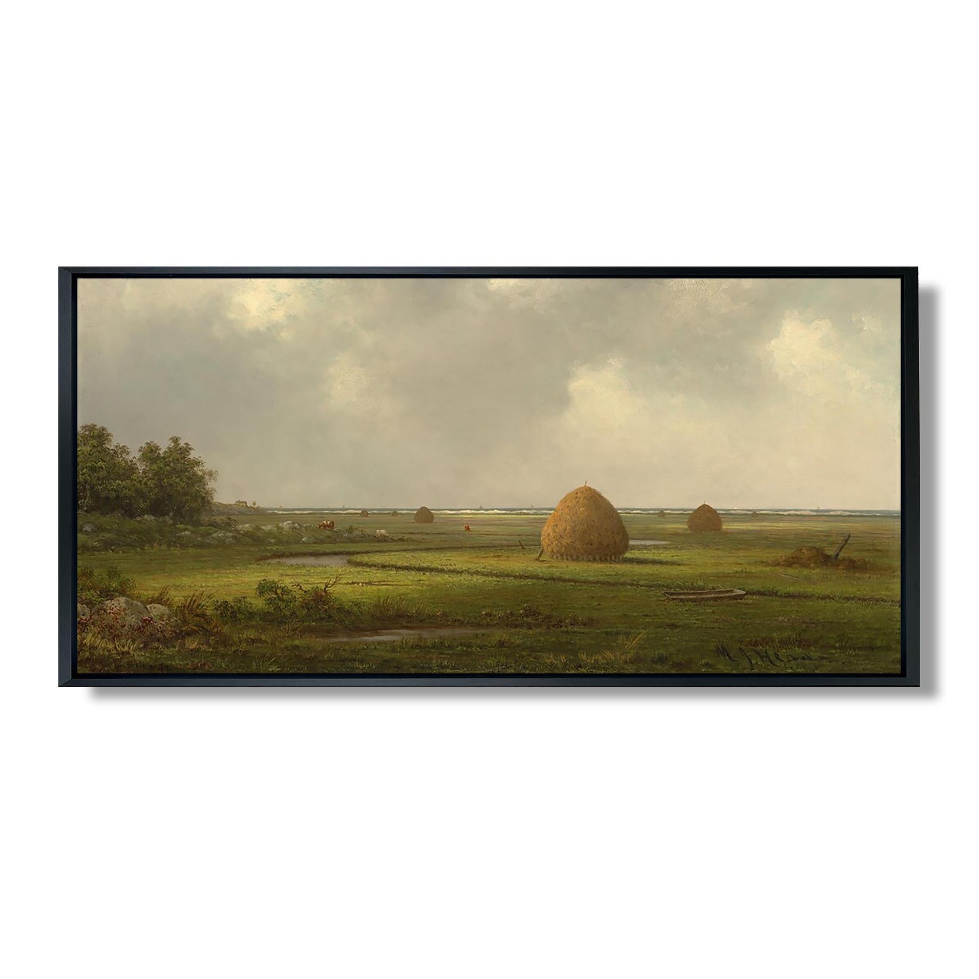 "View of Marshfield" is an iconic work by Martin Johnson Heade, a 19th-century American painter known for his landscapes and still lifes. Painted around 1865, this painting captures the serene beauty of the Massachusetts marshes, where golden sunlight reflects off calm water. Heade uses a subtle palette to evoke the harmony between nature and man. The intricate detailing of the plants and dramatic skies demonstrate his technical skill. This work perfectly illustrates Heade's interest in light and atmosphere, while celebrating the tranquility of the American landscape.