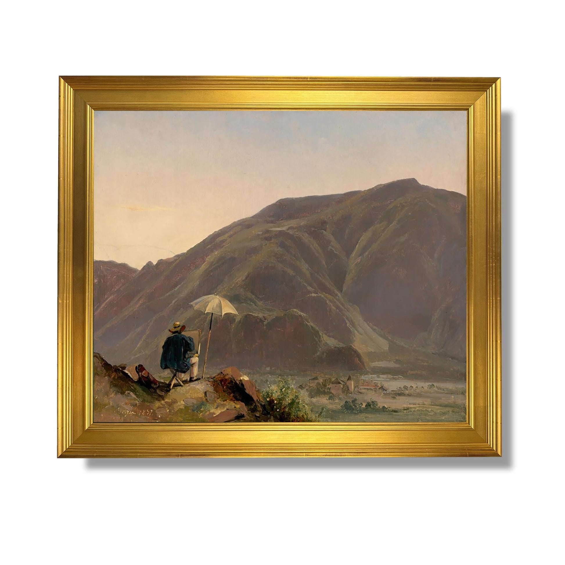 Jules Coignet, a 19th-century French painter, is known for his romantic landscapes and mastery of light. In his work "View of Bolzano", he captures the beauty of the Italian Alps, blending nature and architecture. The painting depicts a panoramic view of the city of Bolzano, with its majestic mountains in the background and picturesque buildings in the foreground. Coignet uses bright colors and striking contrasts to evoke an atmosphere that is both serene and dynamic. This work illustrates his talent for immortalizing enchanting landscapes, demonstrating his attachment to nature.