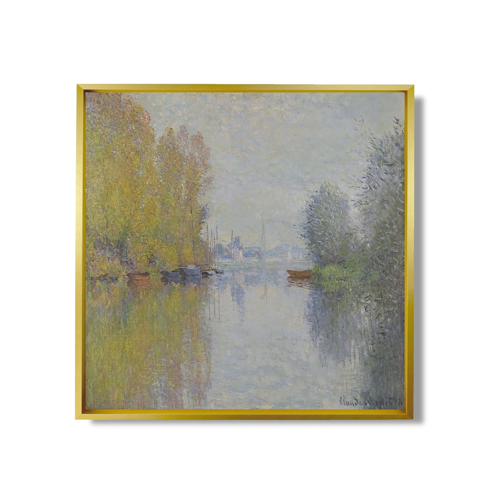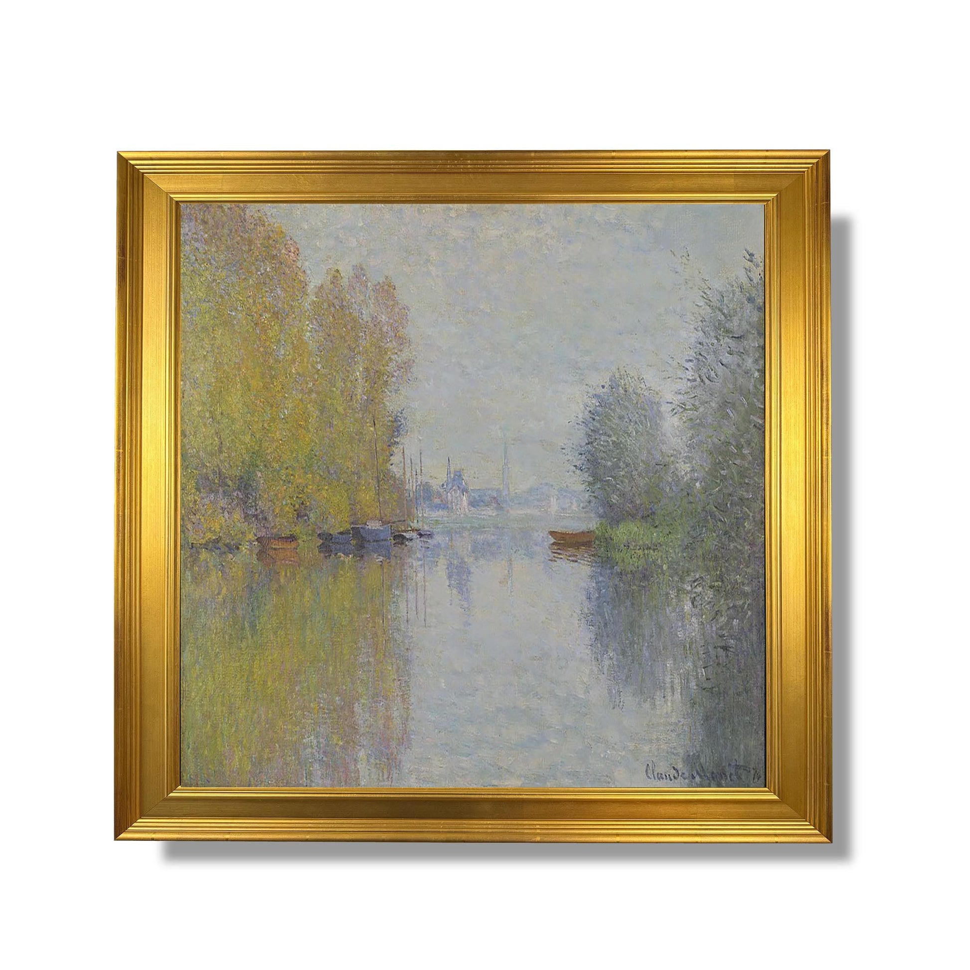 "Automne sur la Seine, Argenteuil" est une œuvre emblématique de Claude Monet, peinte en 1873. Ce tableau illustre la beauté des paysages impressionnistes, capturant la lumière et les couleurs changeantes de l'automne. Monet y représente la Seine bordée d'arbres aux feuillages dorés, reflétant la douceur de la saison. Les touches de pinceau rapides et vibrantes créent une atmosphère vivante, tandis que les bateaux à voile ajoutent une dimension dynamique à la scène. Cette œuvre témoigne de l'obsession de Monet pour la nature et son désir de saisir l'éphémère, marquant ainsi une étape clé dans l'évolution de l'impressionnisme.