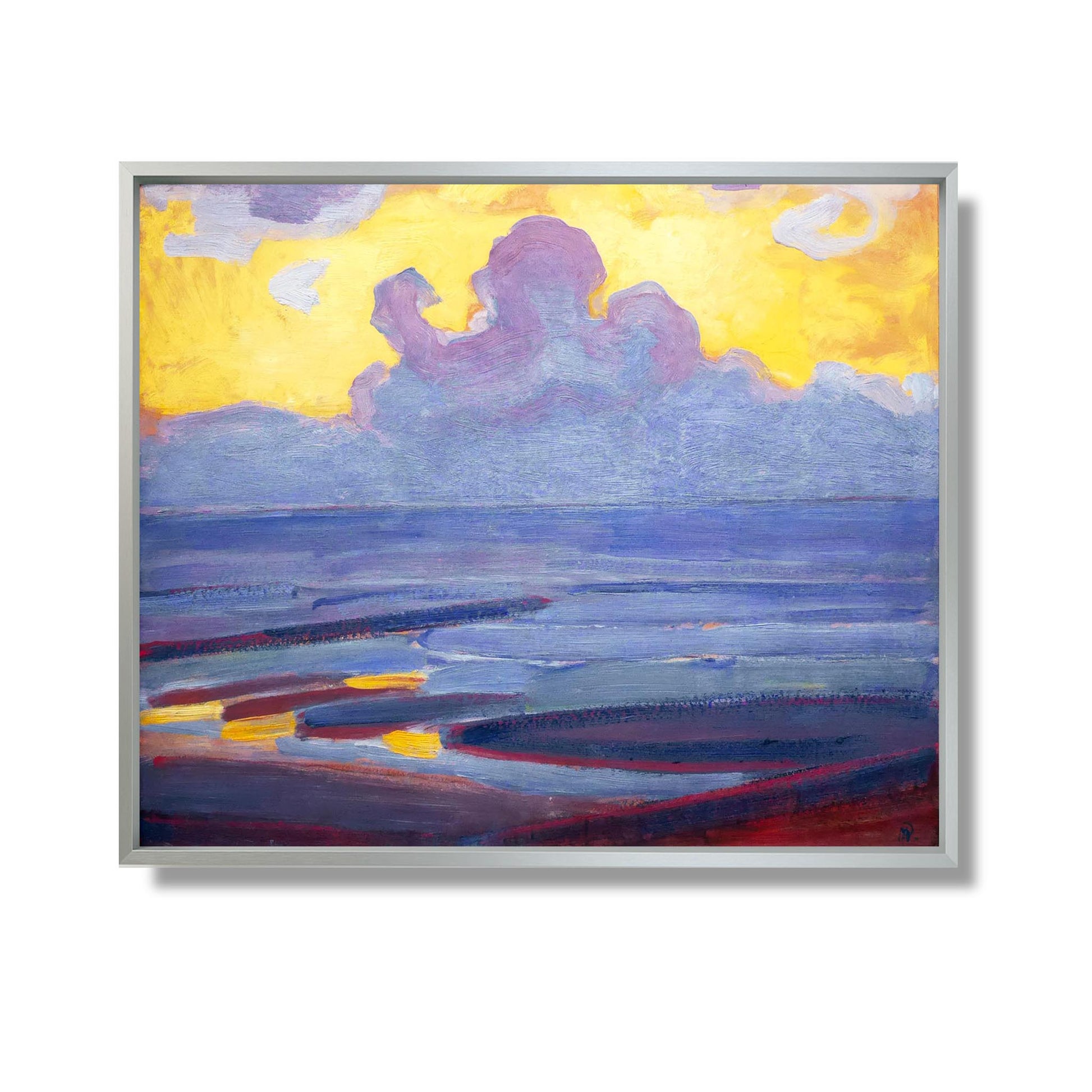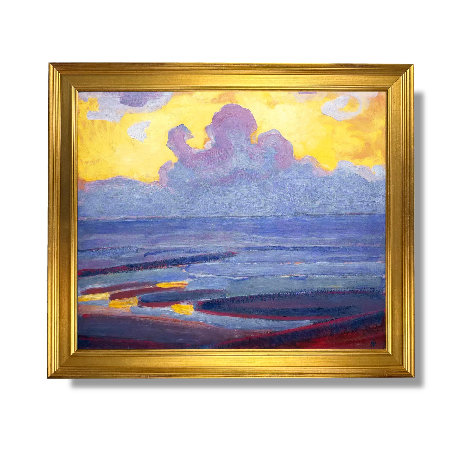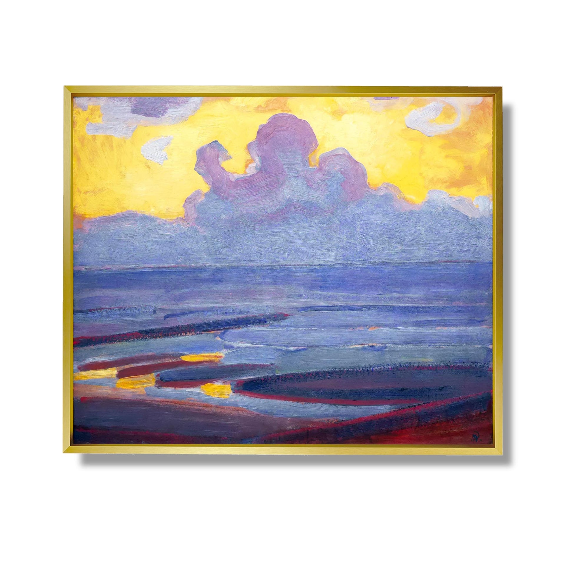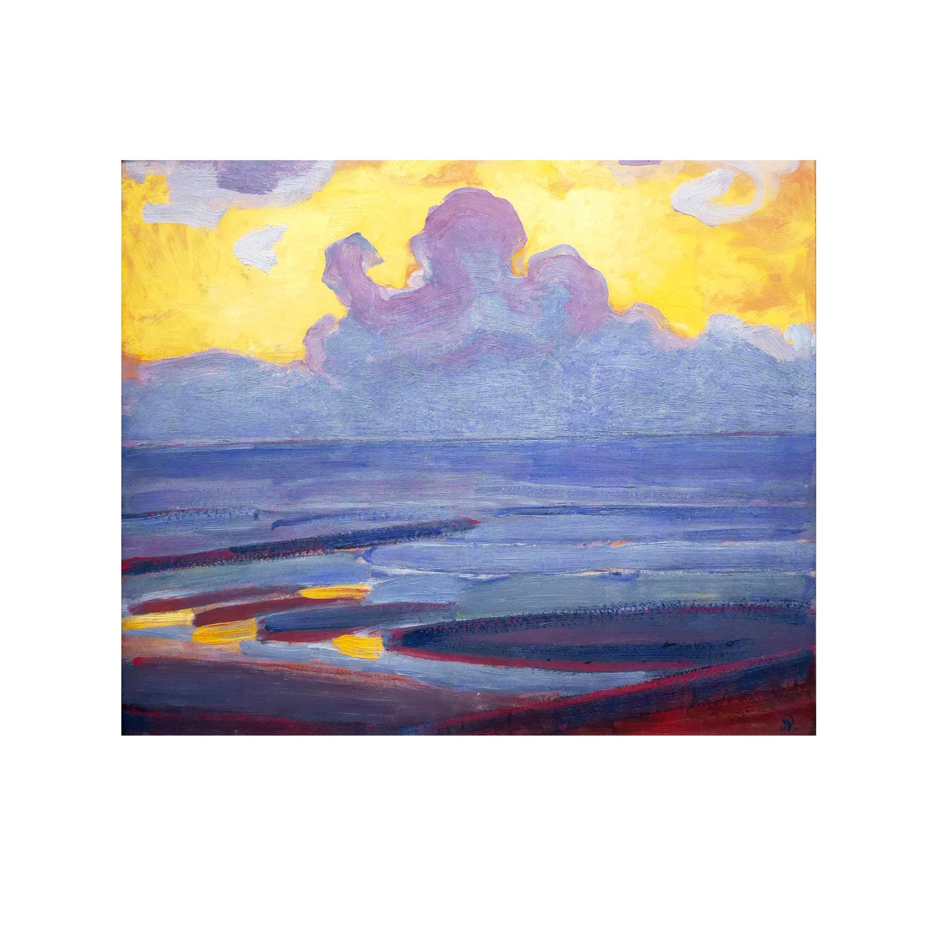 "By the Sea" est une œuvre emblématique de Piet Mondrian, réalisée en 1915. Ce tableau illustre la transition de l'artiste vers l'abstraction géométrique. Les formes rectangulaires et les lignes verticales et horizontales évoquent une composition harmonieuse, tout en capturant l'essence d'un paysage maritime. Les couleurs vives, principalement des bleus et des jaunes, reflètent la lumière et l'énergie de la mer. Mondrian, en s'éloignant du figuratif, explore la relation entre l'art et la nature, créant une œuvre qui invite à la contemplation et à l'interprétation personnelle.