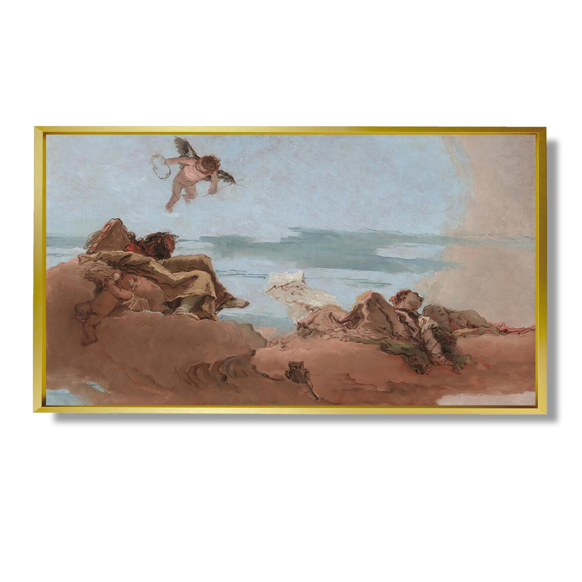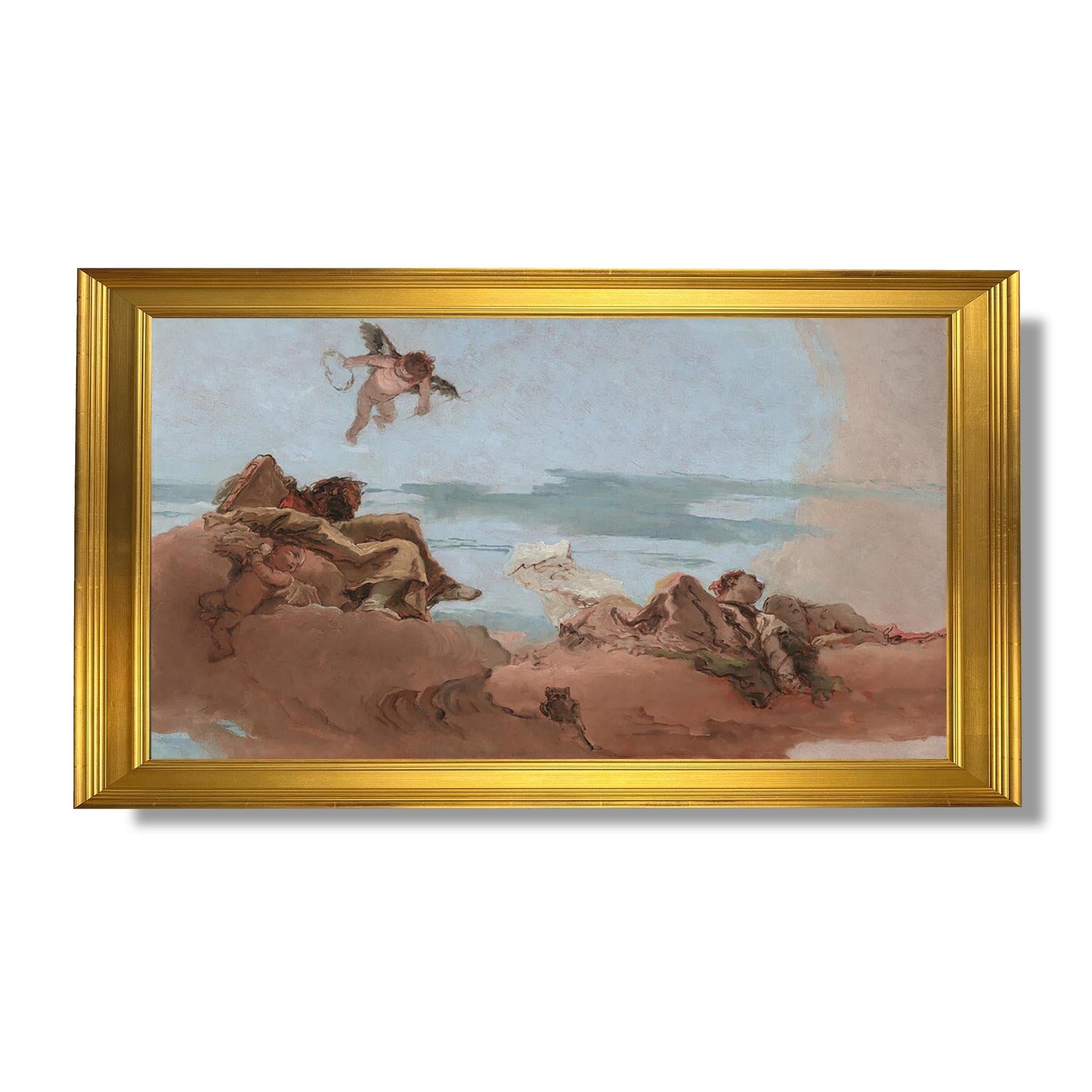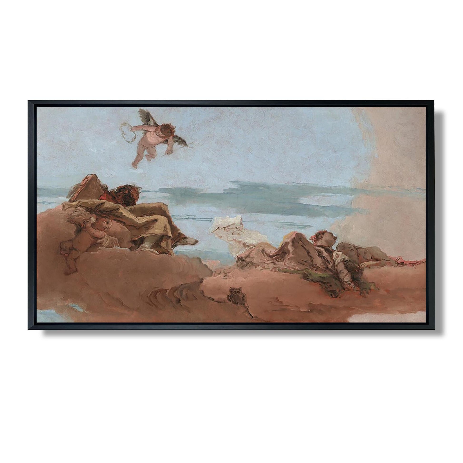 L'œuvre "Étude pour un plafond avec la personnification du Conseil" de Giovanni Battista Tiepolo, réalisée au XVIIIe siècle, illustre la maîtrise de l'artiste dans la composition et l'usage de la couleur. Cette étude préparatoire, riche en détails, présente des figures allégoriques qui symbolisent la sagesse et la justice, entourées d'une atmosphère lumineuse et dynamique. Tiepolo, célèbre pour ses fresques monumentales, utilise ici des poses élégantes et des drapés fluides, témoignant de son habileté à capturer le mouvement. Cette œuvre préfigure un plafond grandiose, mêlant spiritualité et grandeur, emblématique du style rococo.