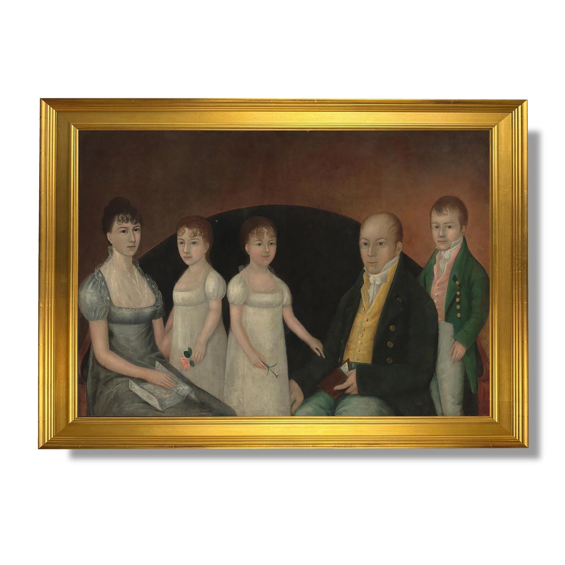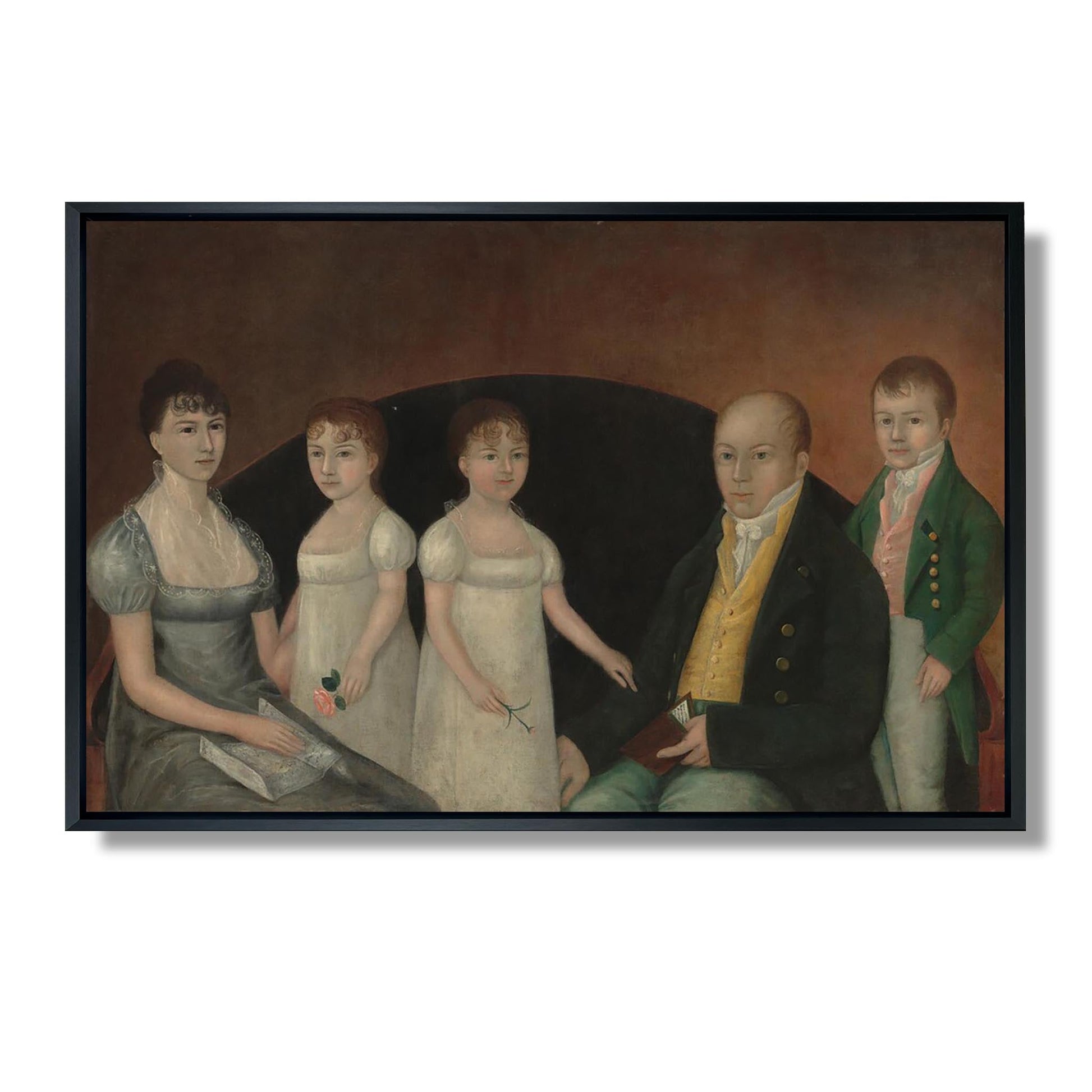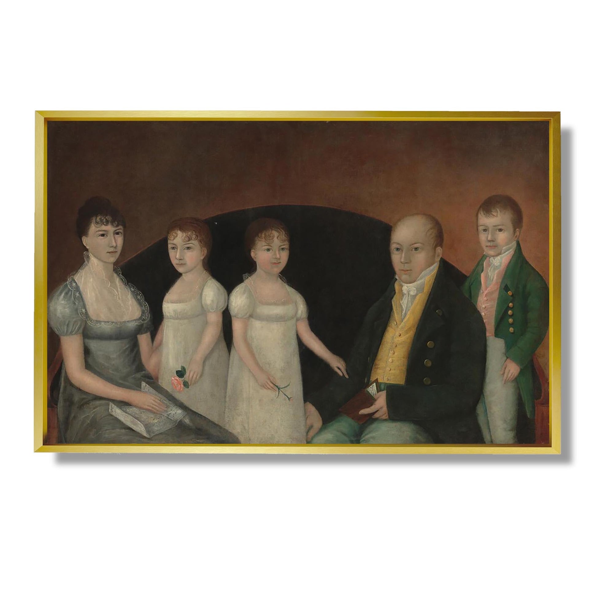 "Family Group" est une œuvre emblématique de Joshua Johnson, un artiste afro-américain du XVIIIe siècle, reconnu pour ses portraits. Dans cette peinture, Johnson capture l'essence de la vie familiale à travers une composition intime et chaleureuse. Les membres de la famille sont représentés avec une attention minutieuse aux détails, mettant en valeur leurs vêtements et expressions. L'œuvre reflète non seulement l'identité et la dignité des sujets, mais aussi les dynamiques sociales de l'époque. Johnson, en tant que l'un des premiers artistes afro-américains, a contribué à la reconnaissance de l'art noir dans l'histoire américaine.