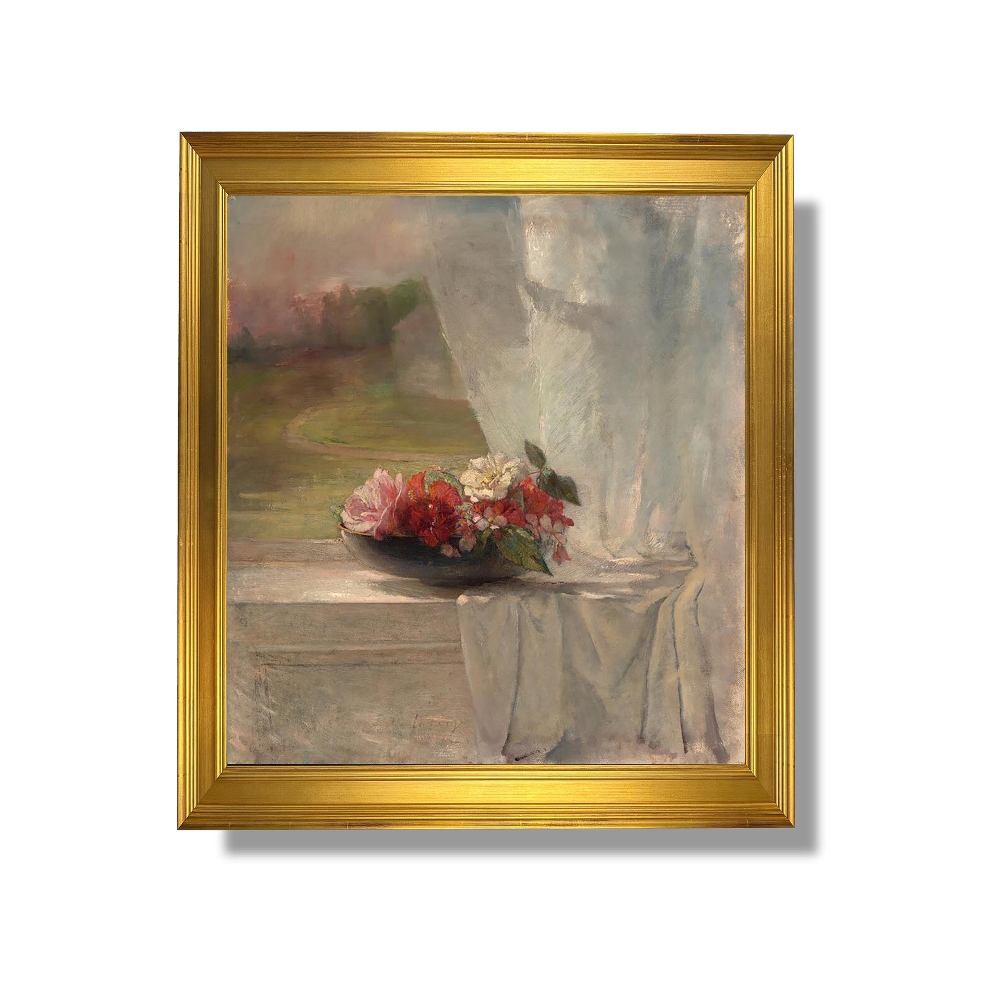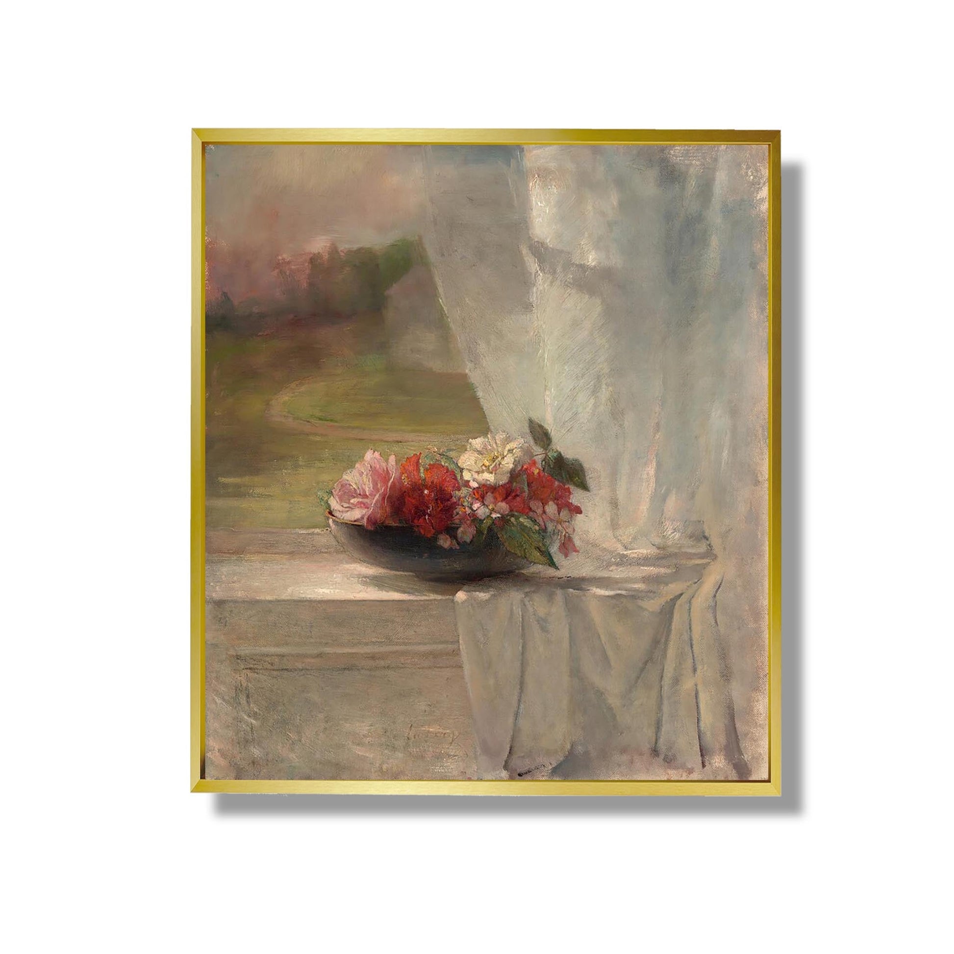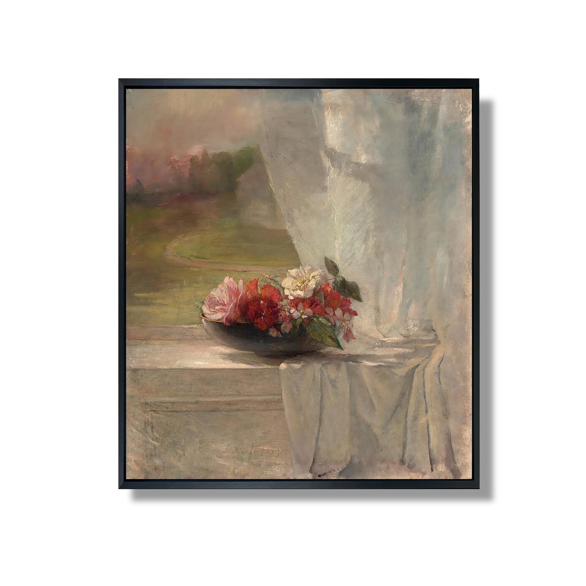"Flowers on a Window Ledge" est une œuvre emblématique de John La Farge, un artiste américain du XIXe siècle, reconnu pour son innovation dans le domaine du vitrail et de la peinture. Dans cette composition, La Farge capture la beauté éphémère des fleurs disposées sur un rebord de fenêtre, jouant avec la lumière et les ombres. Les couleurs vibrantes et les détails délicats révèlent son habileté à représenter la nature avec une sensibilité unique. Cette œuvre illustre non seulement son talent technique, mais aussi son intérêt pour l'harmonie entre l'intérieur et l'extérieur, invitant le spectateur à contempler la beauté du quotidien.