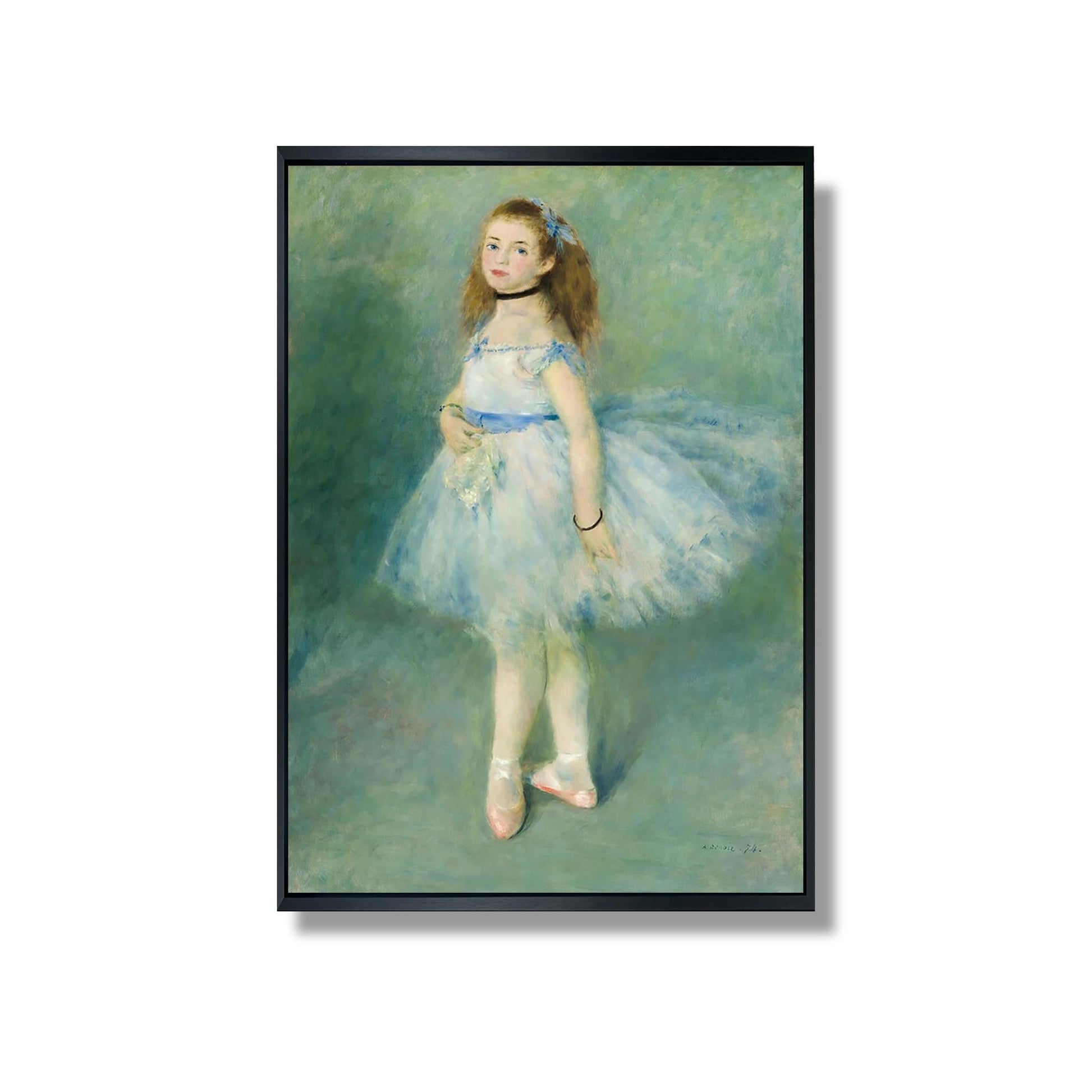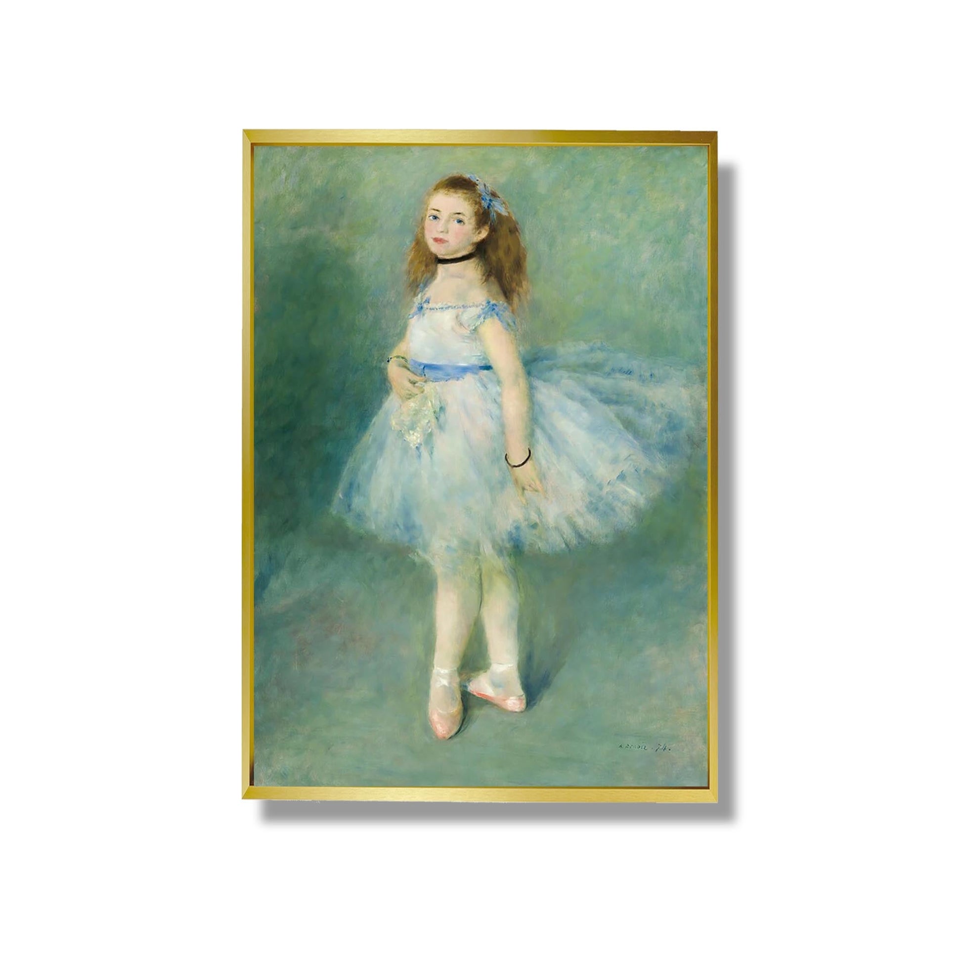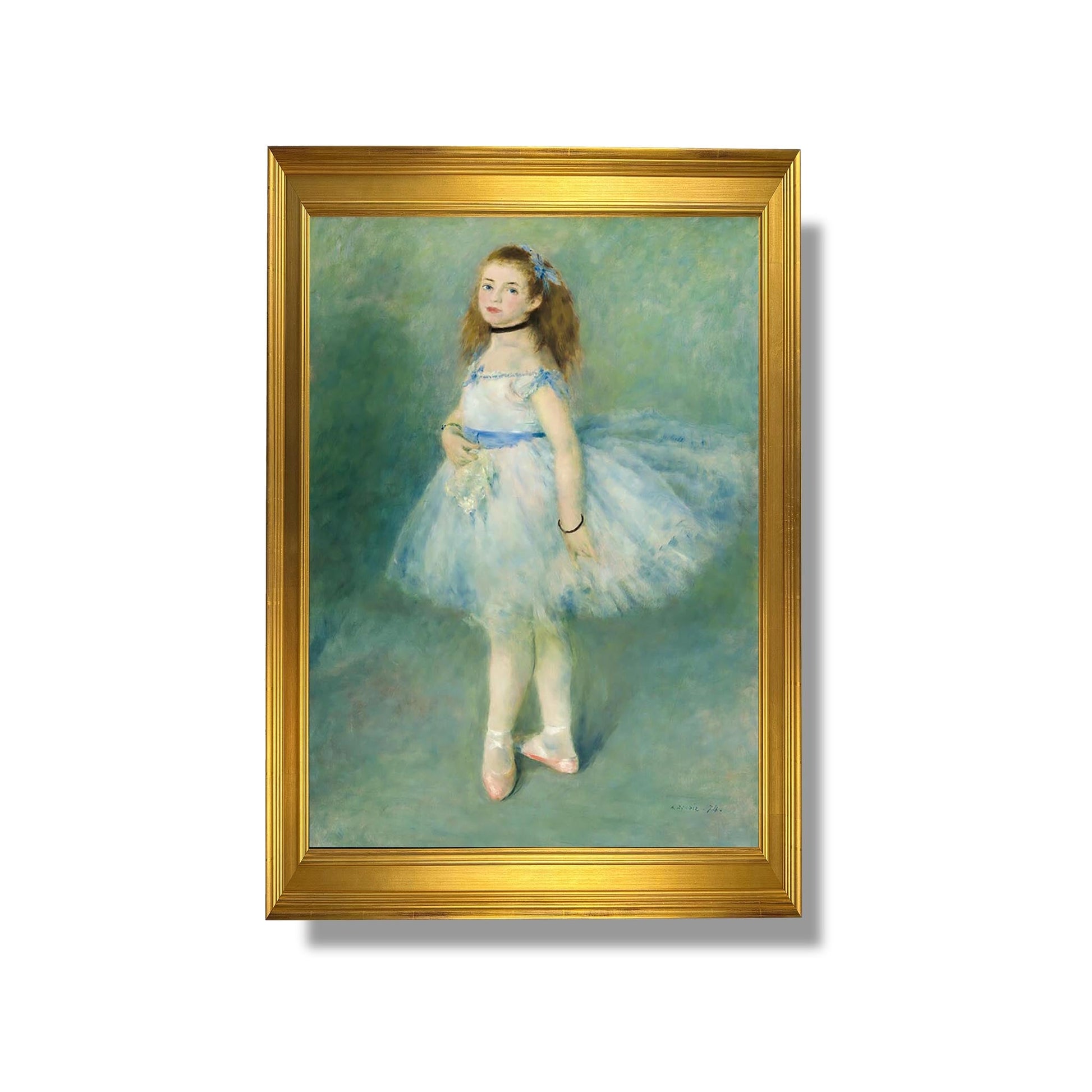 "La Danseuse" d'Auguste Renoir est une œuvre emblématique du mouvement impressionniste, réalisée en 1874. Ce tableau représente une jeune ballerine en pleine performance, capturant la légèreté et la grâce du mouvement. Renoir utilise des couleurs vives et des touches de pinceau fluides pour évoquer l'énergie et l'émotion de la danse. La lumière joue un rôle essentiel, illuminant le visage de la danseuse et créant une atmosphère vibrante. À travers cette œuvre, Renoir célèbre la beauté du corps humain et l'art de la danse, tout en reflétant l'effervescence de la vie parisienne de son époque.