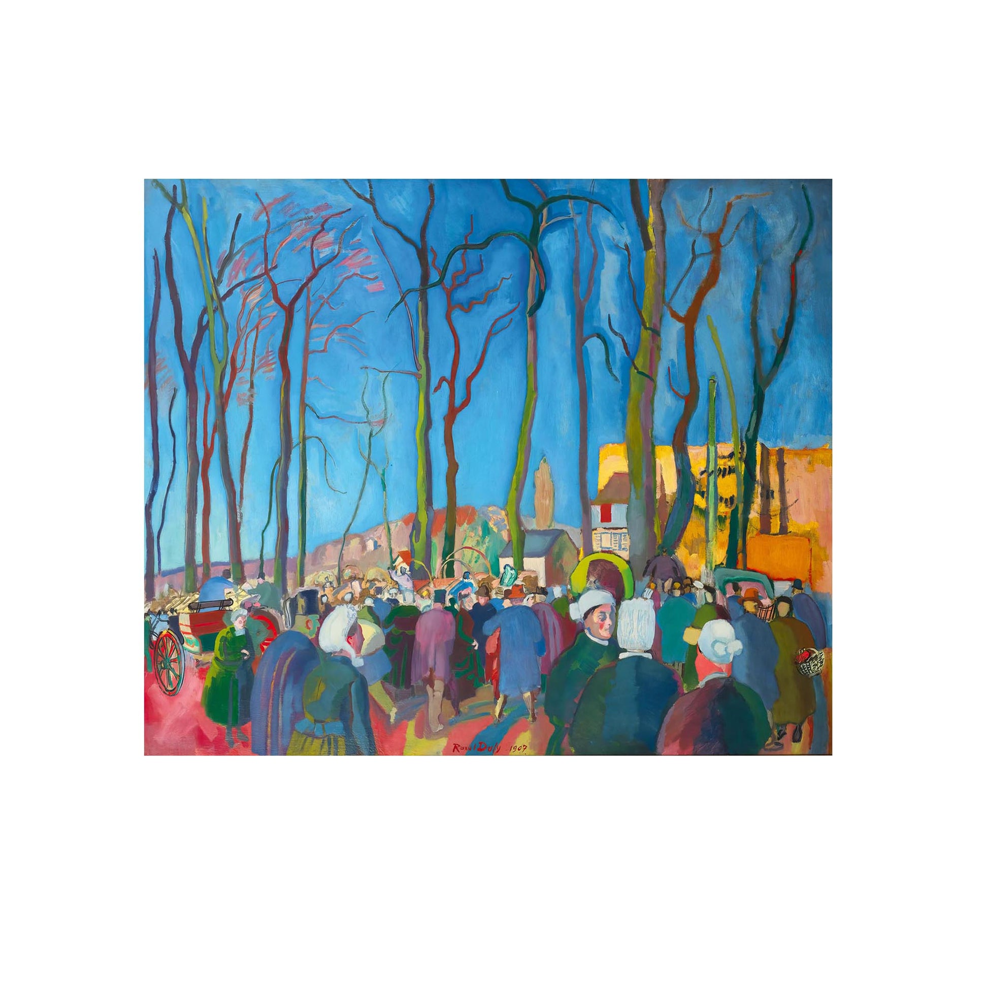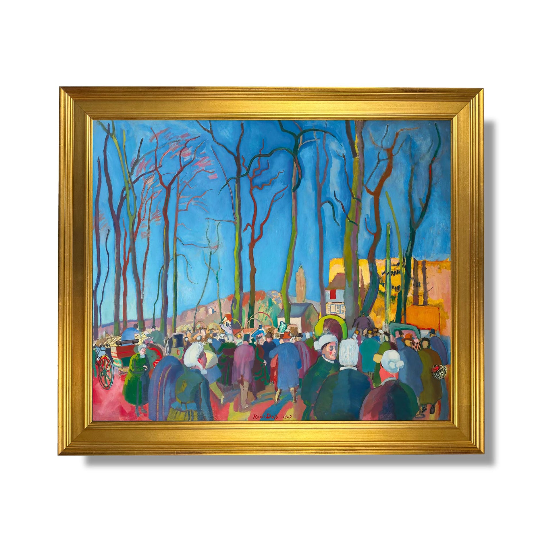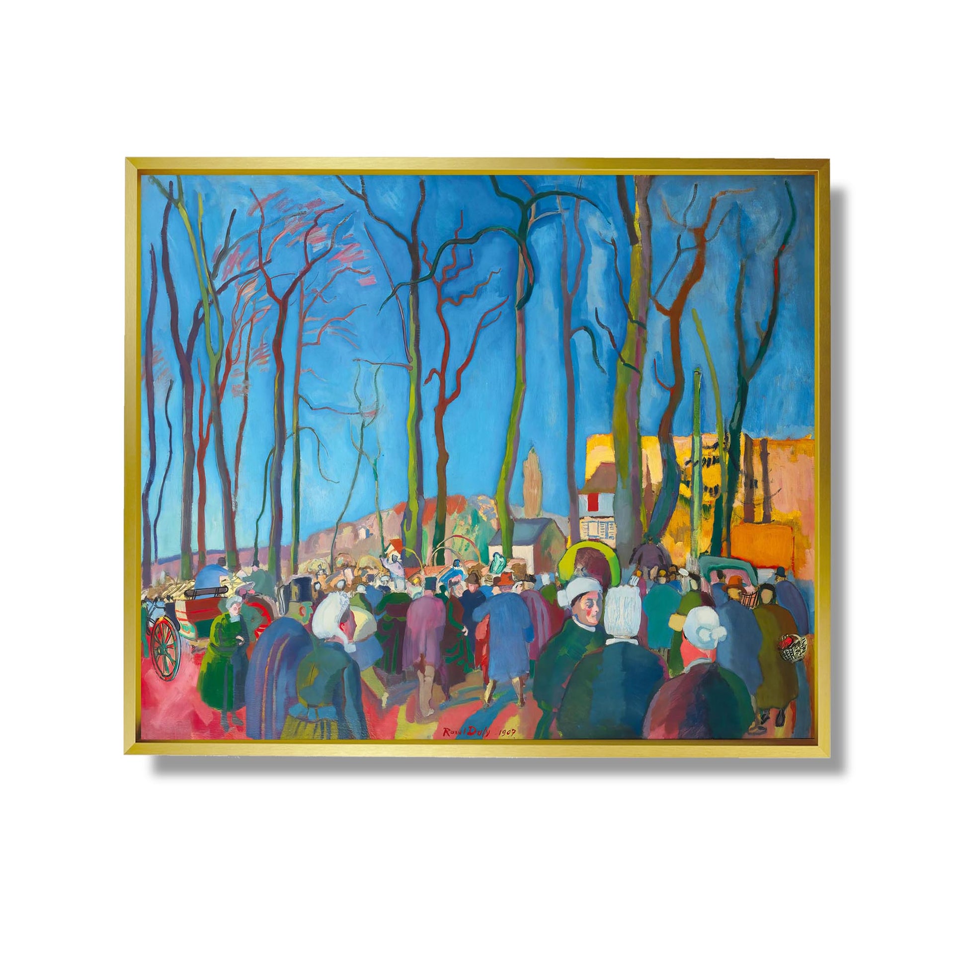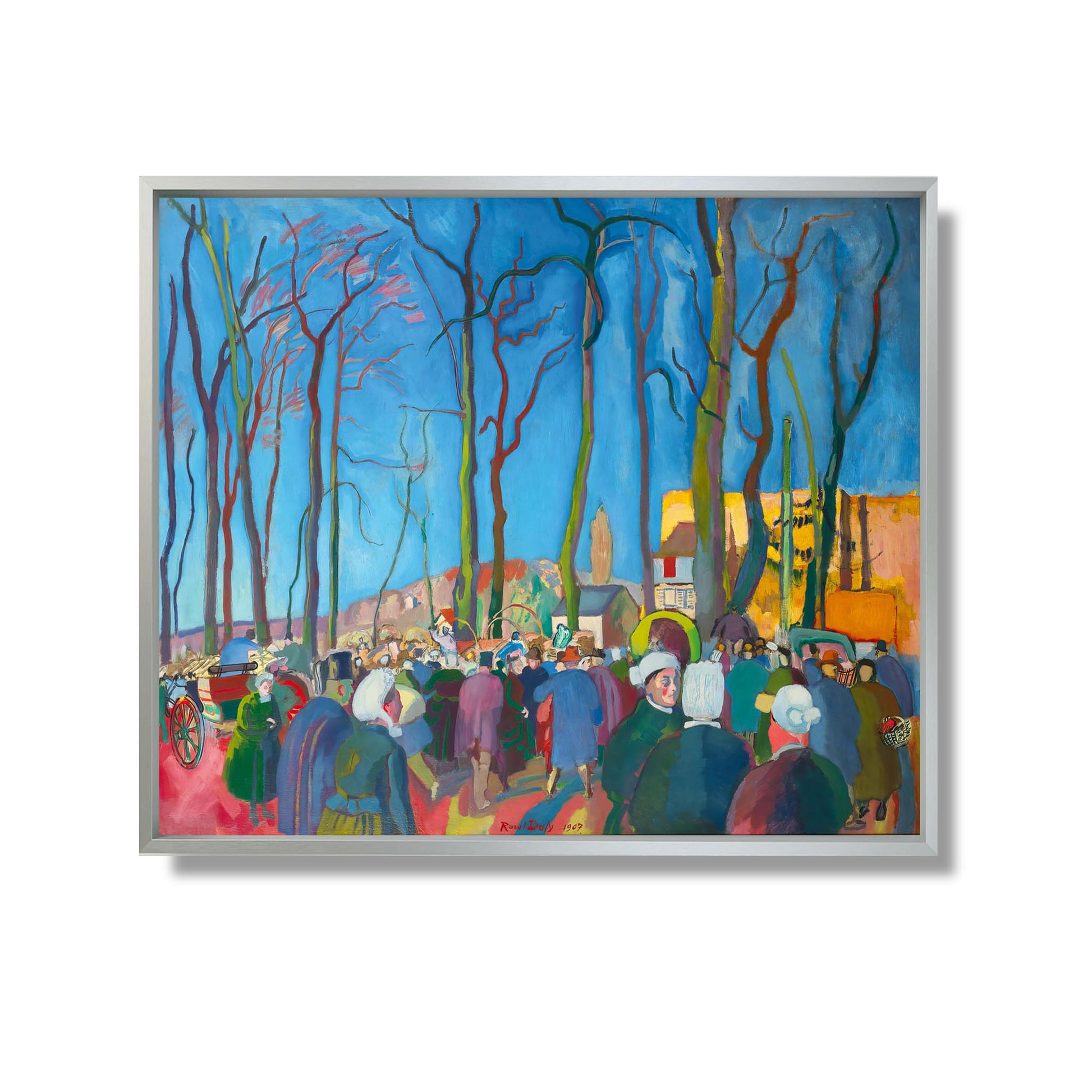 "La Foire aux Oignons" est une œuvre emblématique de Raoul Dufy, peinte en 1920. Ce tableau vibrant capture l'effervescence d'une foire en plein air, où des stands colorés et des personnages animés se mêlent dans une atmosphère joyeuse. Les couleurs éclatantes et les coups de pinceau fluides témoignent du style fauviste de Dufy, qui privilégie l'émotion à la représentation réaliste. La scène, baignée de lumière, évoque la convivialité et la simplicité de la vie rurale, tout en célébrant la beauté des moments quotidiens. C'est une ode à la joie de vivre.