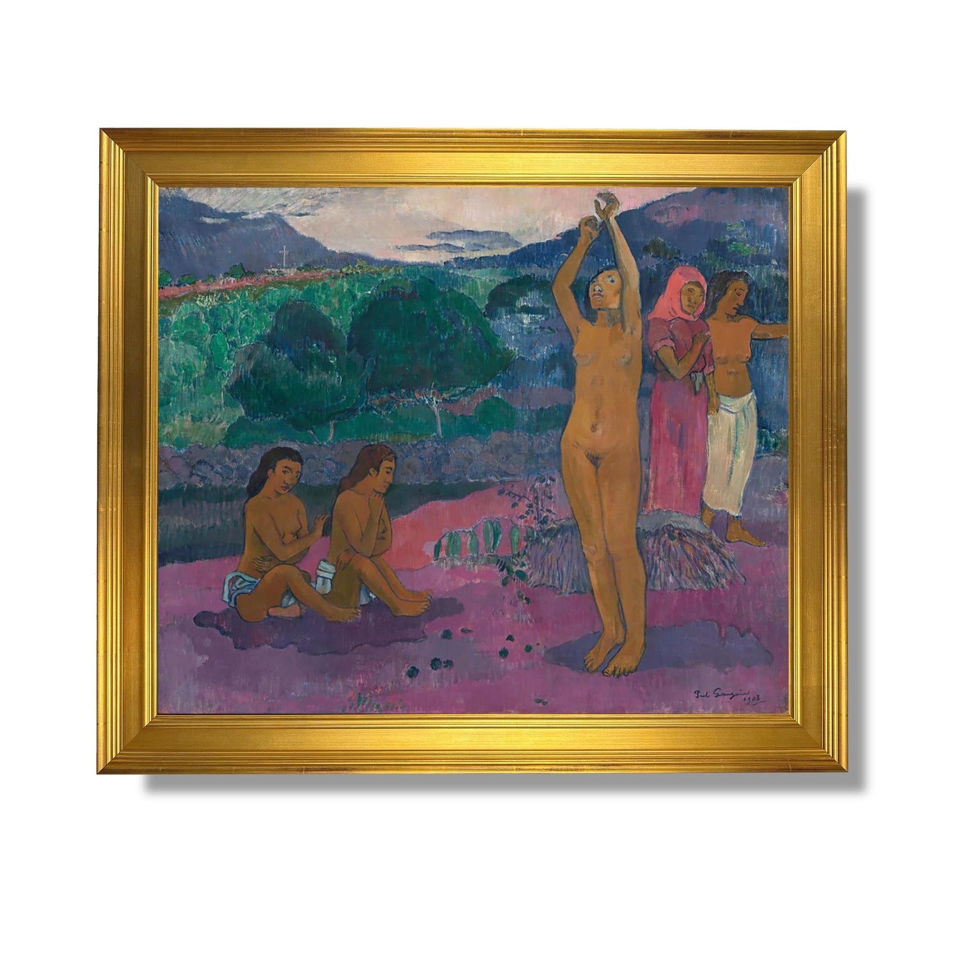 "L'Invocation" est une œuvre emblématique de Paul Gauguin, peinte en 1901, qui illustre son intérêt pour les thèmes spirituels et la culture polynésienne. Cette toile représente une scène mystique où des figures féminines, aux traits stylisés et aux couleurs vives, semblent prier ou invoquer des forces supérieures. L'utilisation audacieuse des couleurs et des formes témoigne de son désir de transcender la réalité et d'explorer l'âme humaine. À travers cette œuvre, Gauguin cherche à capturer l'essence de la spiritualité et la beauté des traditions ancestrales, tout en s'éloignant des conventions artistiques de son époque.