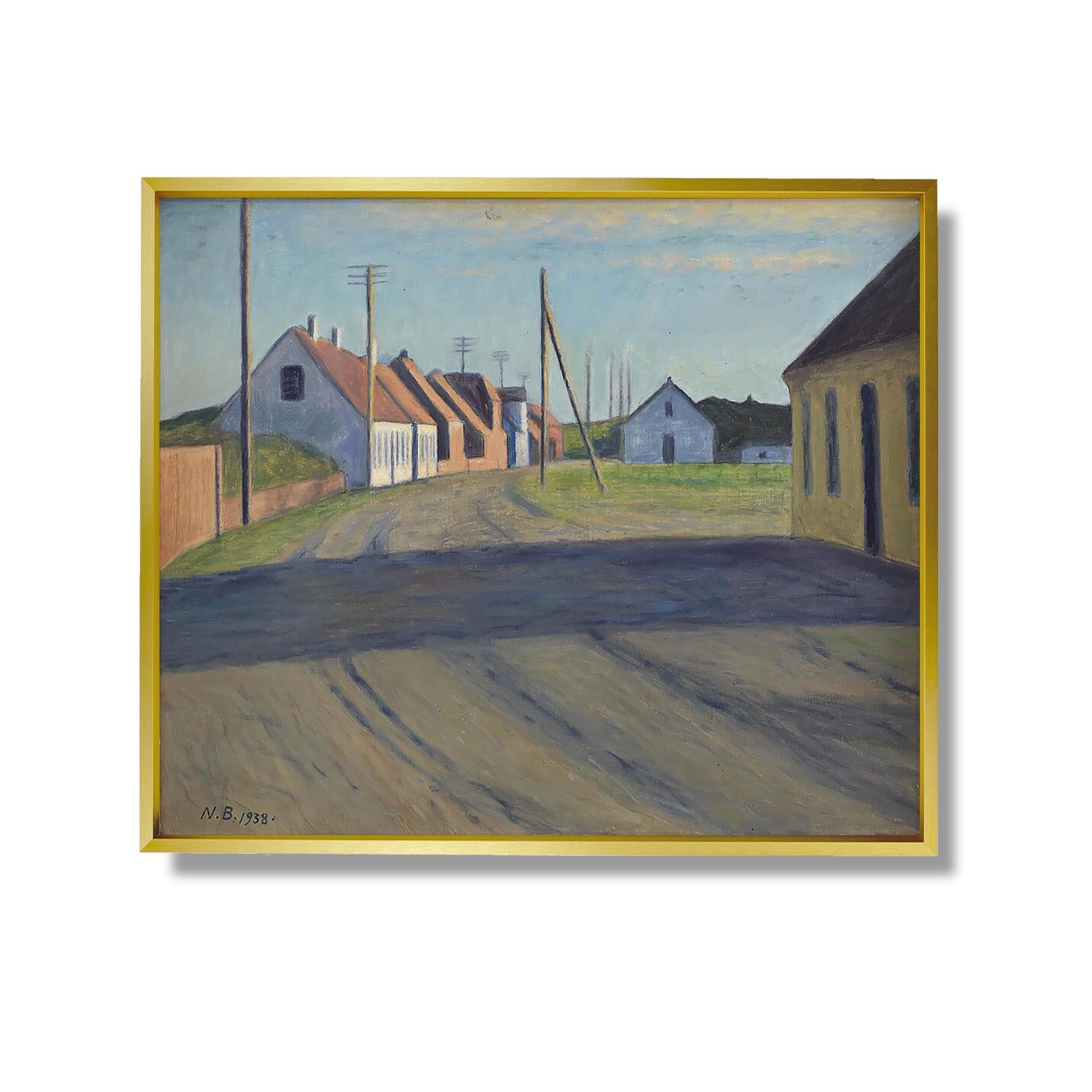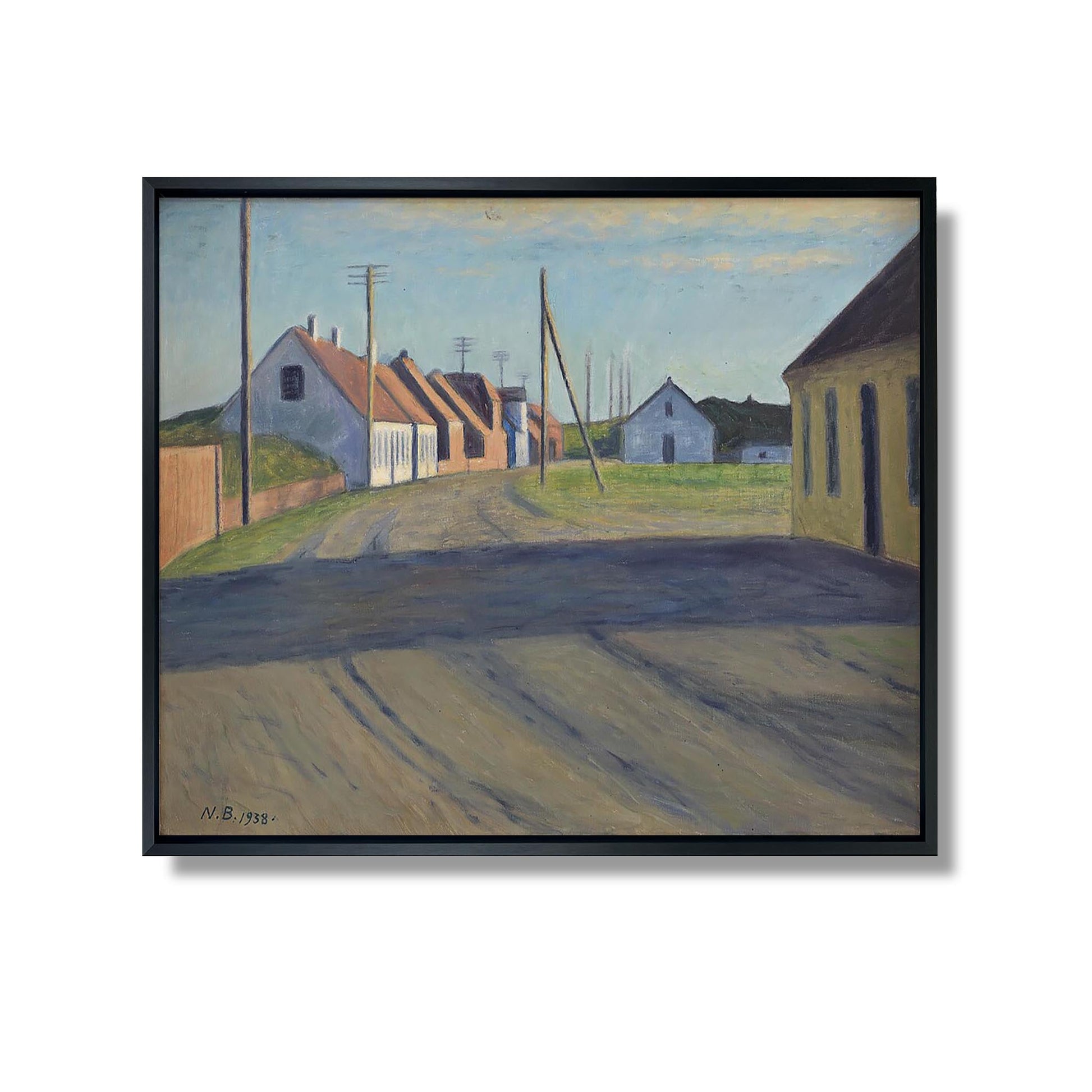 "Road in a Small Town" de Niels Bjerre est une œuvre captivante qui explore la vie quotidienne dans une petite ville, révélant la beauté et la mélancolie des moments ordinaires. À travers des paysages évocateurs et des scènes intimistes, Bjerre capture l'essence des interactions humaines et des souvenirs enfouis. Les routes sinueuses symbolisent à la fois le voyage et la stagnation, invitant le spectateur à réfléchir sur le passage du temps. L'artiste utilise une palette de couleurs douces pour créer une atmosphère nostalgique, rendant hommage à la simplicité et à la complexité de la vie en communauté.