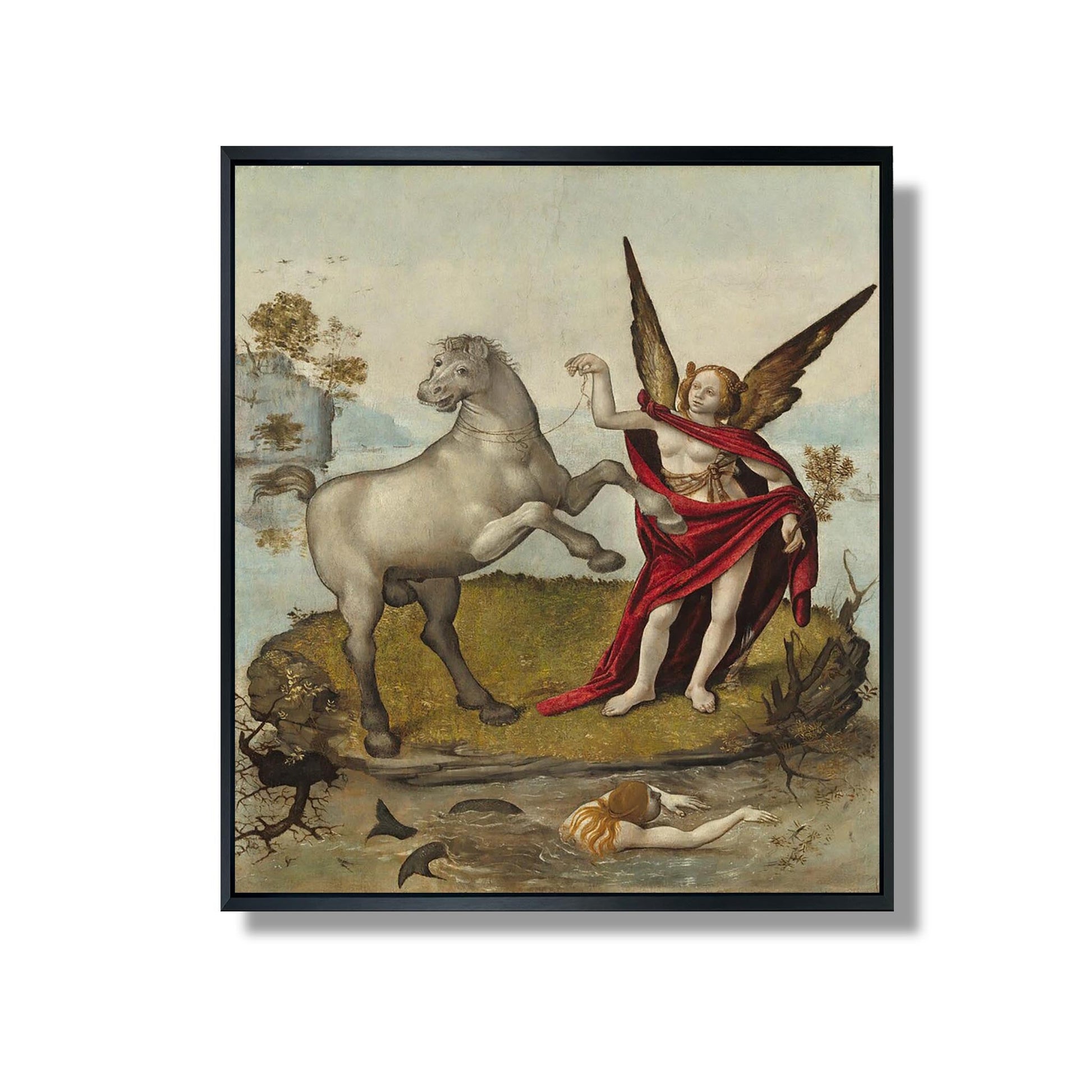 L'œuvre "Allégorie" de Piero di Cosimo, peinte au début du XVIe siècle, est une représentation fascinante de la nature humaine et de ses passions. Ce tableau complexe, riche en symbolisme, met en scène des figures mythologiques et allégoriques, illustrant des thèmes tels que l'amour, la mort et la connaissance. Les personnages, souvent en interaction avec des éléments naturels, évoquent une réflexion sur la condition humaine. La palette vibrante et les détails minutieux témoignent du style unique de Piero, alliant réalisme et imagination. Cette œuvre invite le spectateur à explorer les profondeurs de l'âme humaine à travers un prisme poétique et philosophique.