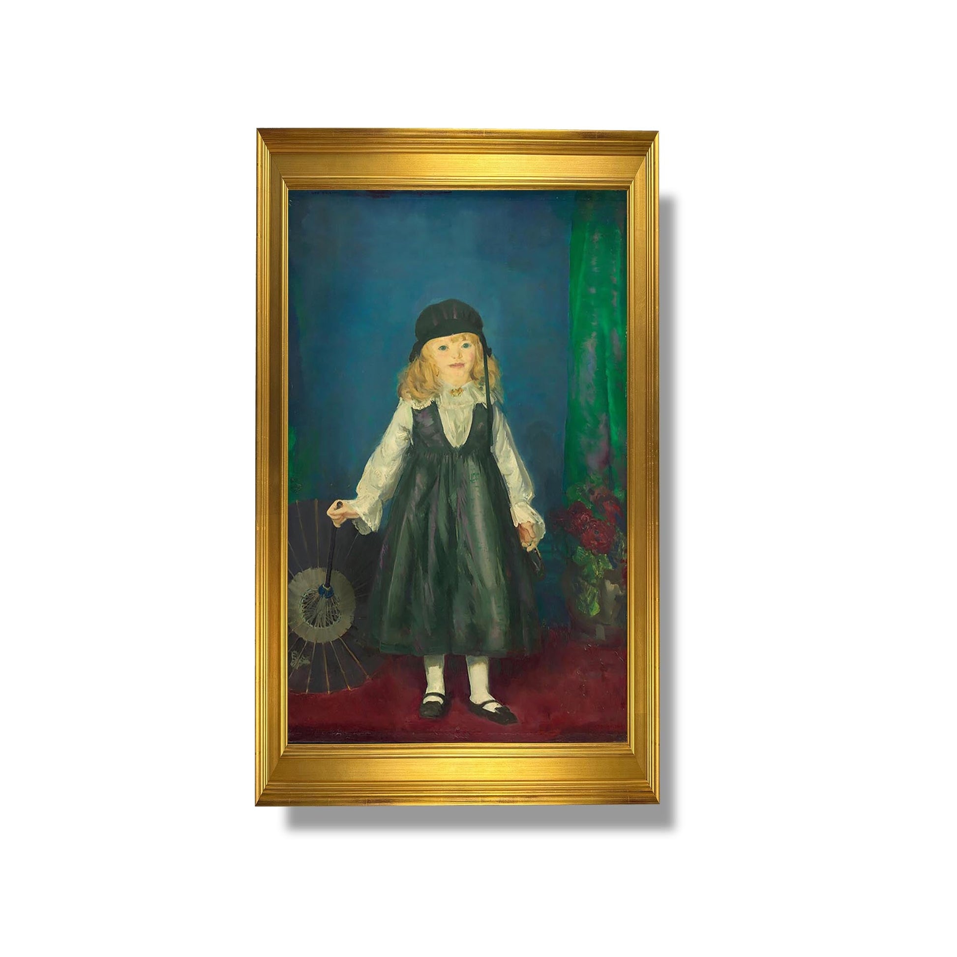 "Anne with a Japanese Parasol" est une œuvre emblématique de George Bellows, réalisée en 1918. Ce tableau illustre la maîtrise de Bellows dans la représentation de la lumière et des textures. La jeune femme, Anne, est dépeinte avec un parasol japonais, symbole d'élégance et de mystère. Les couleurs vives et les coups de pinceau dynamiques capturent l'énergie de la scène, tout en mettant en avant la beauté du sujet. L'œuvre reflète l'influence du mouvement impressionniste, tout en intégrant une touche de modernité. Bellows, connu pour ses portraits et ses scènes de la vie urbaine, réussit ici à allier intimité et sophistication.