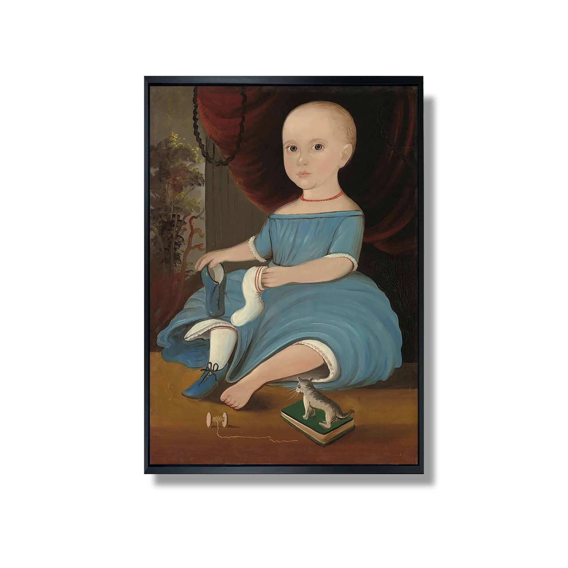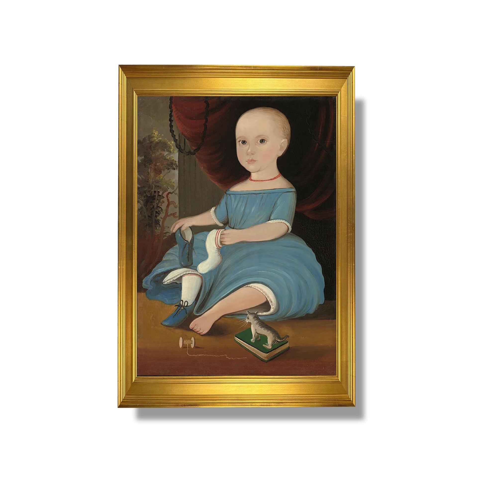 "Baby in Blue" est une œuvre emblématique de William Matthew Prior, un peintre américain du XIXe siècle, connu pour ses portraits naïfs et touchants. Réalisée vers 1860, cette peinture représente un nourrisson emmailloté dans une couverture bleue, capturant l'innocence et la vulnérabilité de l'enfance. Prior, autodidacte, se distingue par son style simple mais évocateur, utilisant des couleurs douces et des expressions sincères. Cette œuvre illustre non seulement son talent pour immortaliser des moments intimes, mais aussi son engagement à représenter la vie quotidienne des familles américaines de son époque.