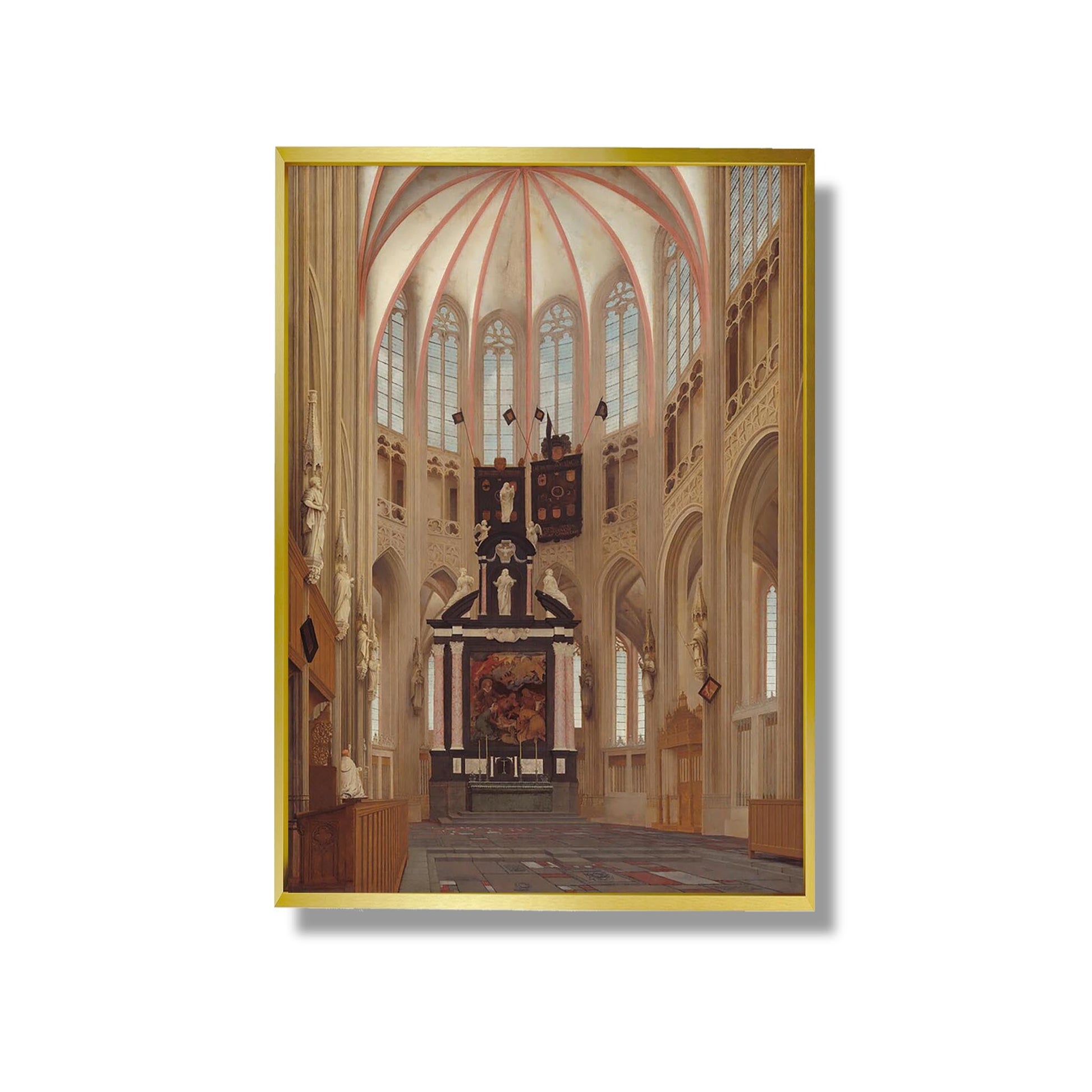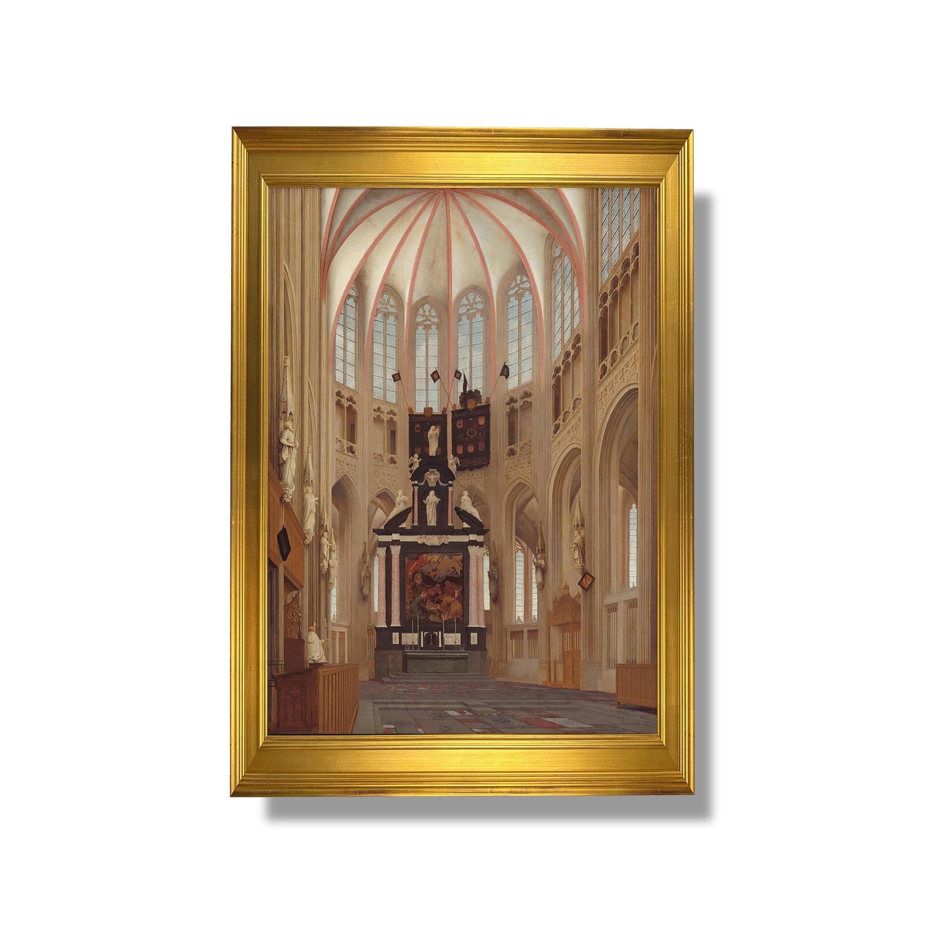 Pieter Jansz Saenredam, peintre néerlandais du XVIIe siècle, est célèbre pour ses représentations minutieuses d'édifices religieux, dont la "Cathédrale Saint-Jean" à 's-Hertogenbosch. Cette œuvre emblématique illustre son talent pour capturer la lumière et l'espace, créant une atmosphère sereine et contemplative. Saenredam utilise des perspectives précises et des détails architecturaux raffinés, mettant en valeur la majesté de la cathédrale. Son approche méthodique et son souci du réalisme font de lui un pionnier du paysage architectural, influençant les générations futures d'artistes.