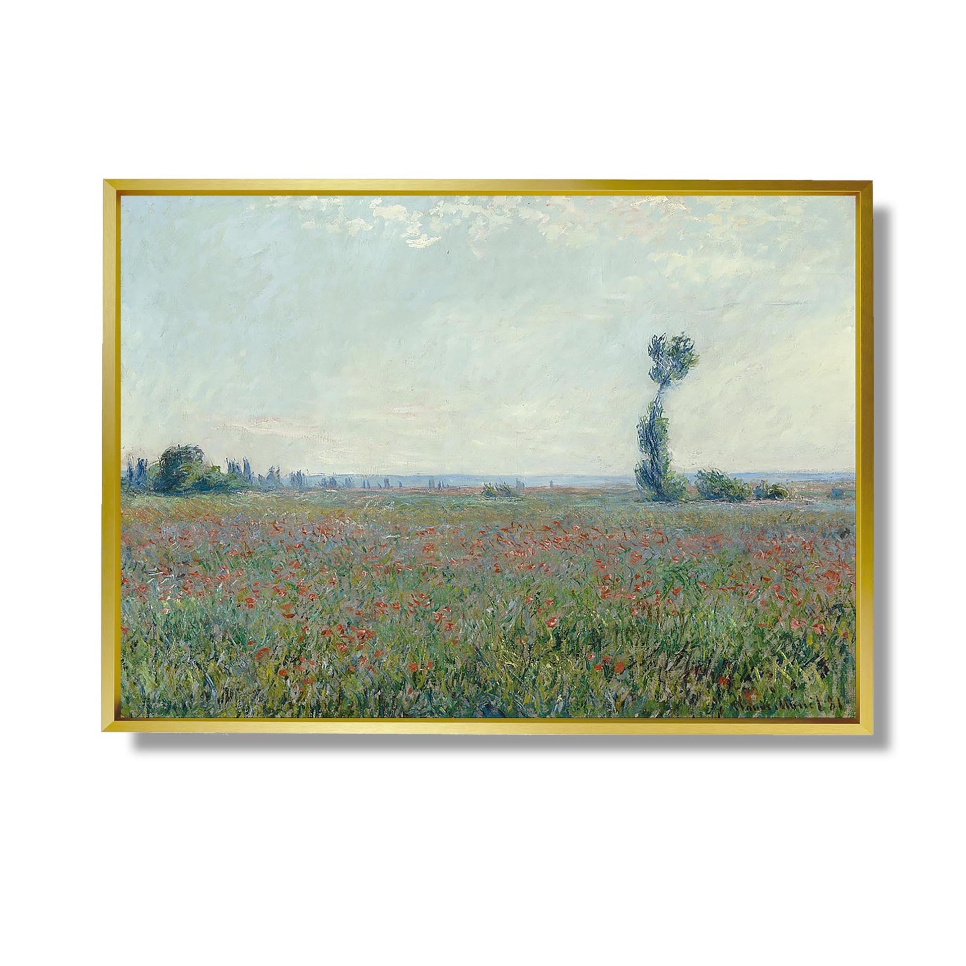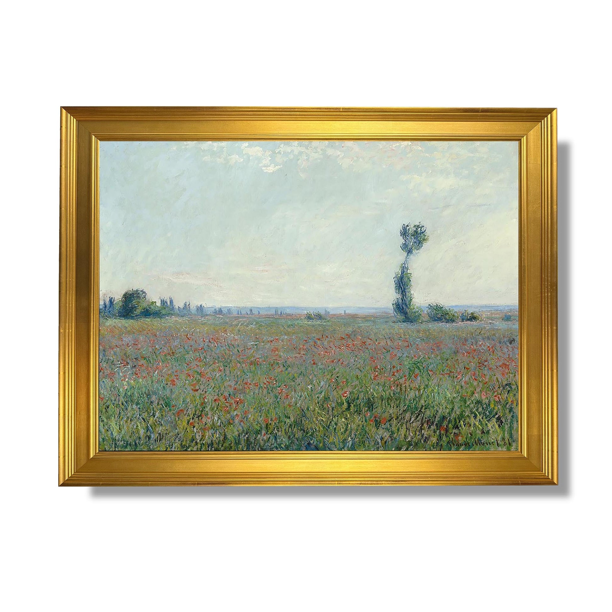 "Champ de Coquelicots" est une œuvre emblématique de Claude Monet, peinte en 1873. Ce tableau impressionniste capture un champ vibrant de coquelicots rouges, s'étendant sous un ciel bleu parsemé de nuages. Monet, pionnier du mouvement impressionniste, utilise des touches de pinceau rapides et des couleurs éclatantes pour évoquer la lumière et le mouvement. La composition, qui inclut des figures humaines floues, suggère une atmosphère de tranquillité et de joie. Cette œuvre illustre parfaitement la fascination de Monet pour la nature et son désir de représenter la beauté éphémère des paysages.