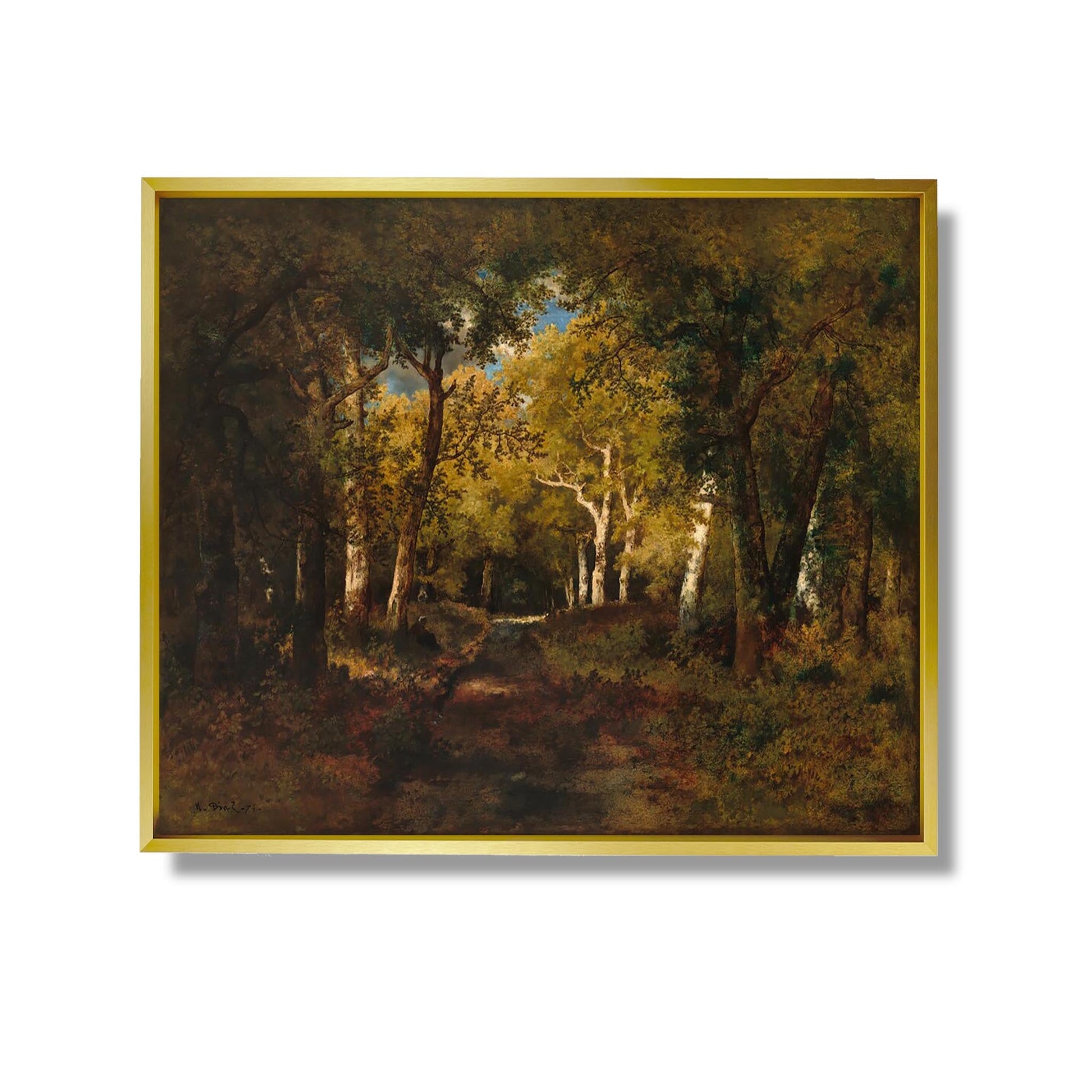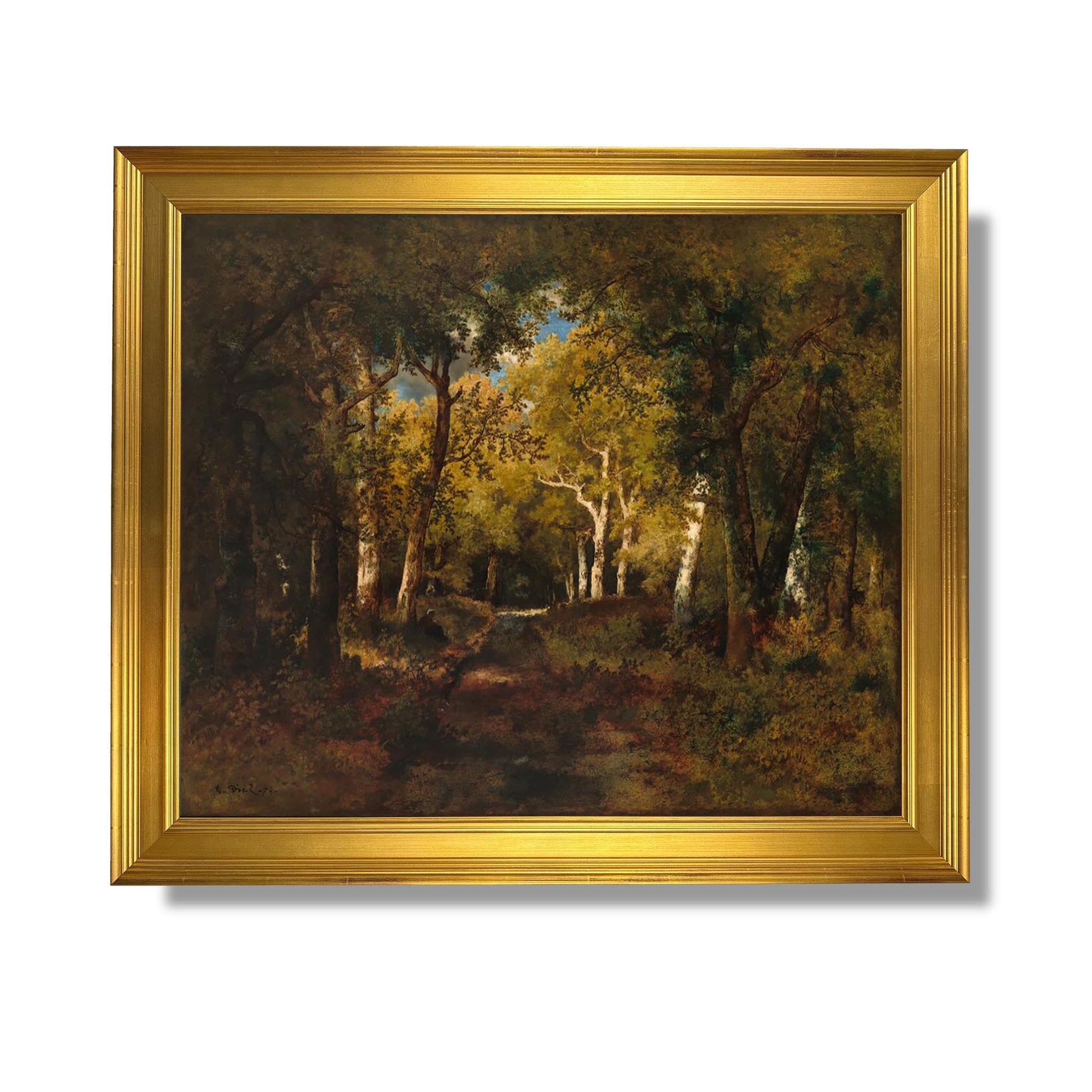 Narcisse Virgile Diaz de la Peña, peintre français du XIXe siècle, est reconnu pour ses paysages enchanteurs, notamment "Dans la forêt". Cette œuvre, réalisée en 1860, illustre la beauté sauvage de la nature à travers une palette riche et lumineuse. Diaz capture la lumière filtrant à travers les feuillages, créant une atmosphère à la fois paisible et mystérieuse. Les détails minutieux des arbres et des sous-bois révèlent son attachement à la nature. Influencé par le mouvement romantique, il invite le spectateur à s'évader dans un monde où la nature règne en maître, célébrant ainsi la beauté et la sérénité des forêts.