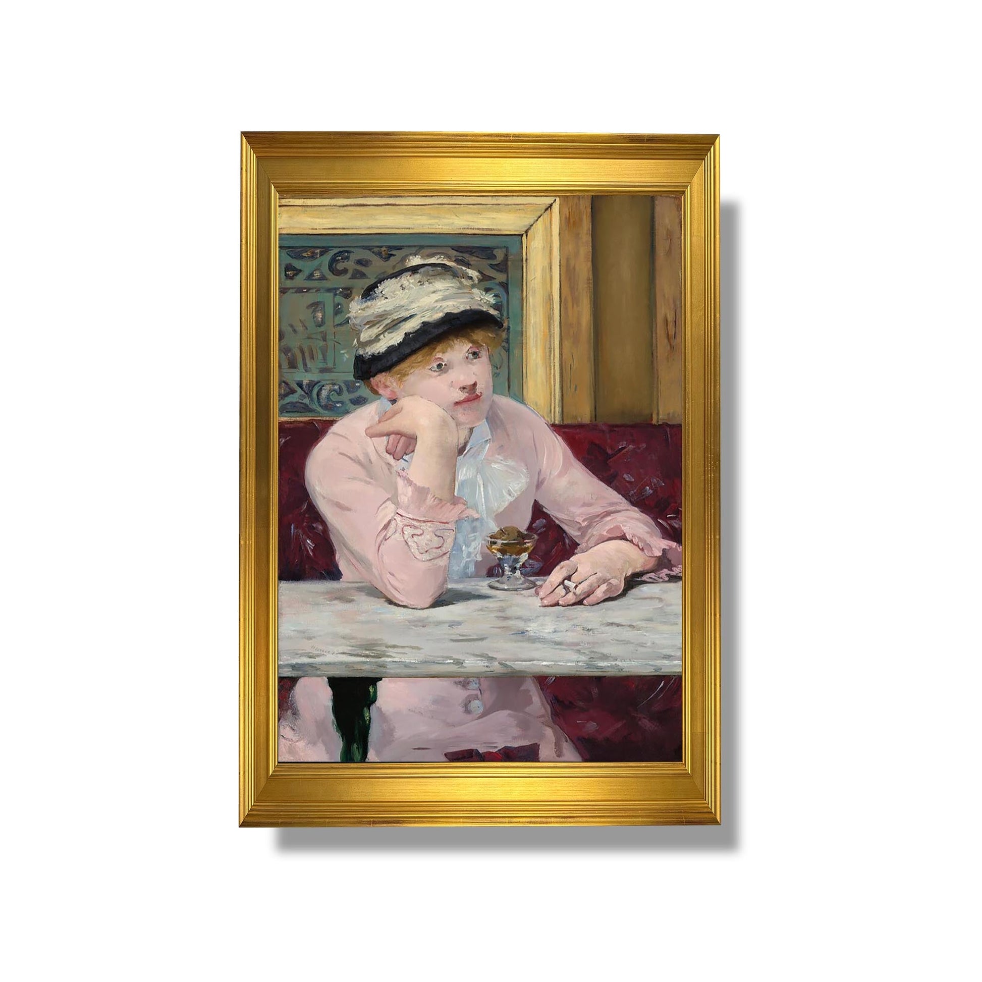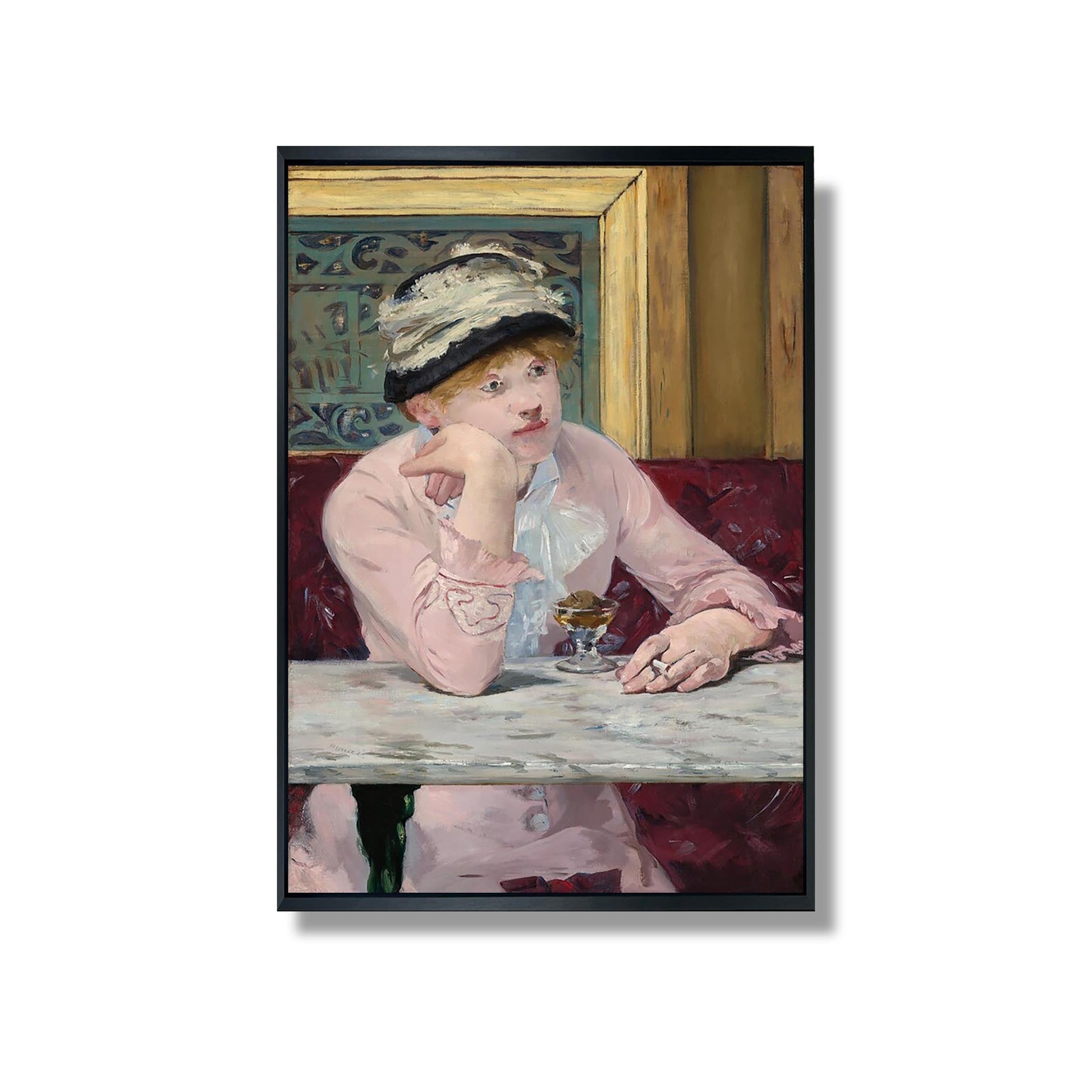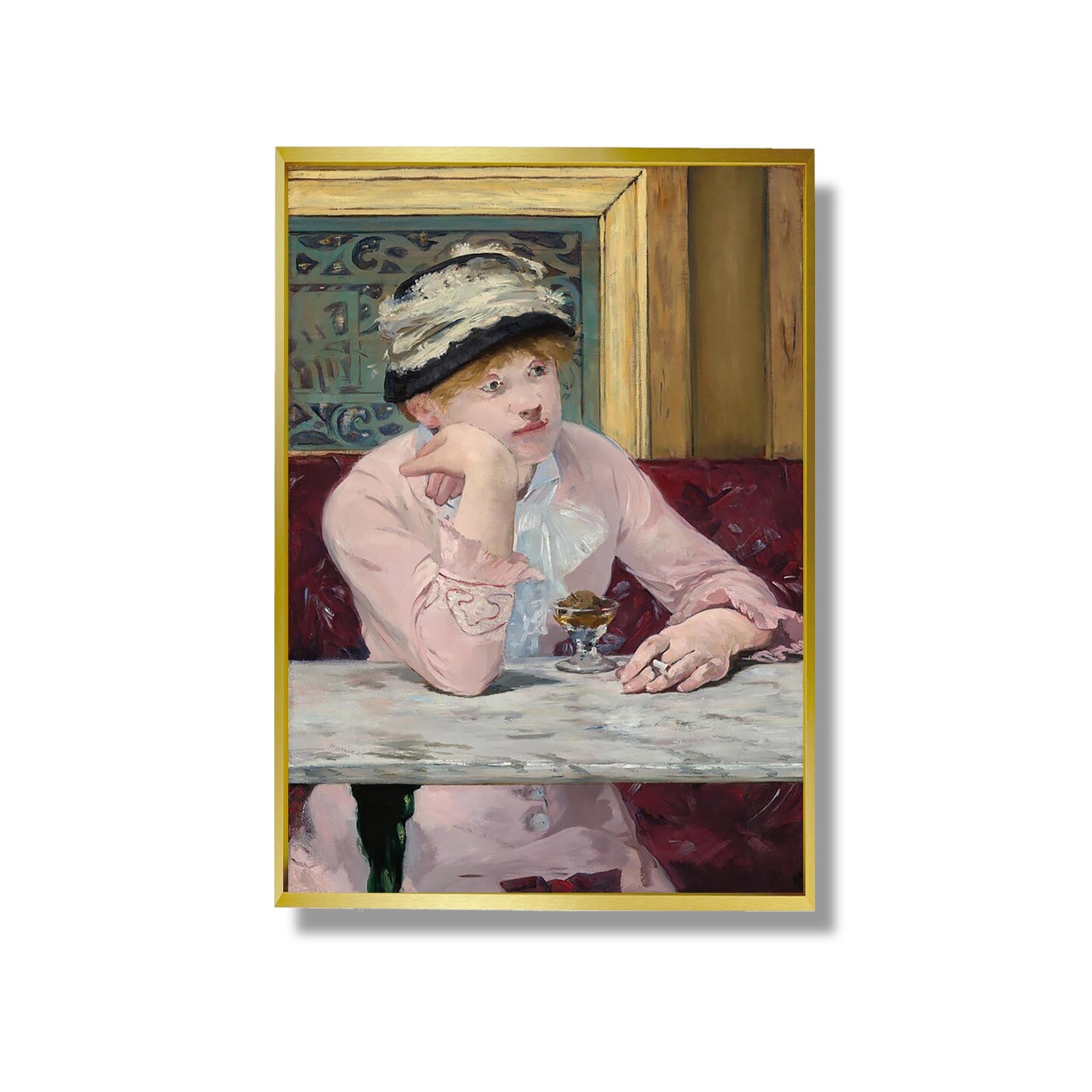 L'œuvre "Eau-de-vie de prune" d'Édouard Manet, peinte en 1878, illustre la maîtrise de l'artiste dans la représentation des objets du quotidien. Ce tableau met en scène une bouteille d'eau-de-vie de prune, accompagnée d'un verre et d'une assiette de prunes, sur une table en bois. La composition, à la fois simple et élégante, révèle la lumière et les textures avec une palette de couleurs riches. Manet, pionnier du réalisme, transcende le sujet banal pour en faire une étude sur la perception et la beauté. Cette œuvre témoigne de son talent à capturer l'essence de la vie moderne.
