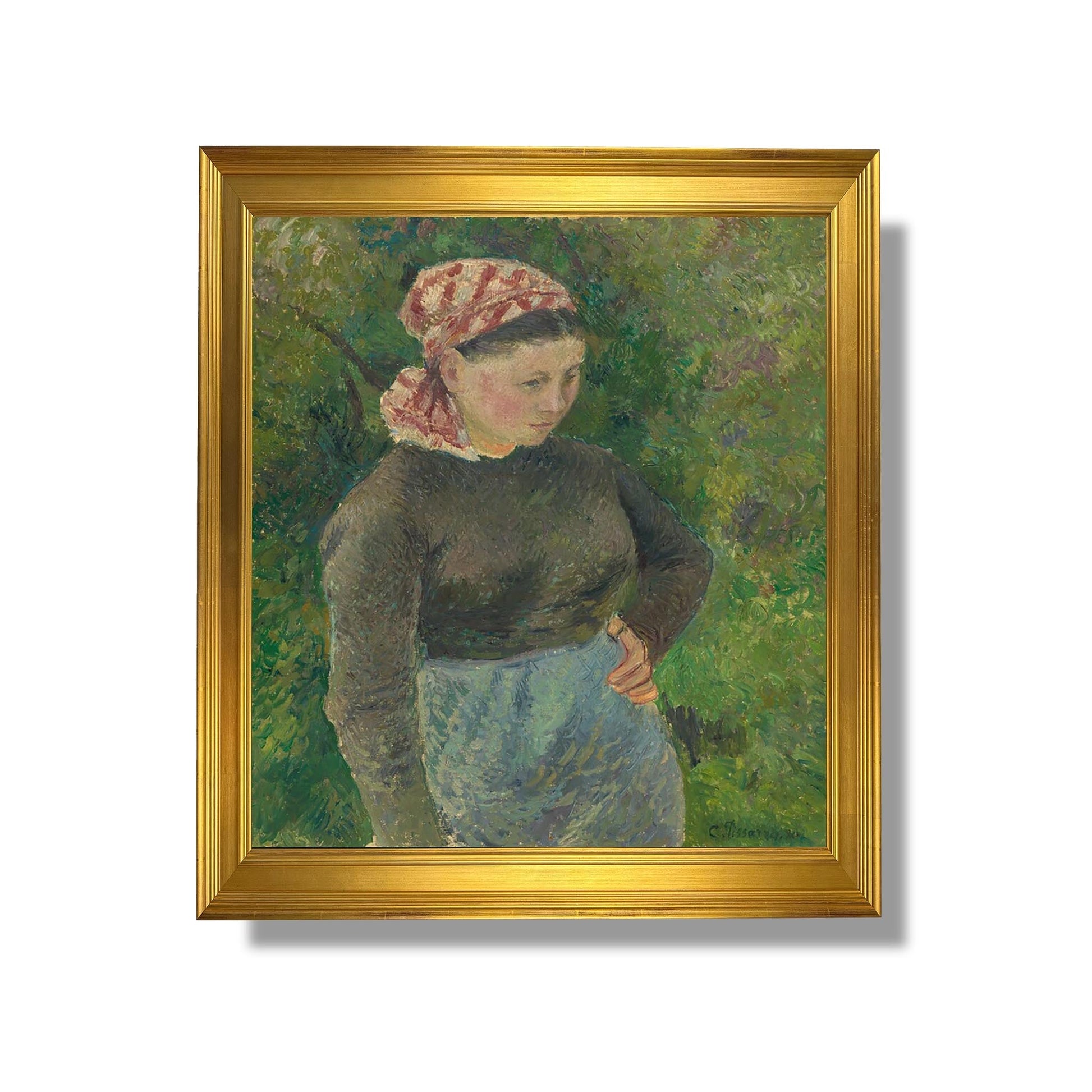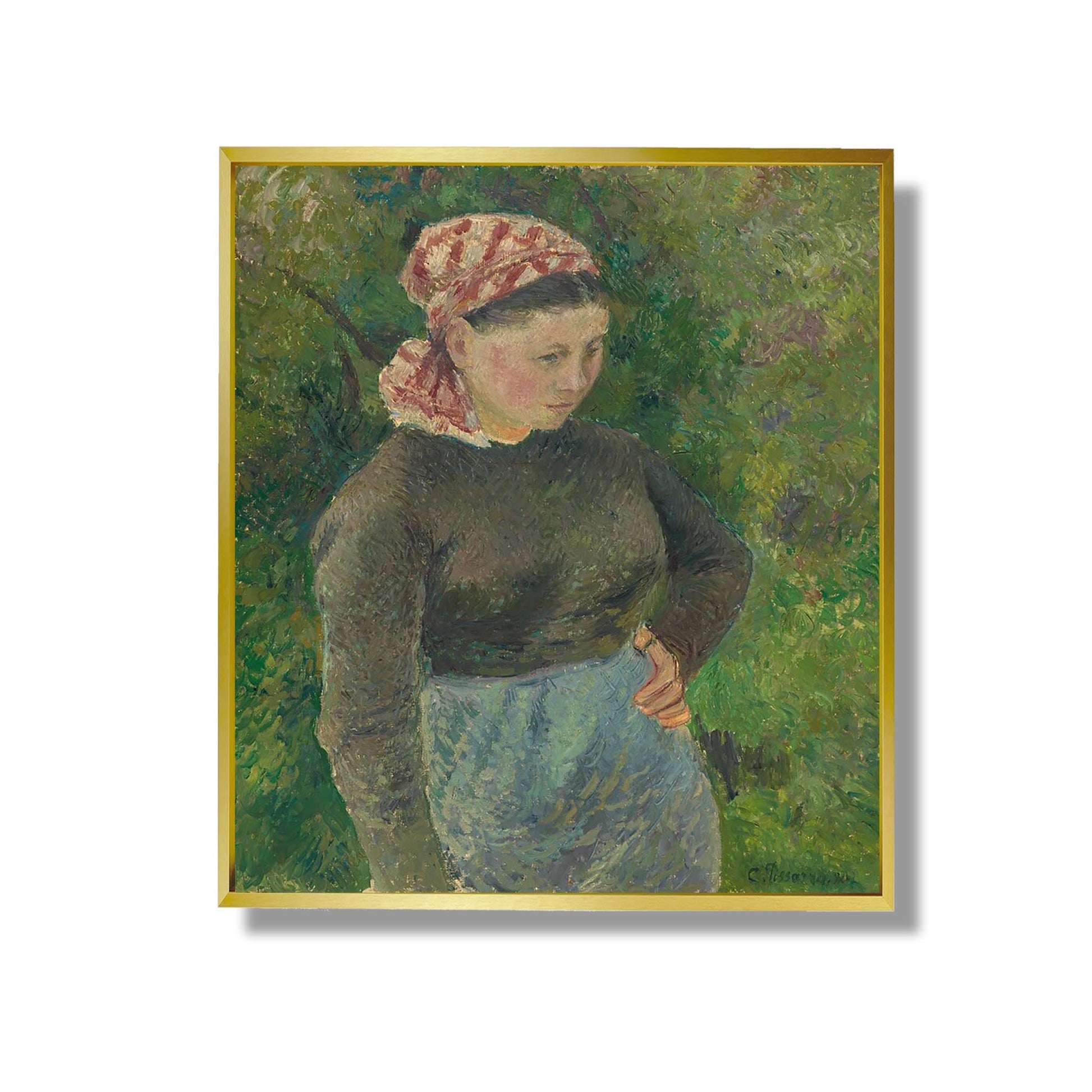 « Femme paysanne » est une œuvre emblématique de Camille Pissarro, réalisée en 1880. Ce tableau illustre la vie rurale, mettant en avant une paysanne au travail, symbole de la simplicité et de la dignité du monde agricole. Pissarro, figure majeure de l'impressionnisme, utilise des couleurs vives et des touches de pinceau rapides pour capturer la lumière et l'atmosphère du moment. La composition, centrée sur la figure de la femme, évoque à la fois la force et la vulnérabilité des travailleurs de la terre. Cette œuvre témoigne de l'engagement de Pissarro envers la représentation authentique de la vie quotidienne.
