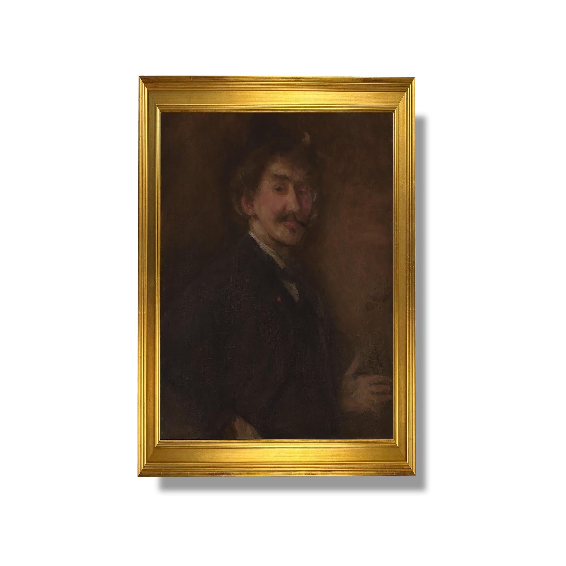 "Gold and Brown: Self-Portrait" de James McNeill Whistler est une œuvre emblématique qui illustre le style unique de l'artiste, mêlant impressionnisme et tonalité subtile. Réalisé en 1896, ce tableau se distingue par sa palette dorée et brune, créant une atmosphère intimiste. Whistler y explore son identité à travers un regard introspectif, utilisant des coups de pinceau délicats pour capturer la lumière et l'ombre. Ce portrait ne se limite pas à une simple représentation, mais évoque une réflexion sur l'art et l'artiste, révélant la complexité de son être et son engagement envers l'esthétique.
