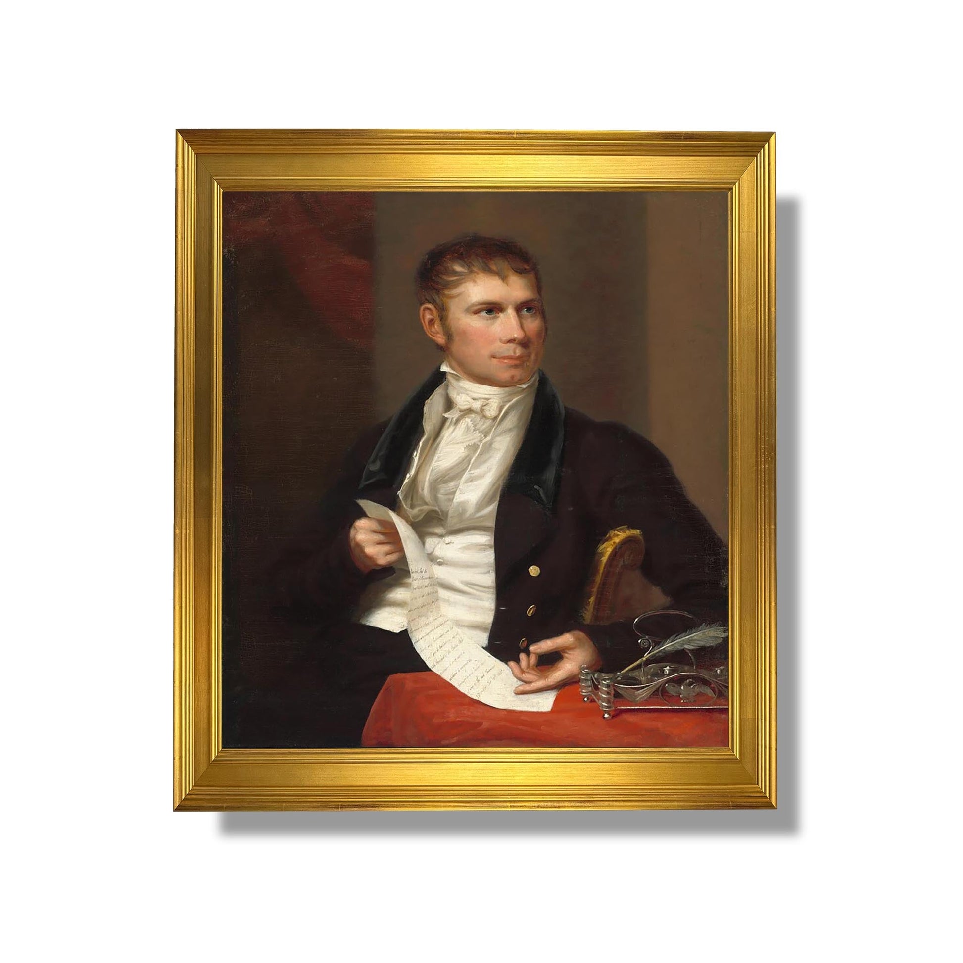 Henry Clay, portraituré par Charles Bird King, est une œuvre emblématique qui capture l'essence d'un homme politique influent du XIXe siècle. Clay, connu pour son rôle dans la politique américaine, notamment en tant que sénateur et secrétaire d'État, est représenté avec une dignité et une gravité qui reflètent son impact sur la nation. King, célèbre pour ses portraits réalistes, utilise des couleurs riches et des détails minutieux pour transmettre la personnalité de Clay. Ce tableau illustre non seulement le caractère de Clay, mais aussi l'époque tumultueuse de l'histoire américaine, marquée par des débats sur l'esclavage et l'union.
