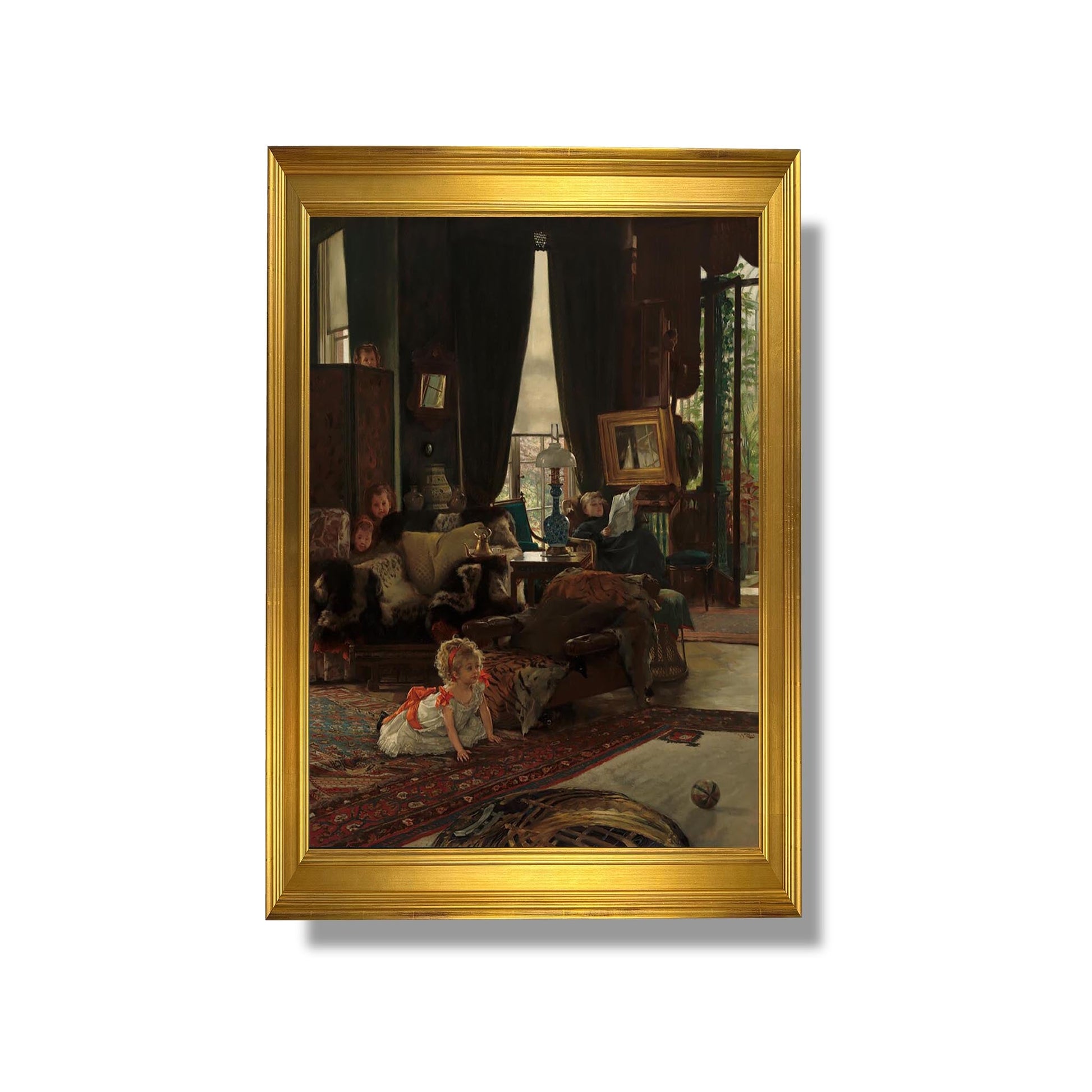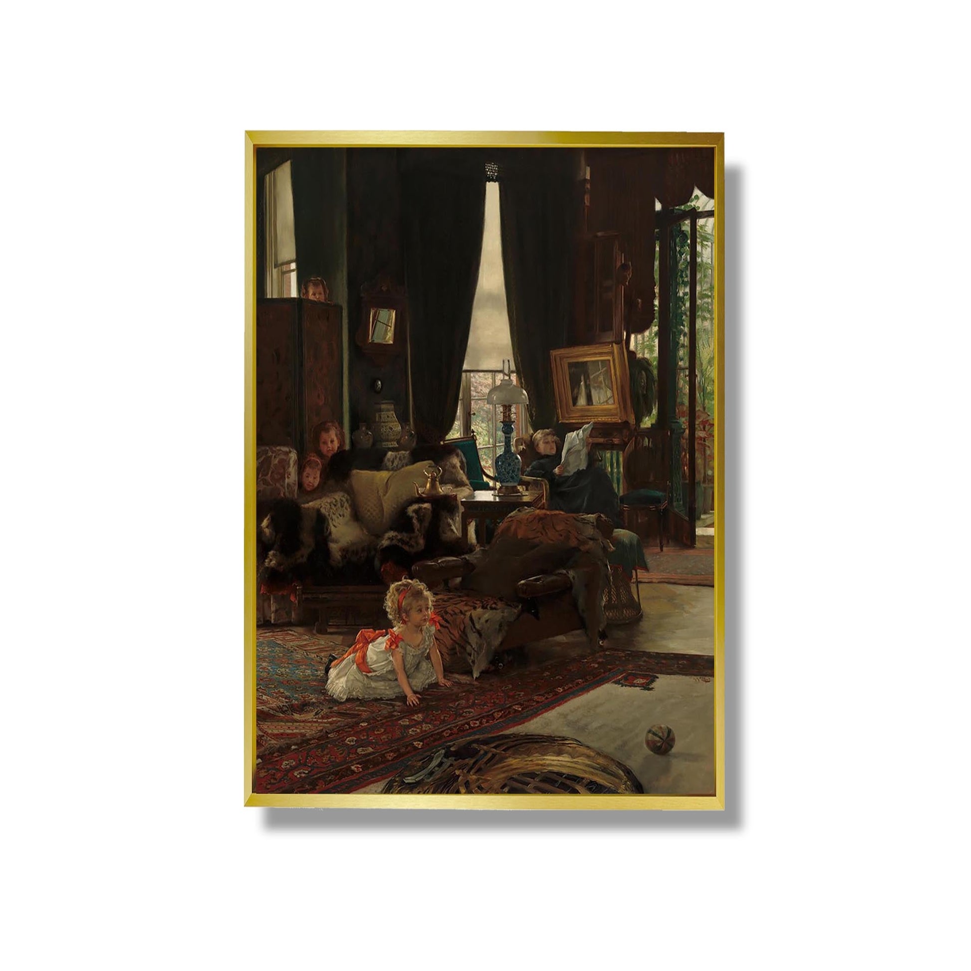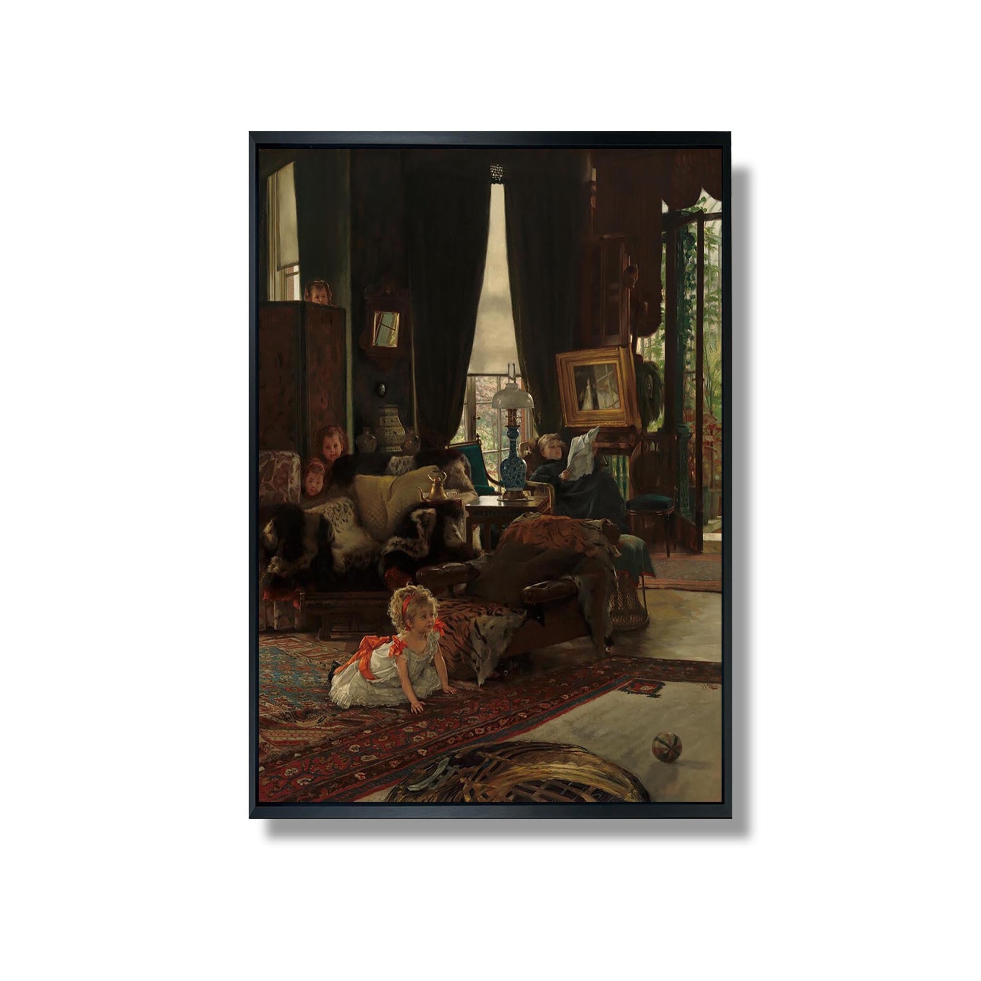 "Hide and Seek" est une œuvre emblématique de James Jacques Joseph Tissot, peinte en 1876. Ce tableau illustre une scène d'enfance où deux jeunes filles jouent à cache-cache dans un jardin luxuriant. La composition met en avant la délicatesse des vêtements victoriens et la lumière douce qui filtre à travers les feuillages, créant une atmosphère de rêve et d'insouciance. Tissot, connu pour son attention aux détails et son sens de la mode, capture ici la joie et l'innocence de l'enfance. L'œuvre évoque également des thèmes de jeu, de curiosité et de la beauté éphémère des moments simples de la vie.