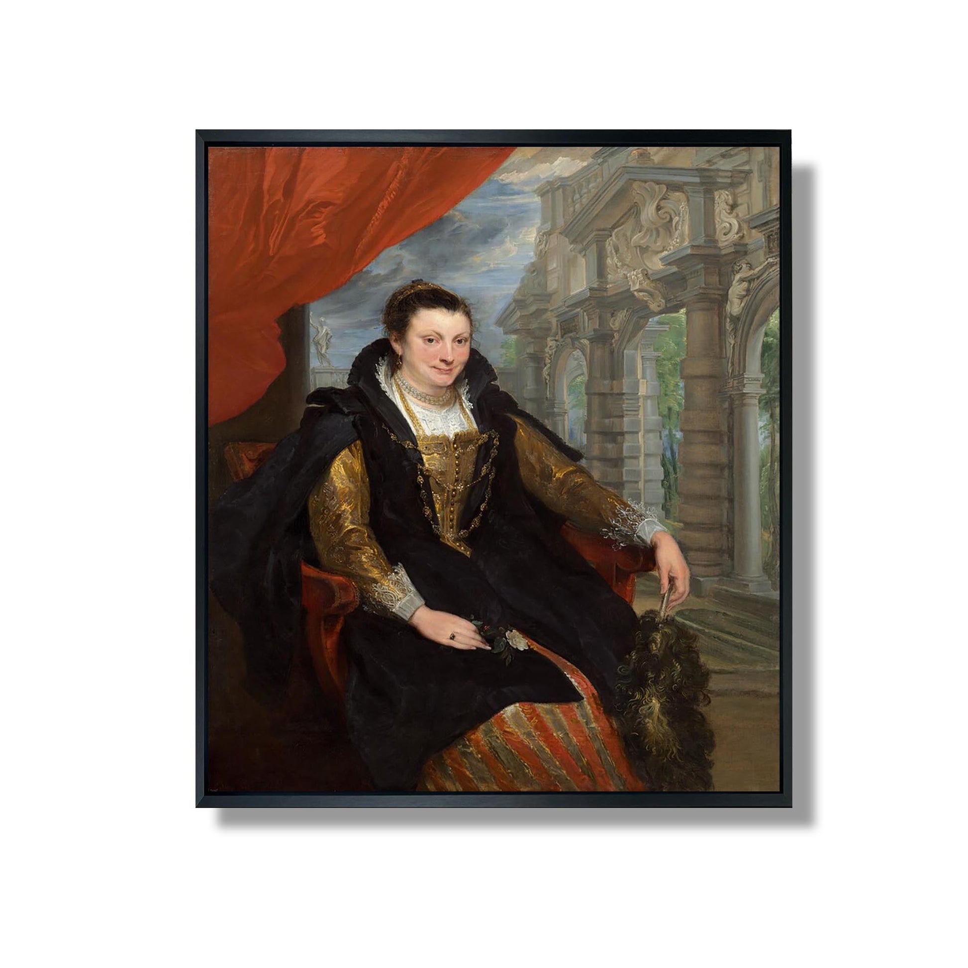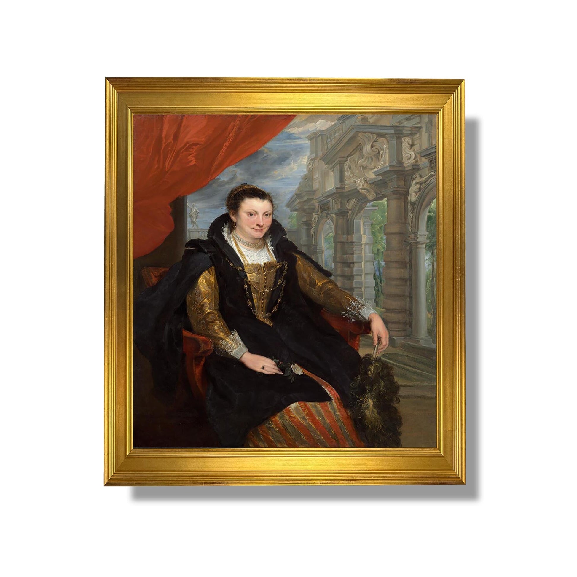 Isabella Brant, peinte par Sir Anthony van Dyck vers 1621, est une œuvre emblématique du portrait baroque. Ce tableau représente l'épouse de l'artiste, capturant sa beauté et sa grâce avec une finesse remarquable. Van Dyck utilise une palette riche et des jeux de lumière pour accentuer les détails du costume et du visage d'Isabella, créant une atmosphère à la fois intime et majestueuse. Le fond sombre met en valeur la figure centrale, tandis que la pose élégante de Brant témoigne de son statut social. Ce portrait illustre parfaitement le talent de Van Dyck pour immortaliser ses sujets avec une profondeur psychologique et une sensibilité artistique.