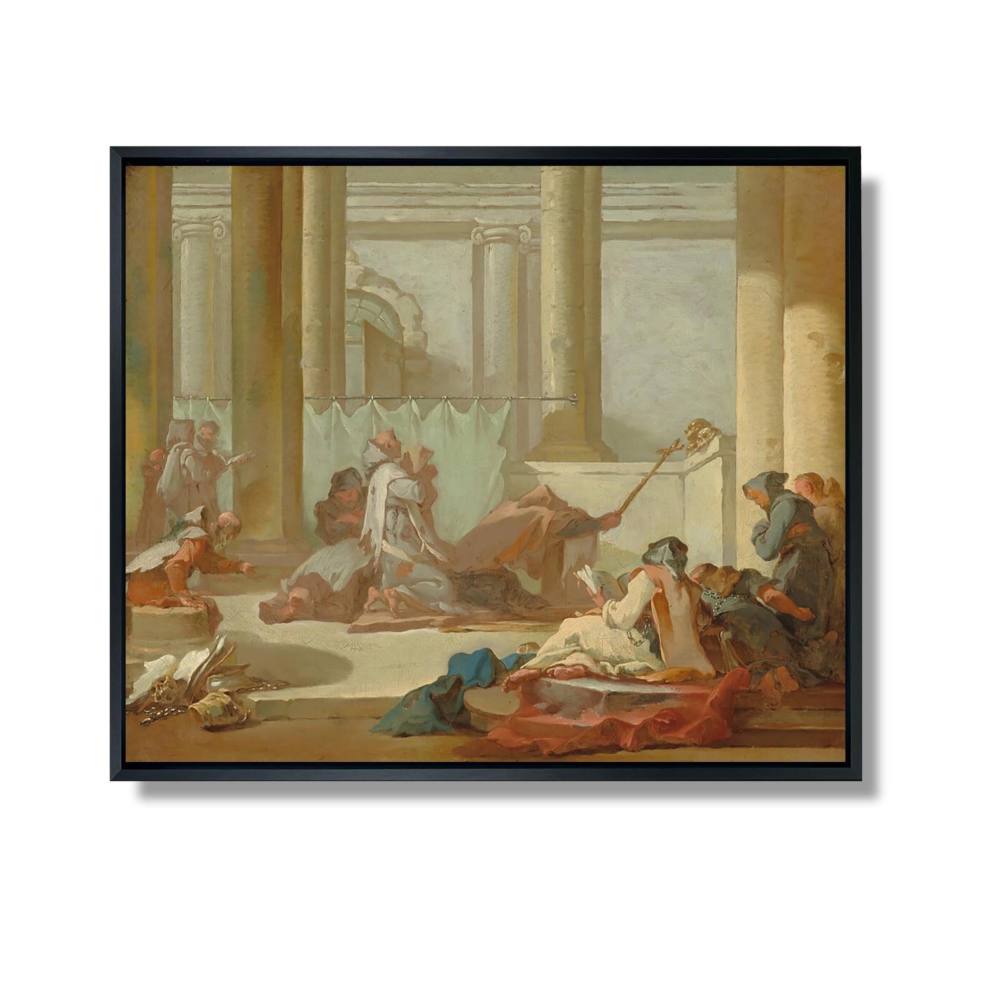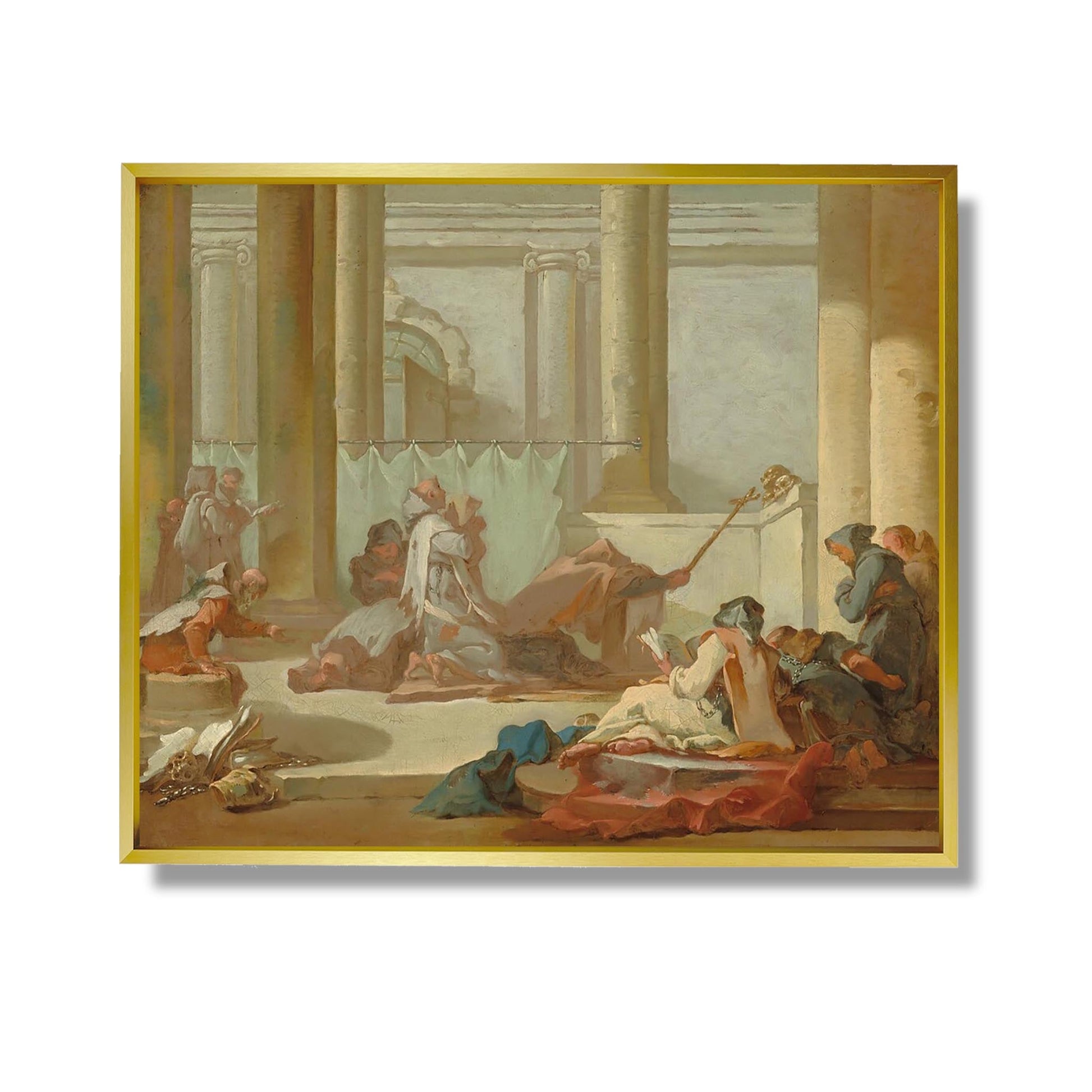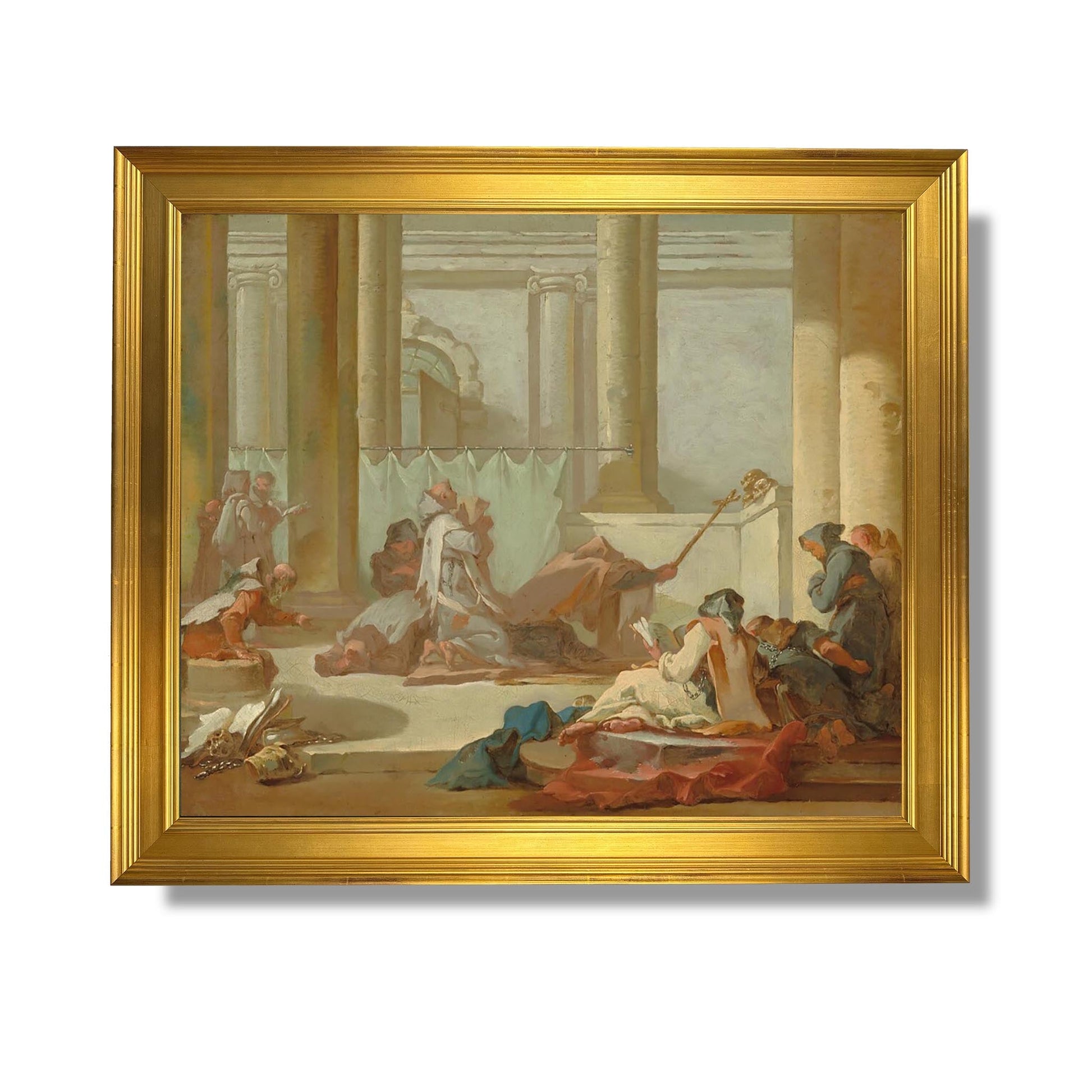 L'Adoration des Crânes, œuvre emblématique de Michel-François Dandré-Bardon, illustre la fascination du XVIIIe siècle pour la vanité et la mortalité. Cette peinture met en scène des figures humaines entourant des crânes, symboles de la fragilité de la vie. Les personnages, vêtus de costumes d'époque, expriment une profonde réflexion sur la condition humaine. La composition, riche en détails et en émotions, invite le spectateur à méditer sur le passage du temps et la quête de sens. Dandré-Bardon, par son style néoclassique, allie esthétique et philosophie, offrant une œuvre à la fois belle et troublante.